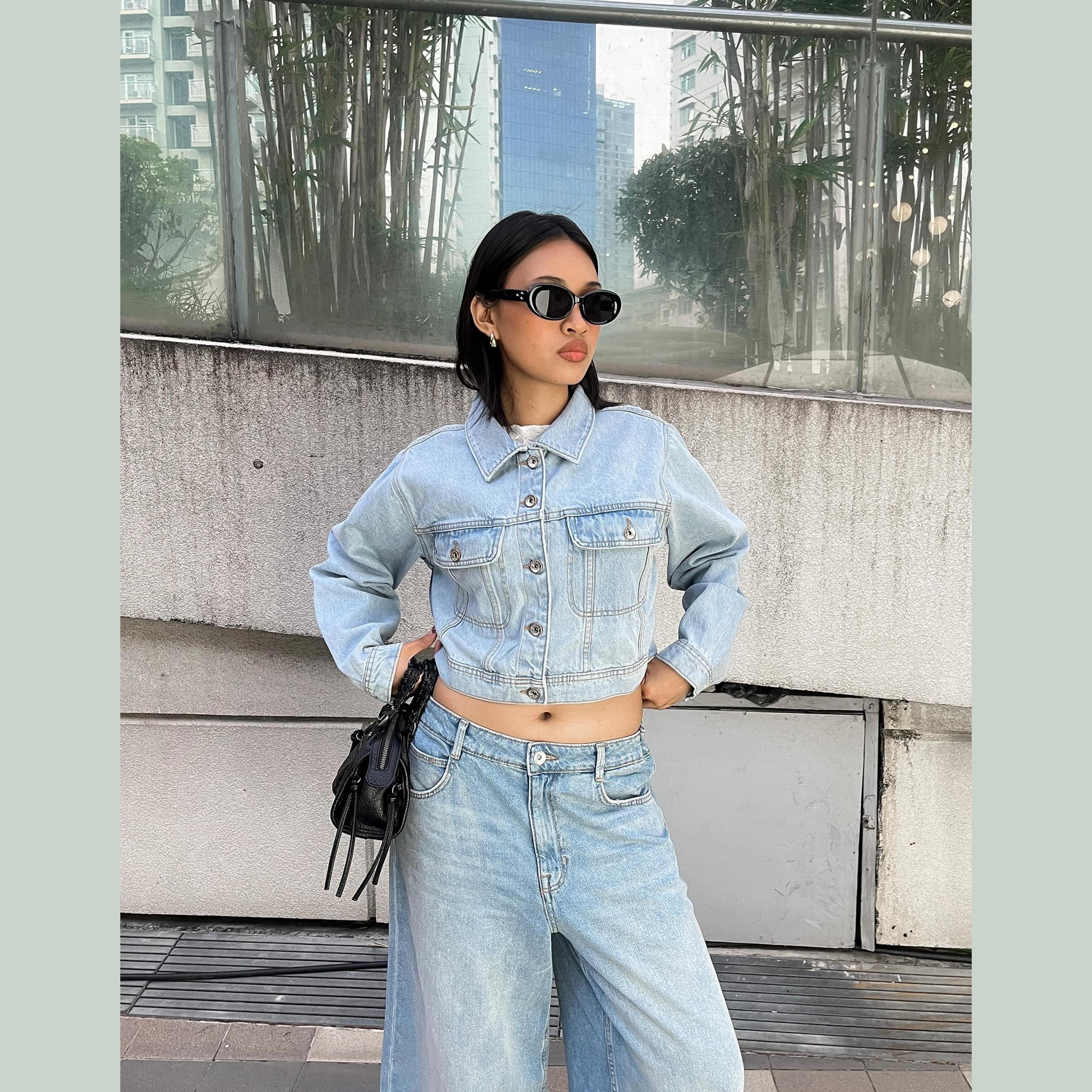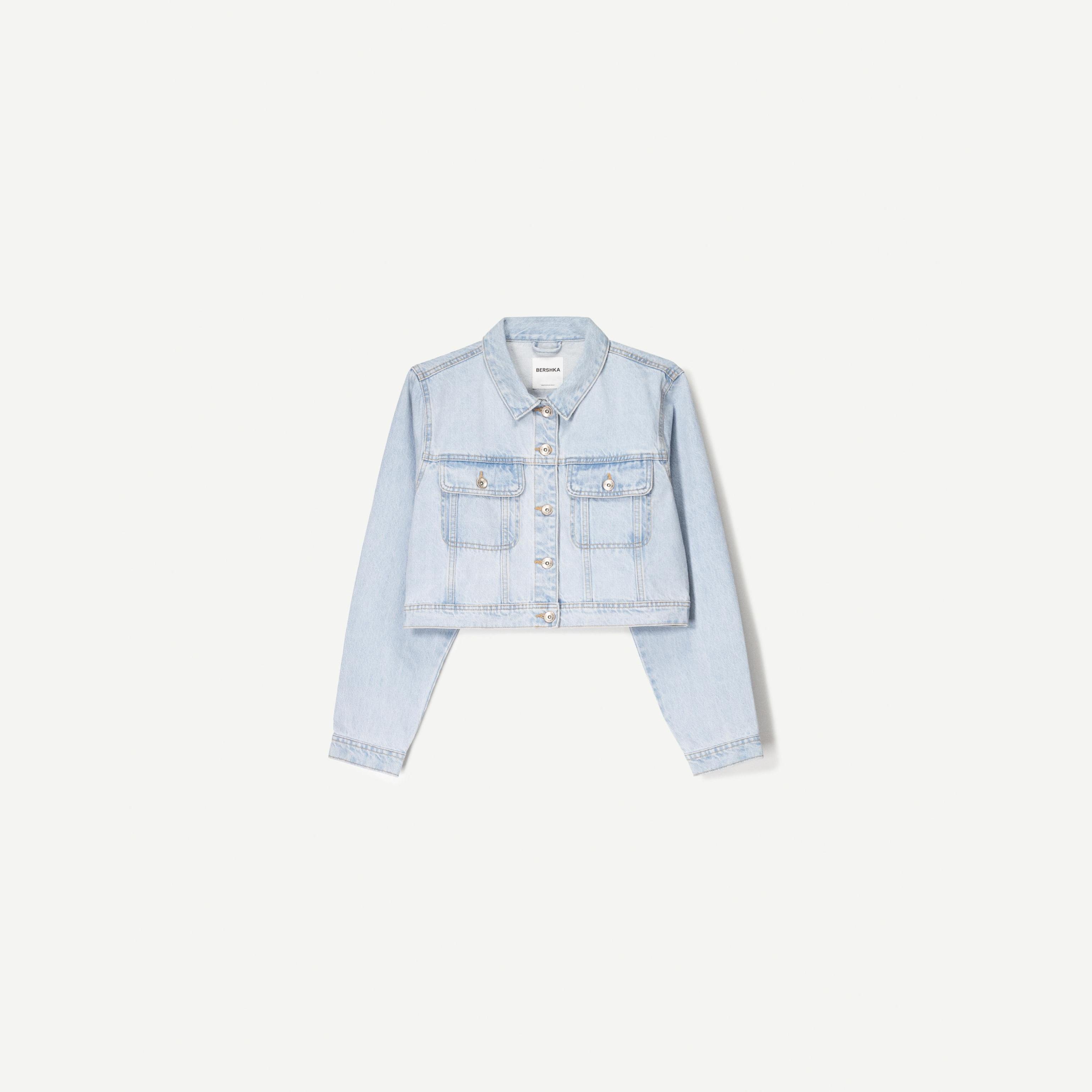 Bershka – جاكيت جينز قصير للسيدات بلون أزرق فاتح