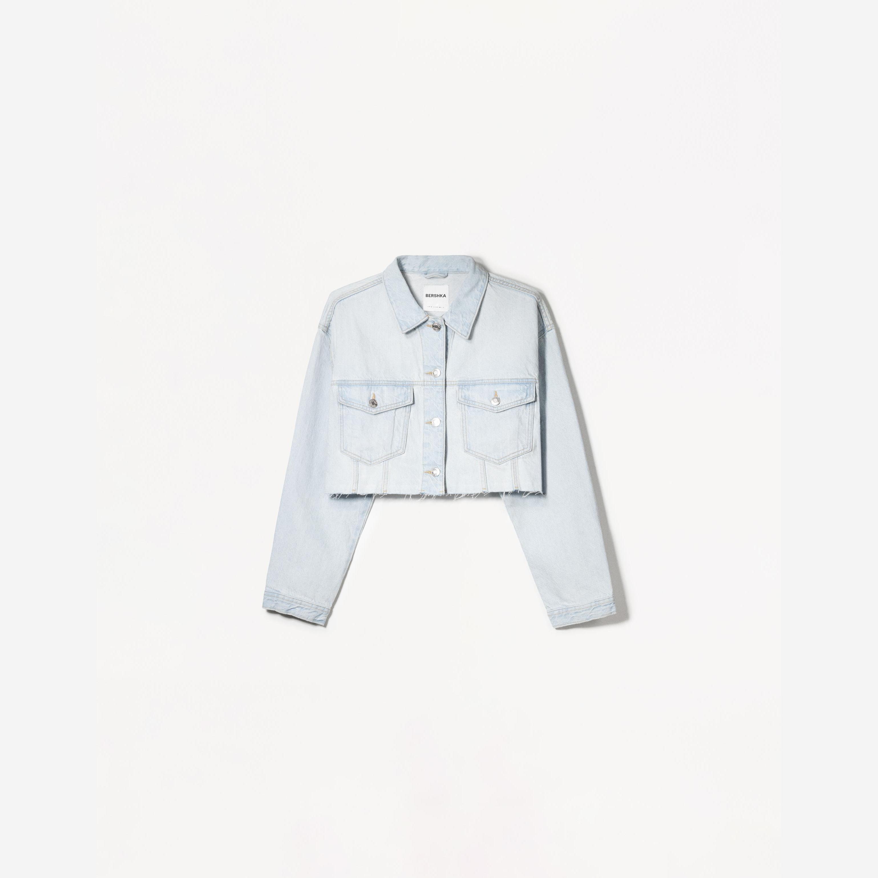 Bershka – جاكيت جينز قصير للسيدات بلون أزرق متوسط
