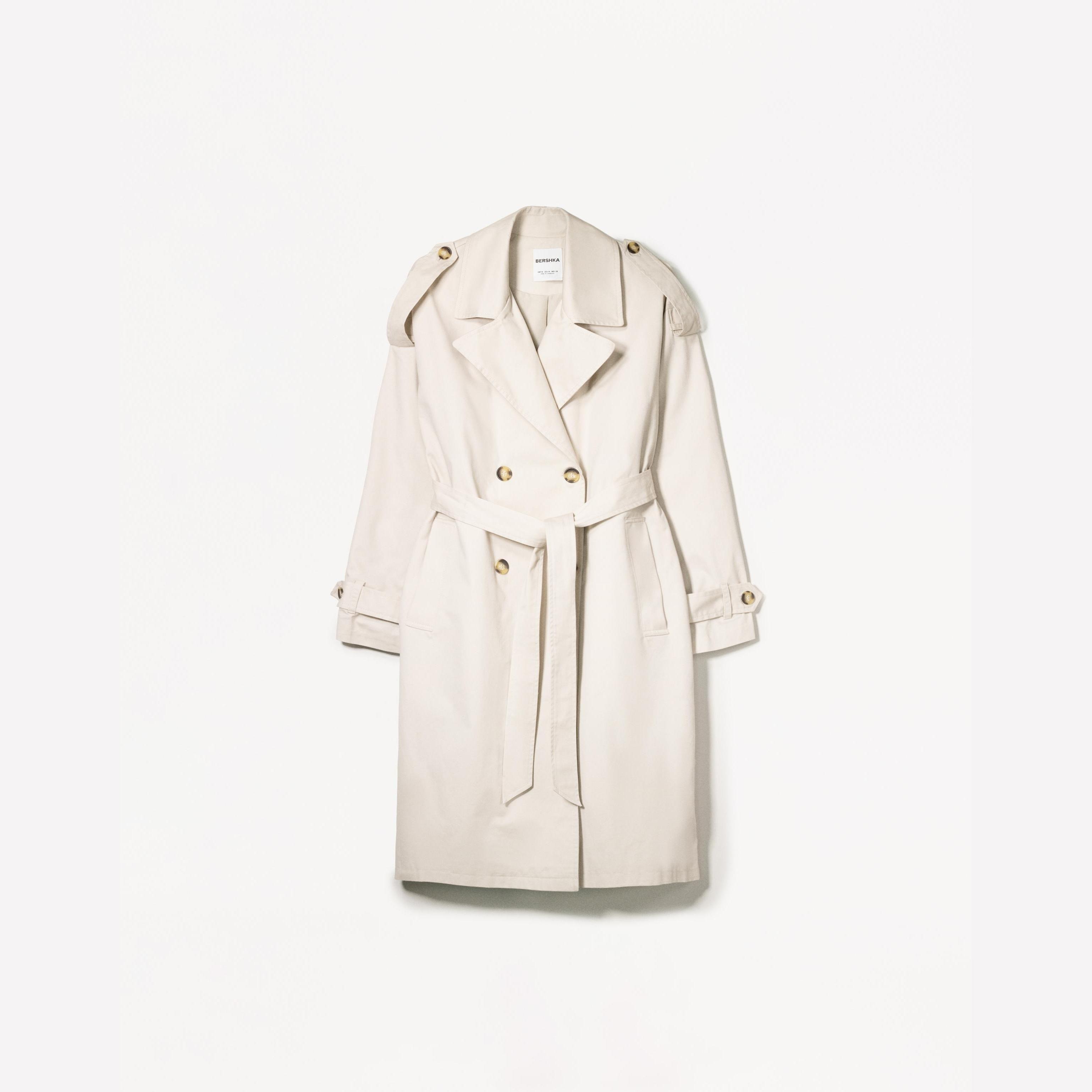 Bershka – ترنش كوت طويل للسيدات بلون رملي