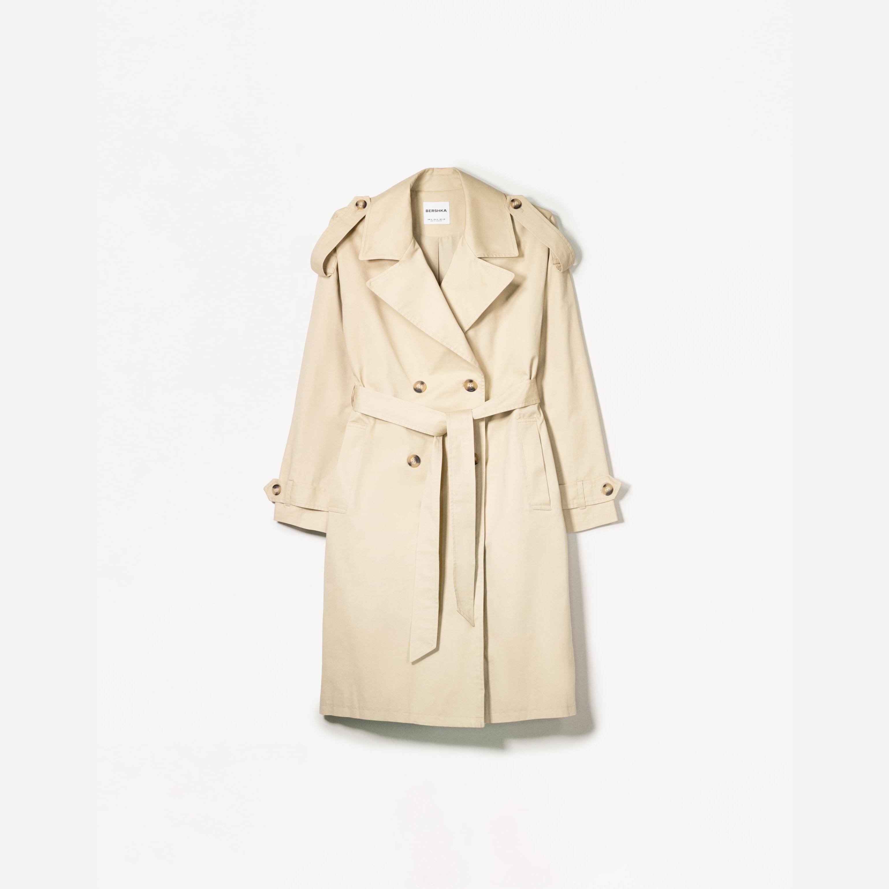 Bershka – ترنش كوت طويل للسيدات بلون جملي