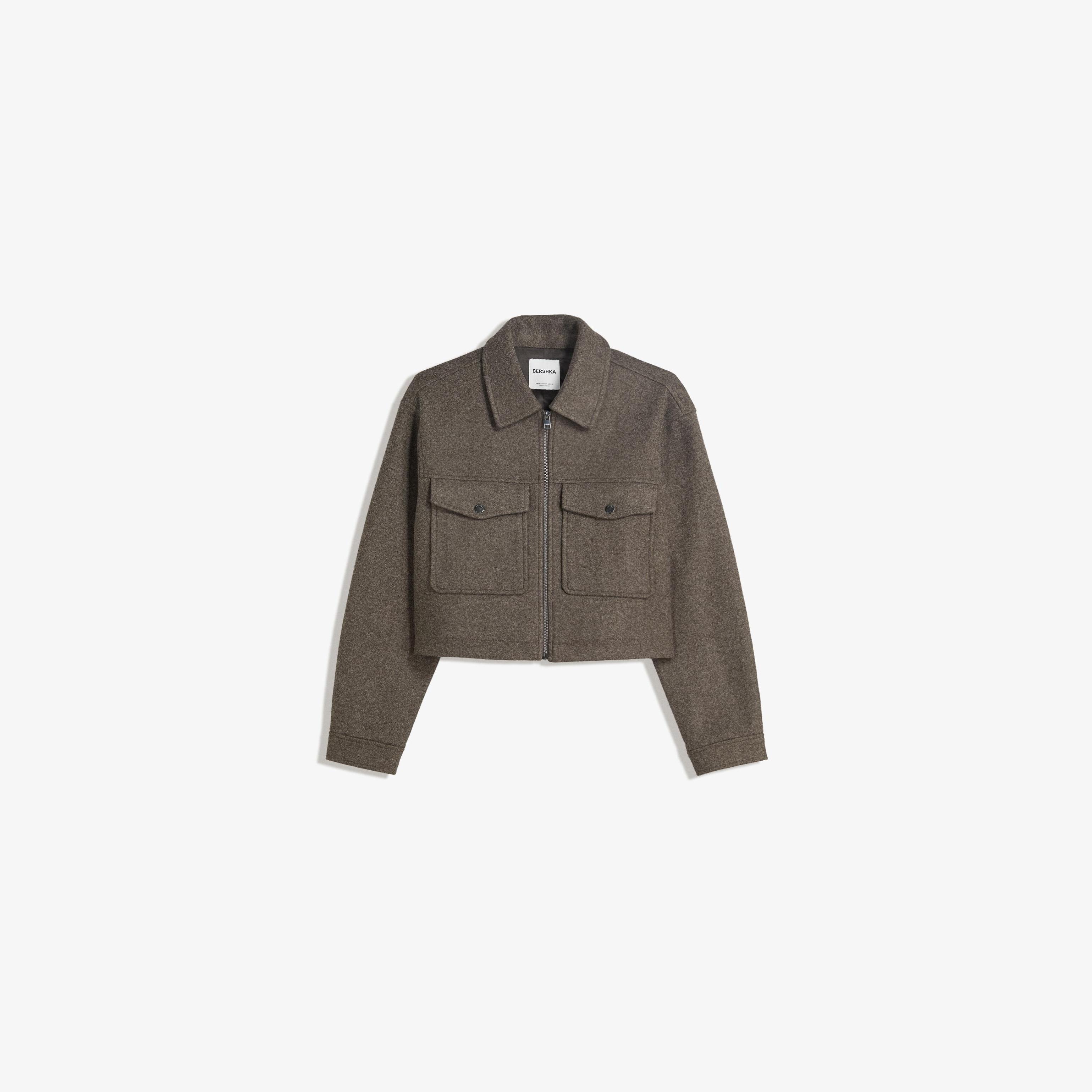 Bershka – جاكيت ناعم بخامة الفِلت للسيدات بلون بني
