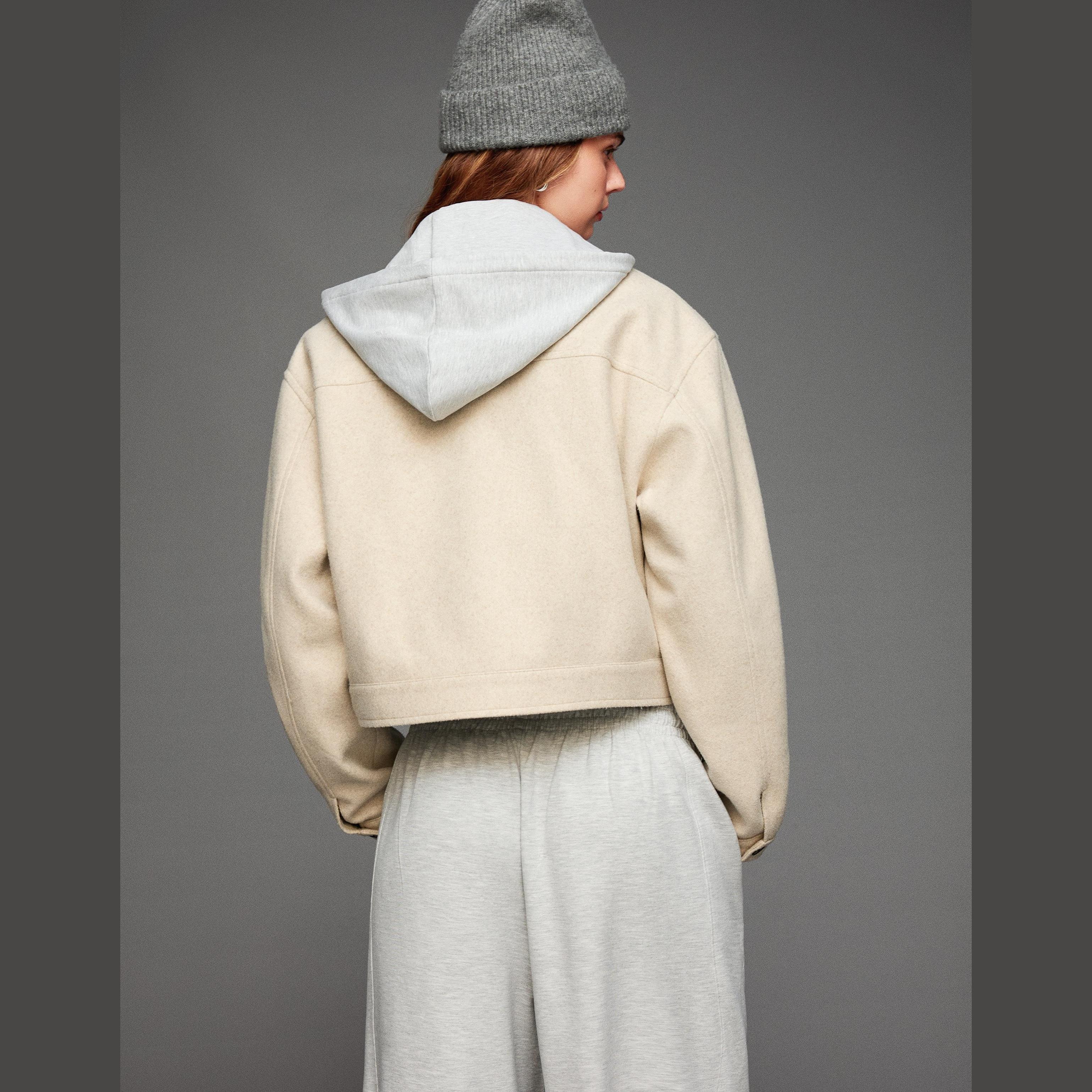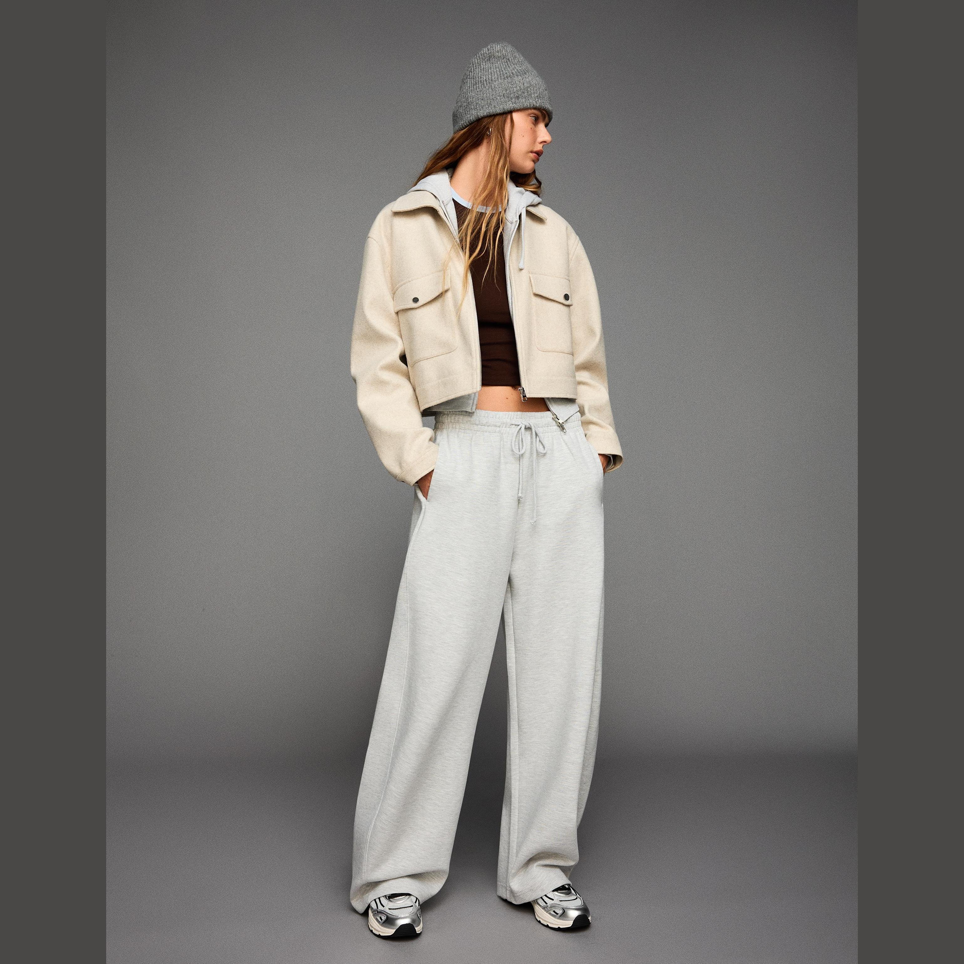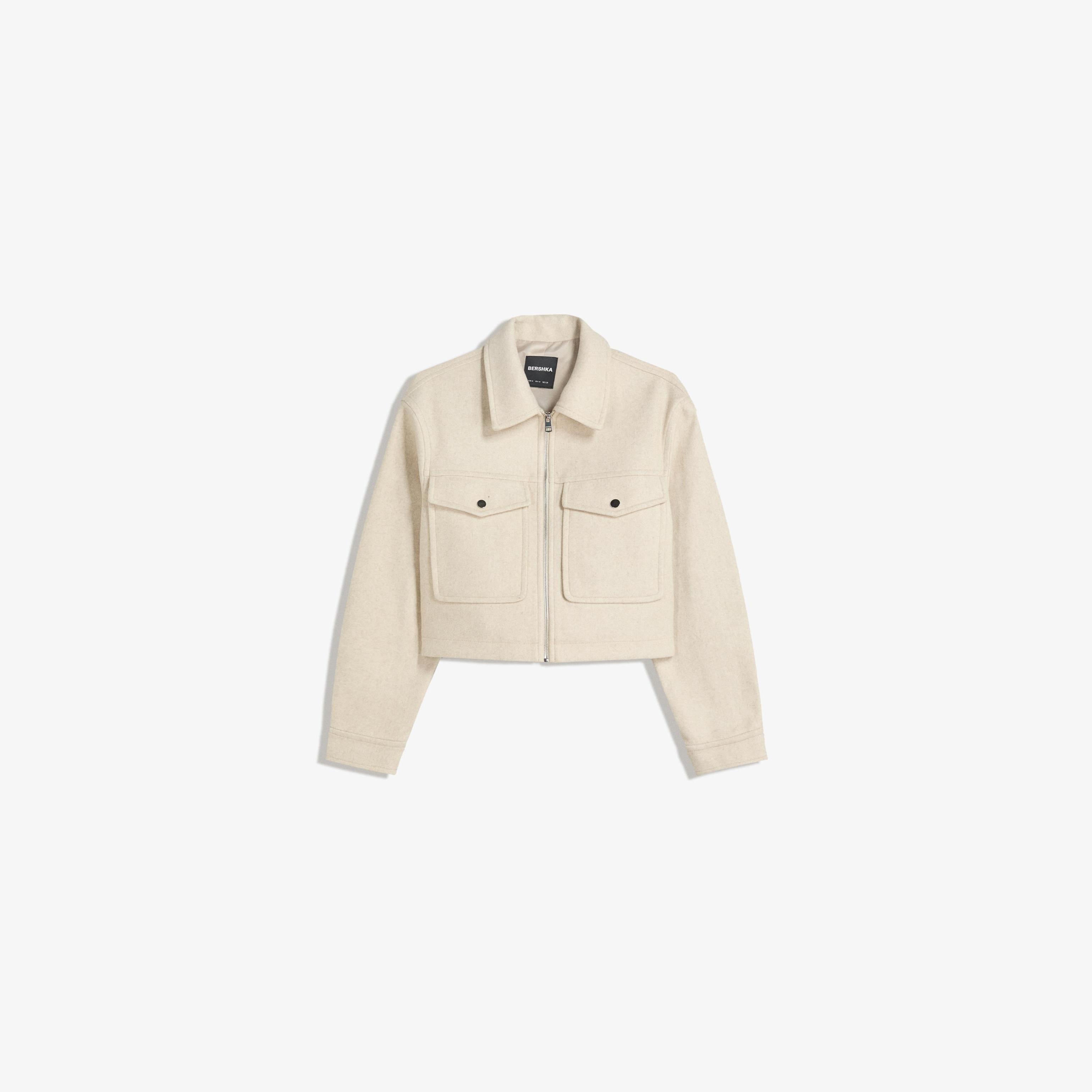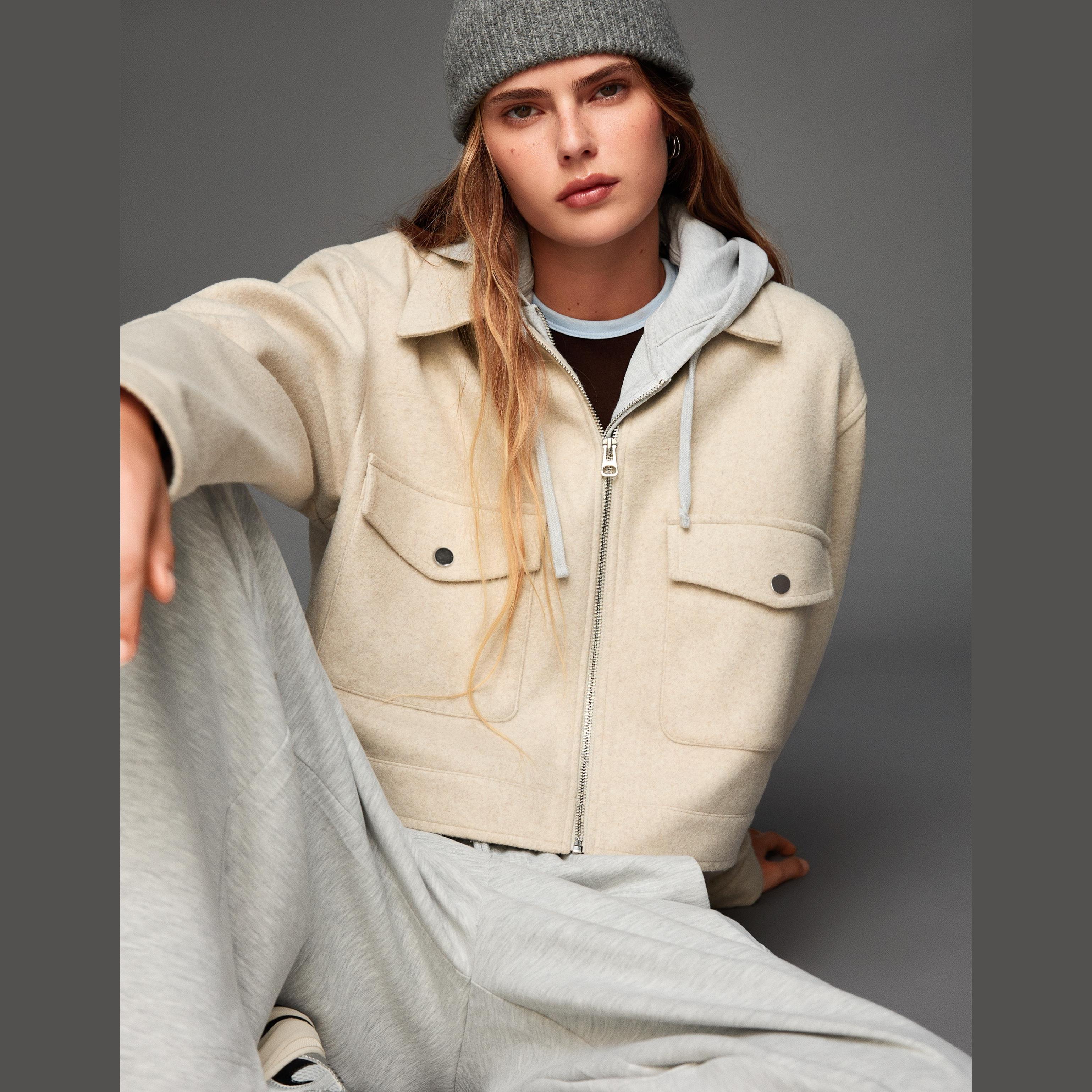 Bershka – جاكيت ناعم بخامة الفِلت للسيدات بلون رملي