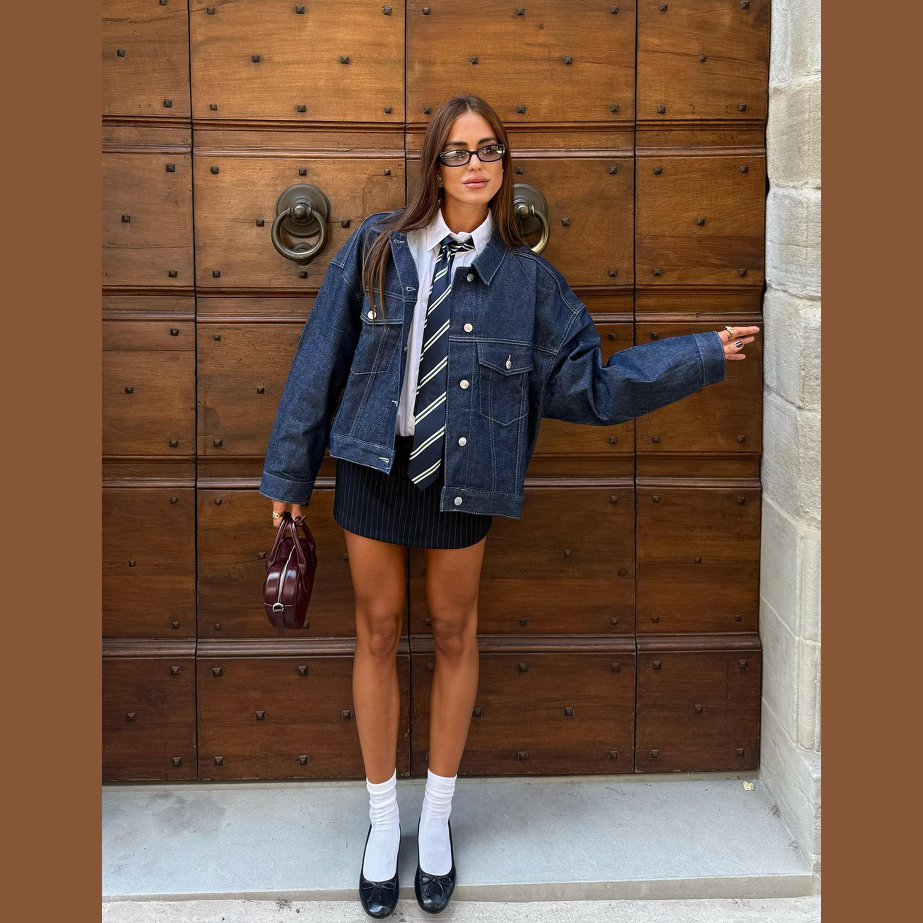 Bershka – جاكيت جينز واسع للسيدات بلون كحلي