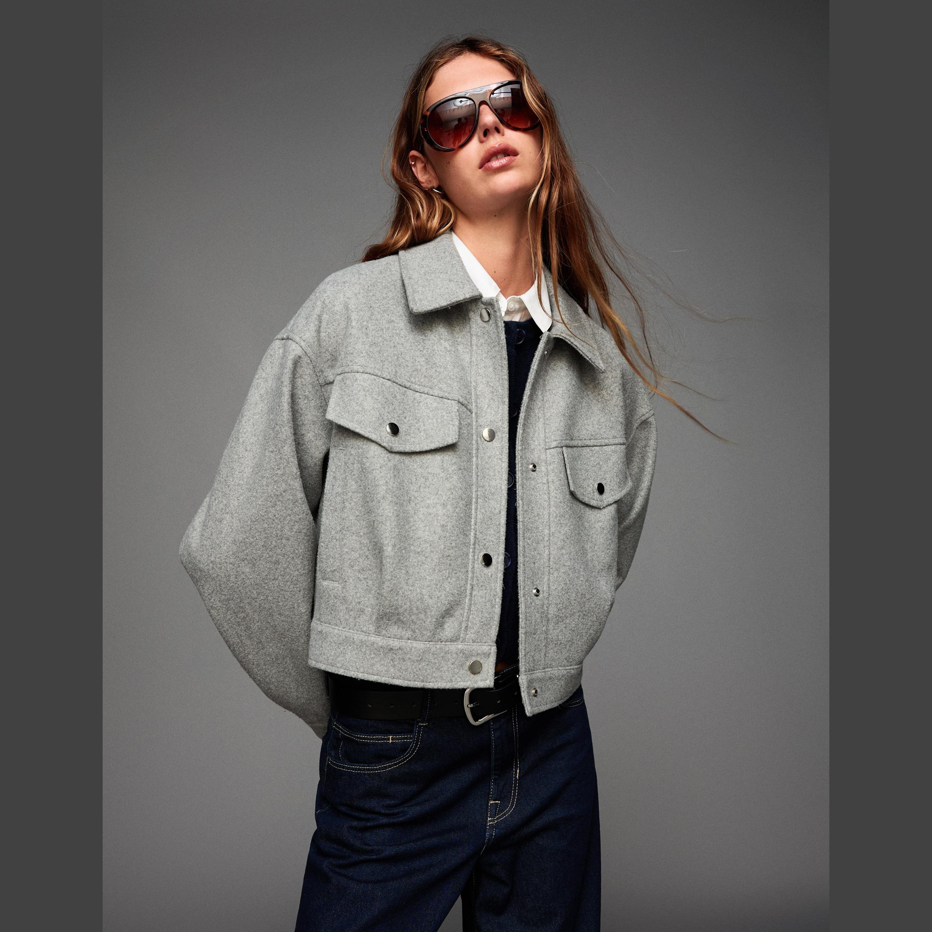 Bershka – جاكيت ترَكر للسيدات بلون رمادي
