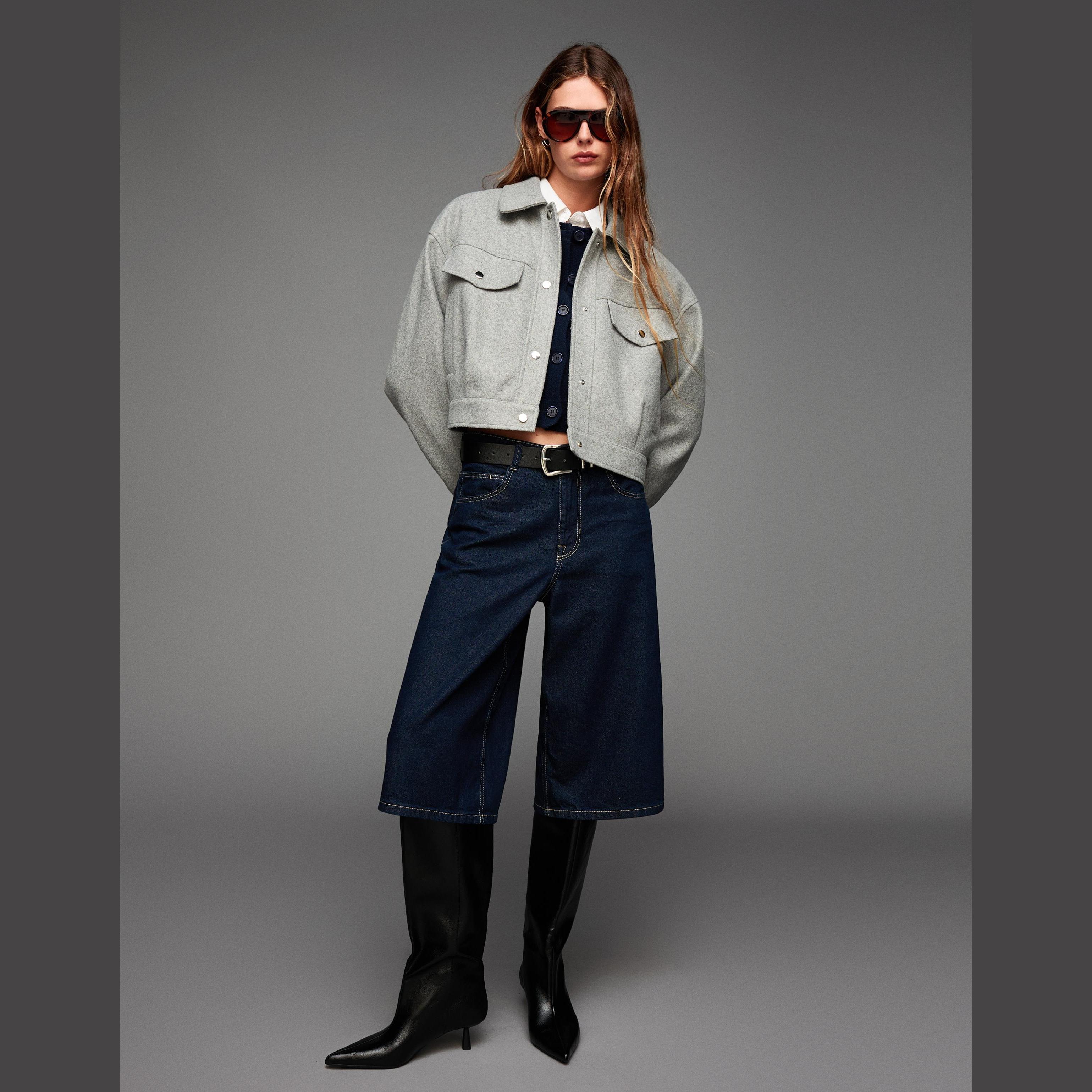 امنحي إطلالتك لمسة كلاسيكية وعصرية مع هذا الجاكيت الترَكر من Bershka. تصميمه المستوحى من جاكيتات الدنيم التقليدية بلونه الرمادي يمنحك مظهرًا حياديًا وسهل التنسيق، مثالي للأيام المعتدلة أو تنسيقات الطبقات.