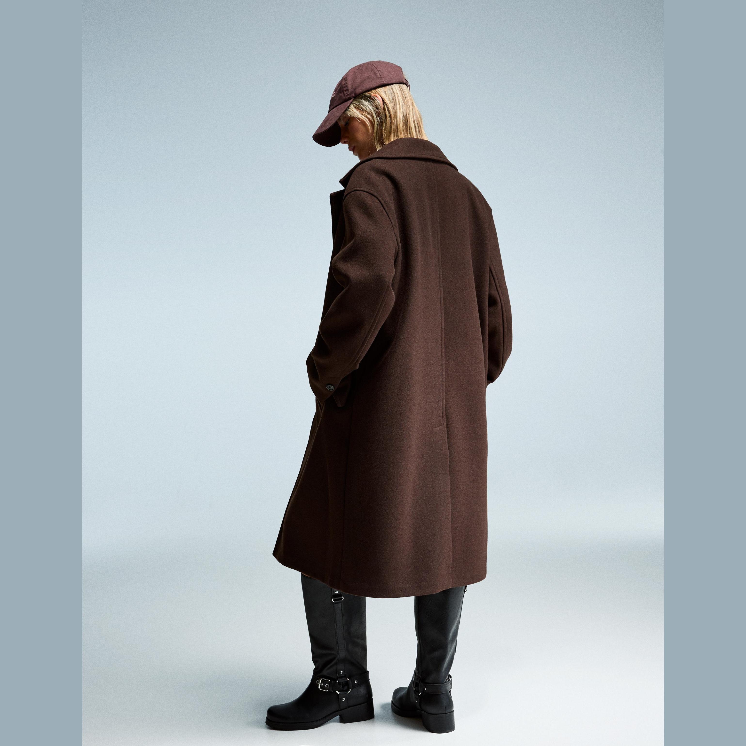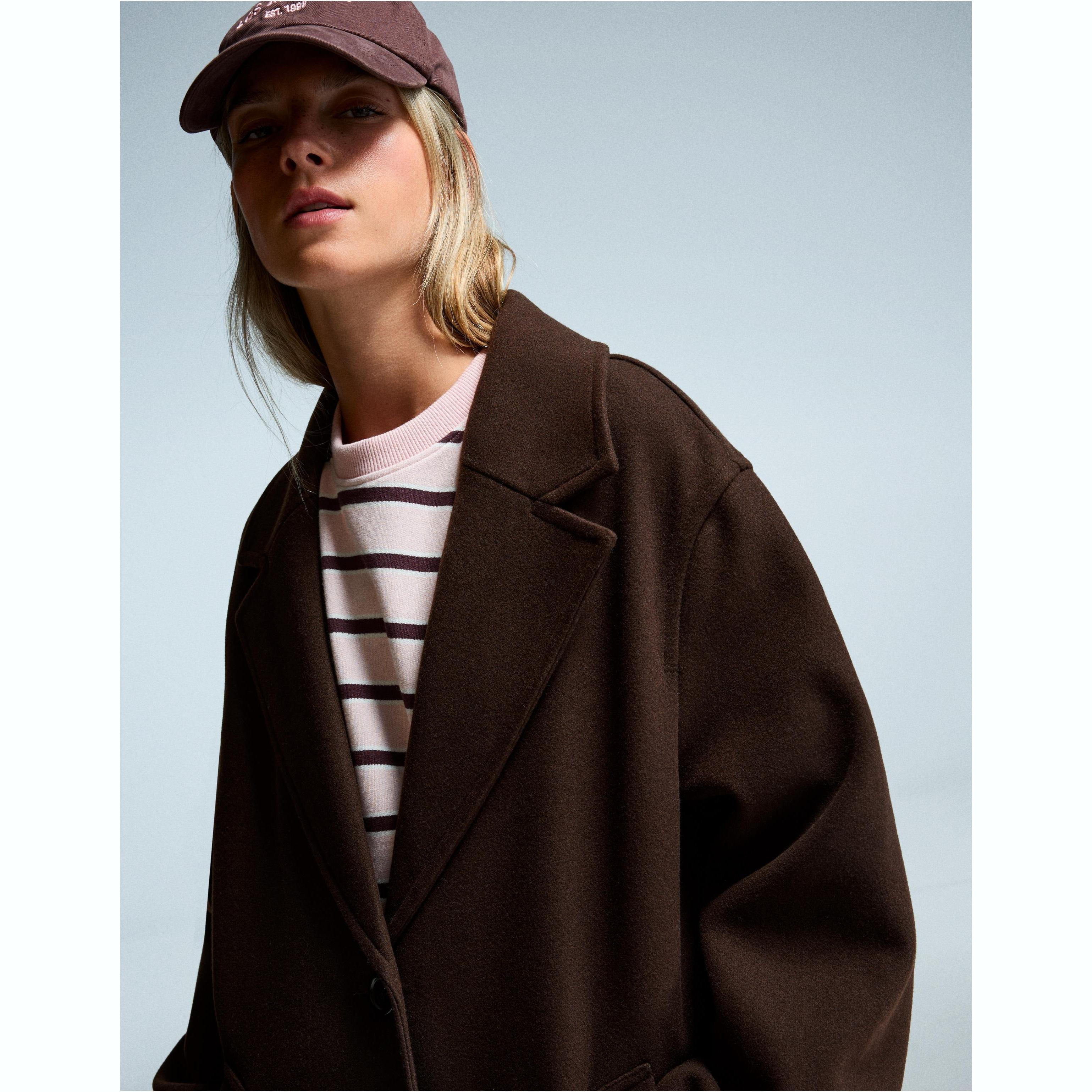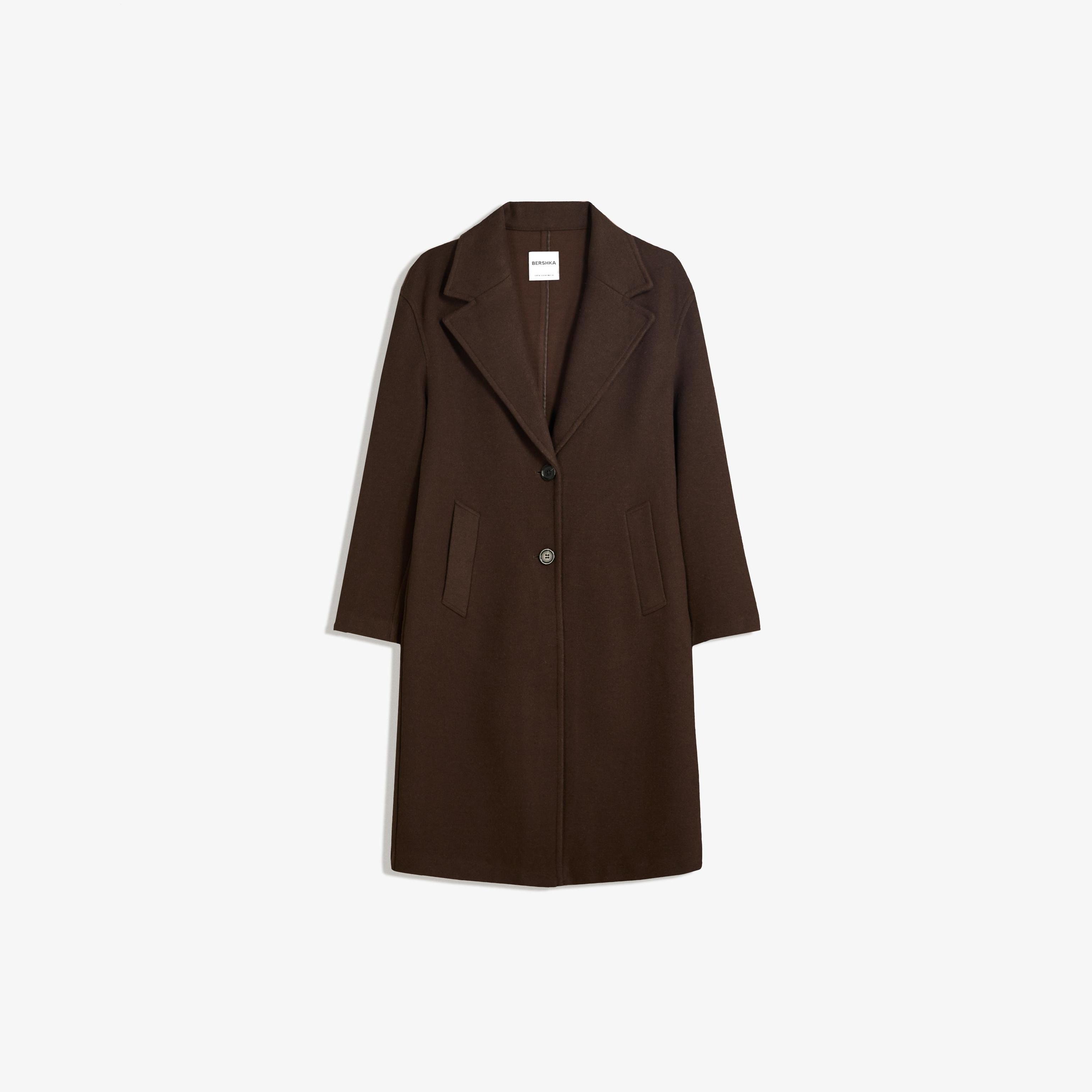Bershka – معطف طويل ناعم للسيدات بلون بني