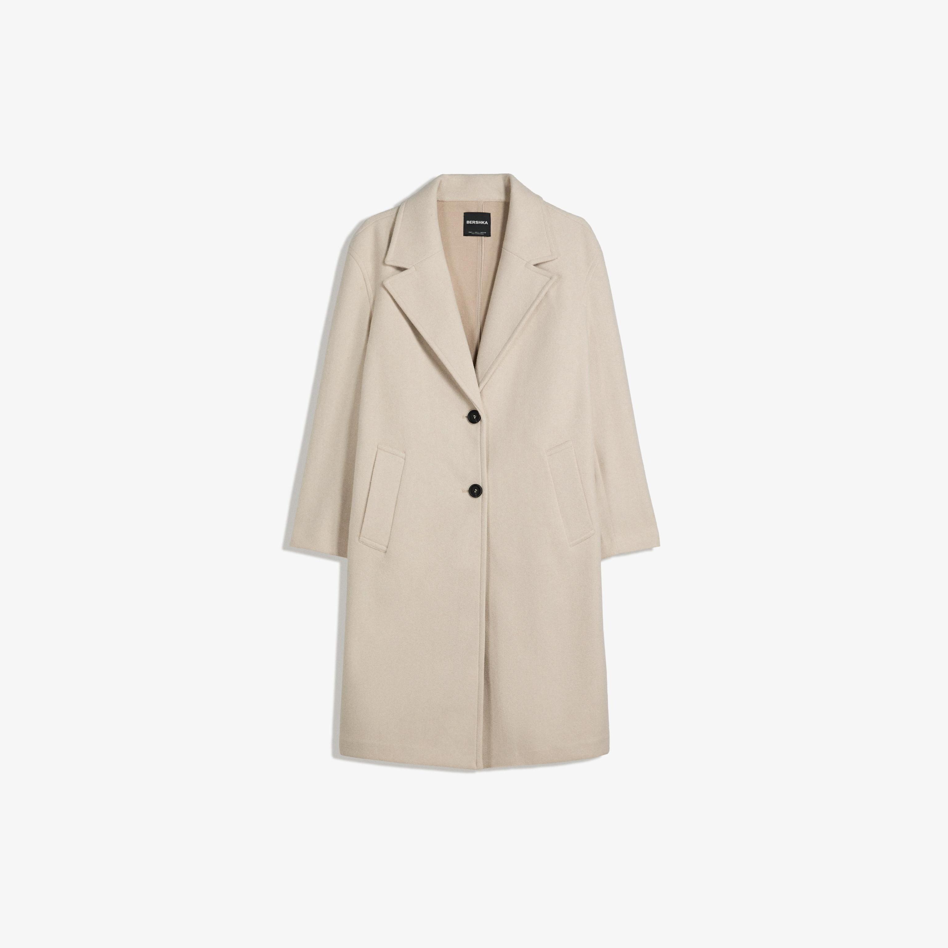 Bershka – معطف طويل ناعم للسيدات بلون رملي