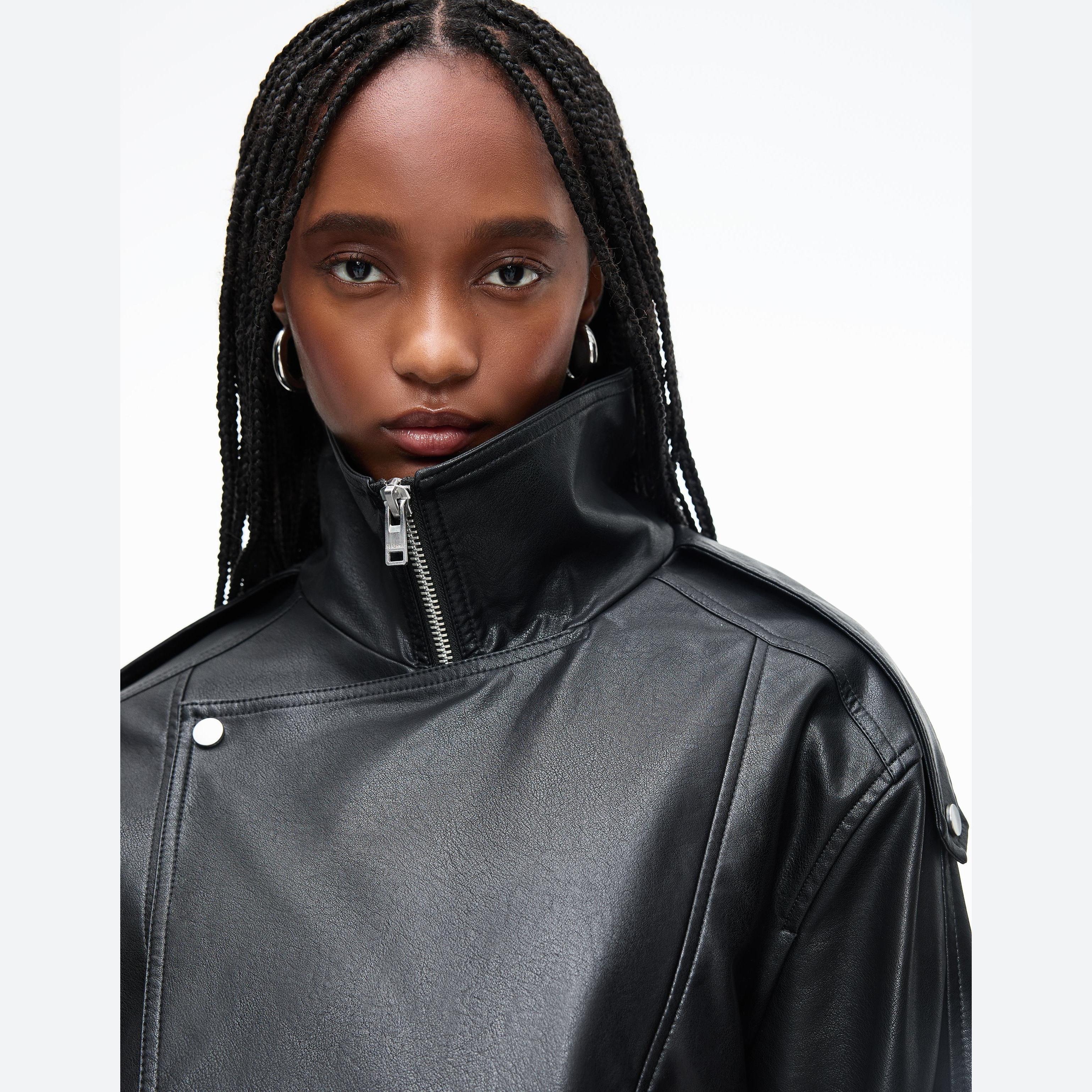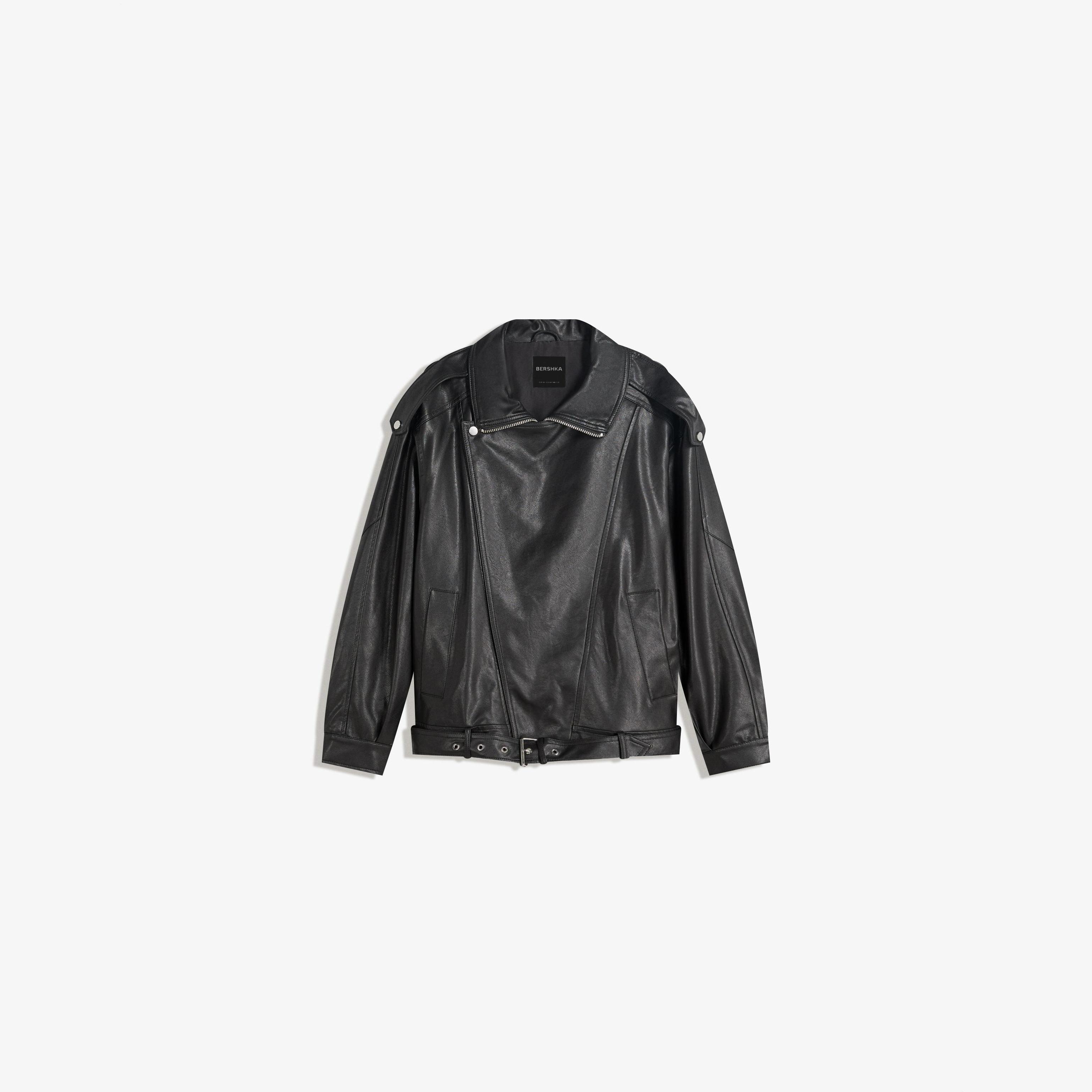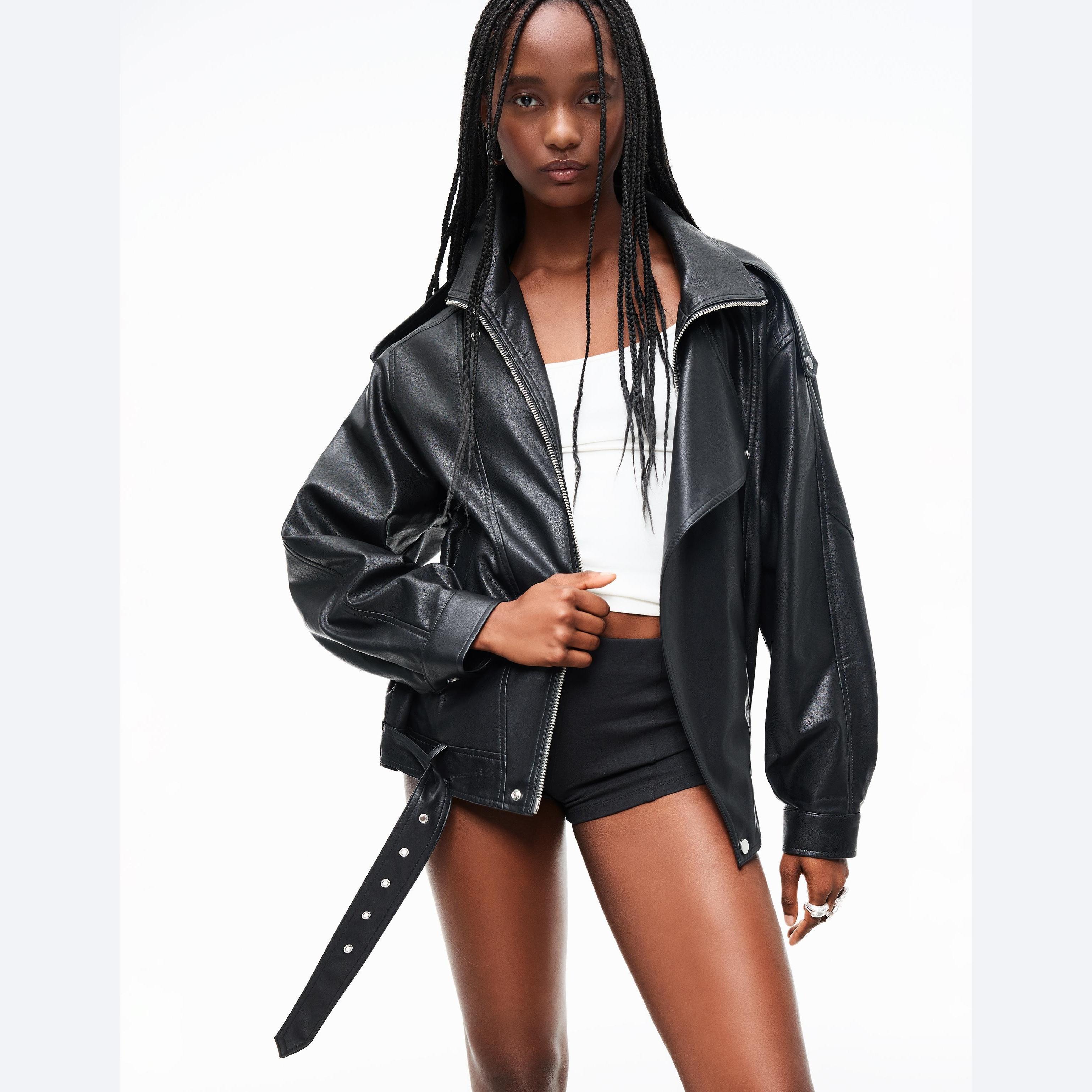 Bershka – جاكيت بتأثير الجلد مع حزام للسيدات بلون أسود