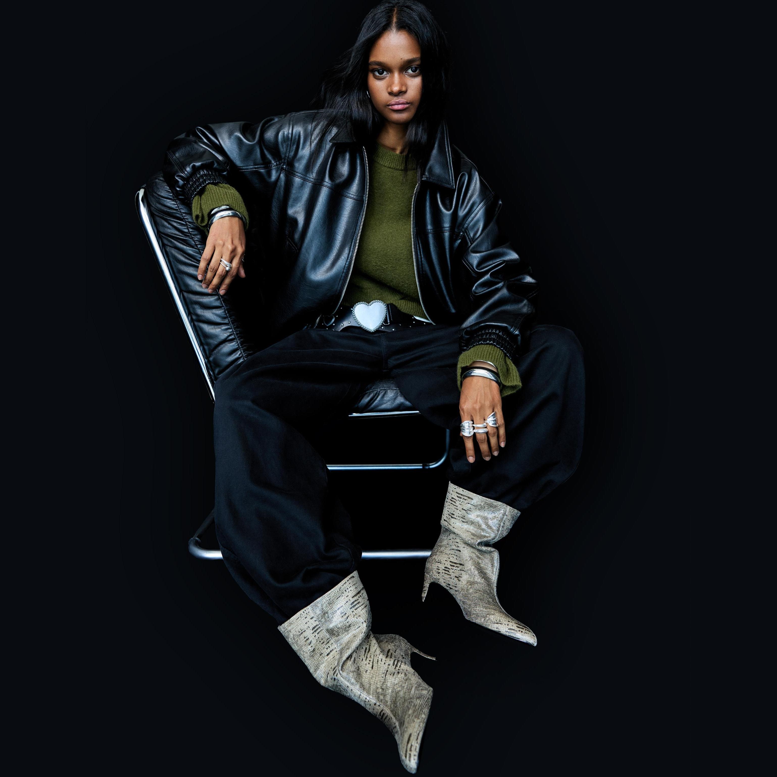 - معلومة إضافية: العارضة بطول 178 سم وترتدي مقاس S