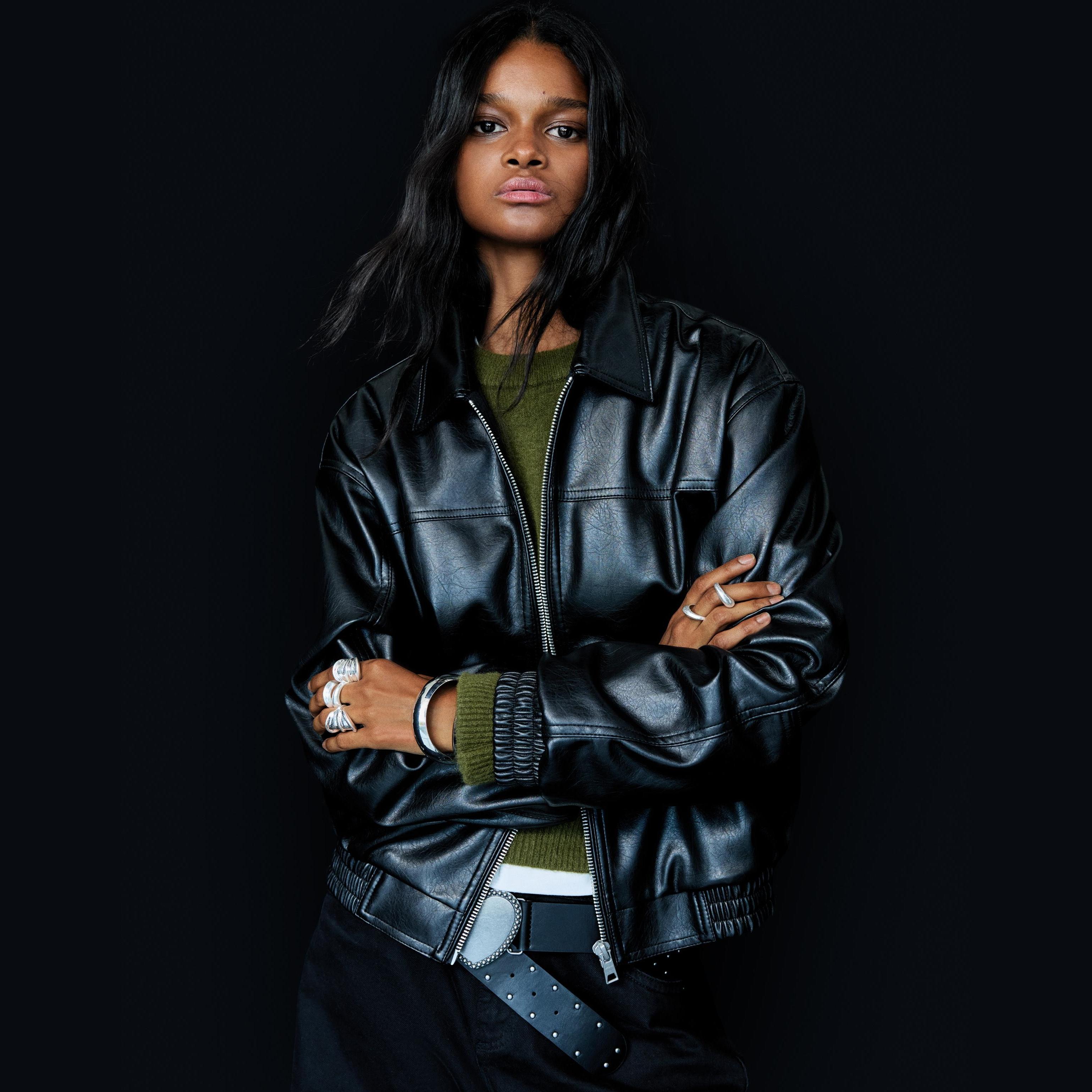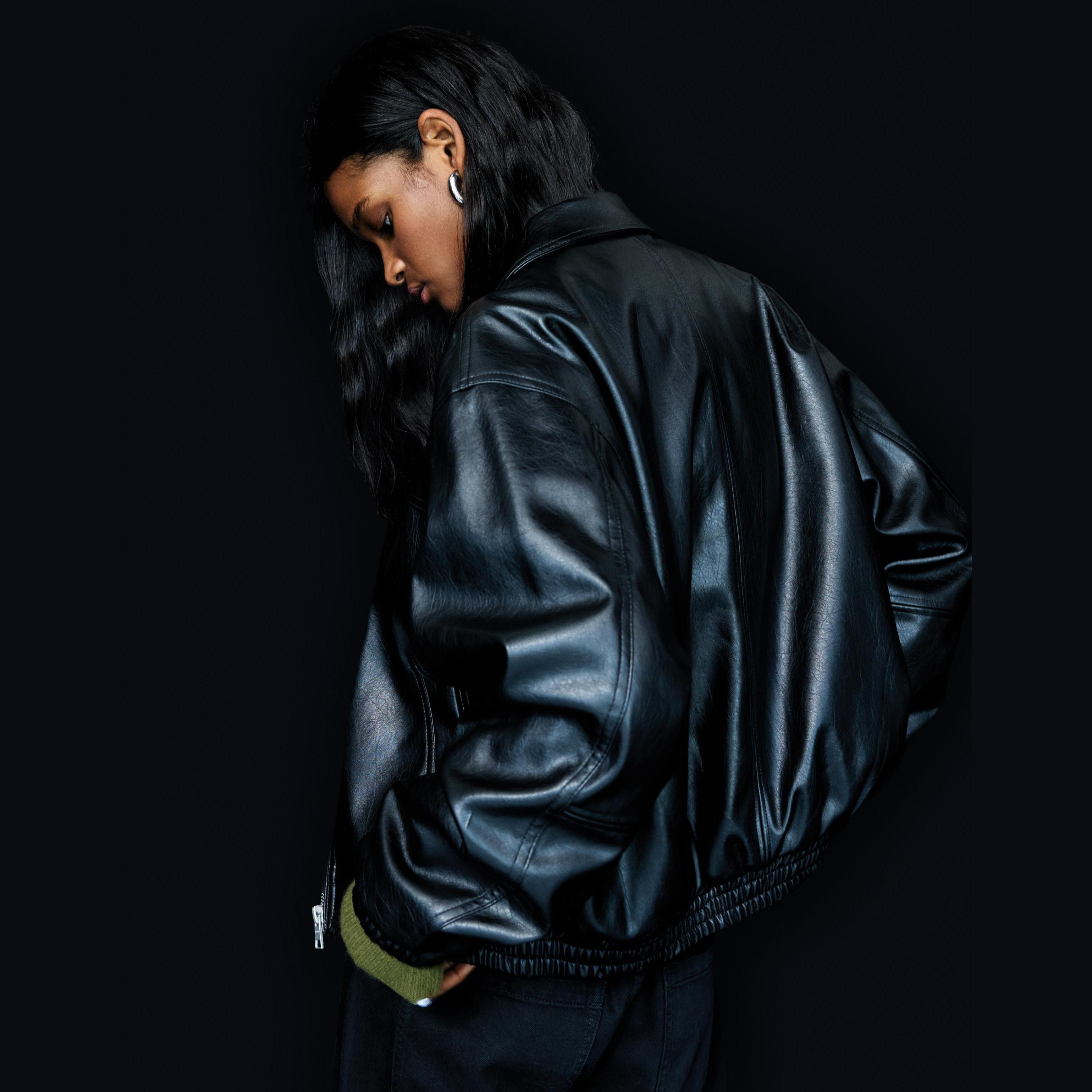 Bershka – جاكيت بتأثير الجلد للسيدات بلون أسود