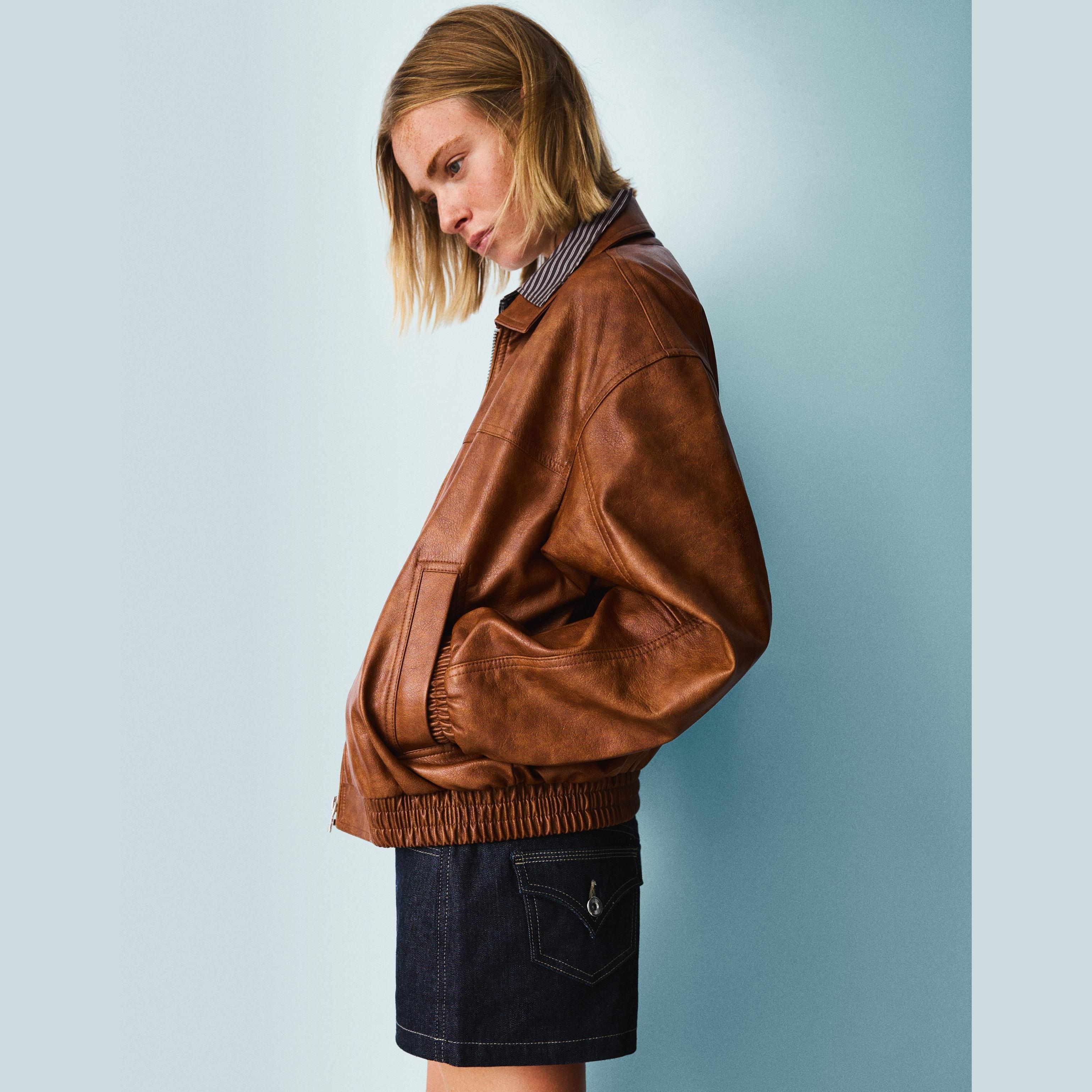 Bershka – جاكيت بتأثير الجلد للسيدات بلون جملي