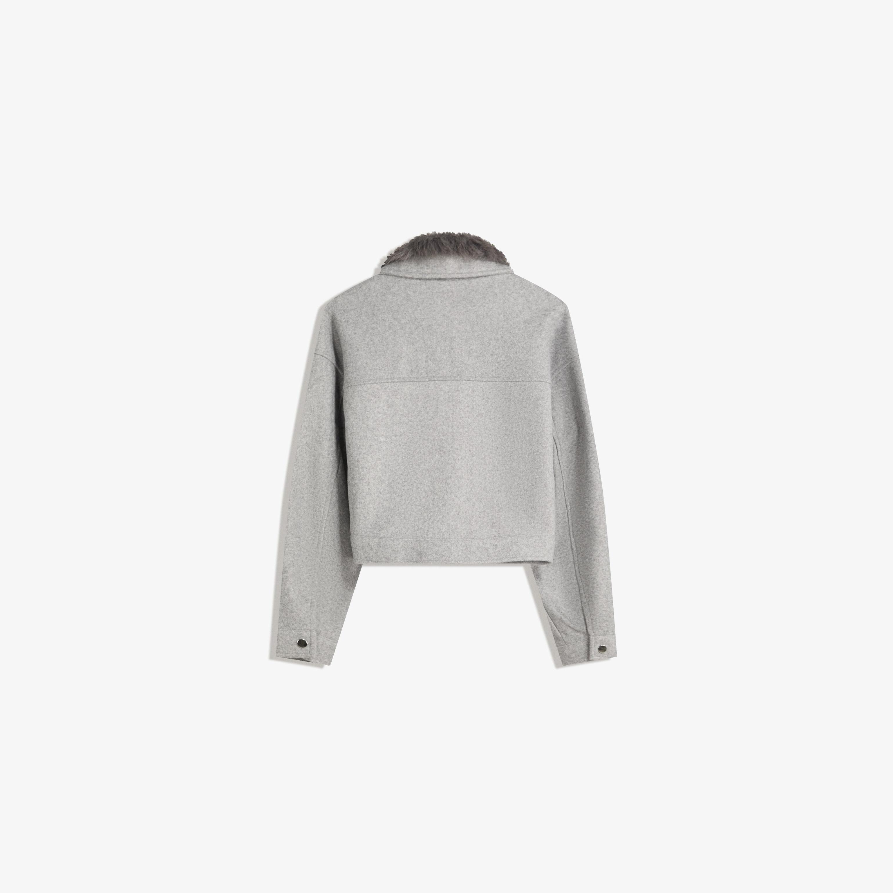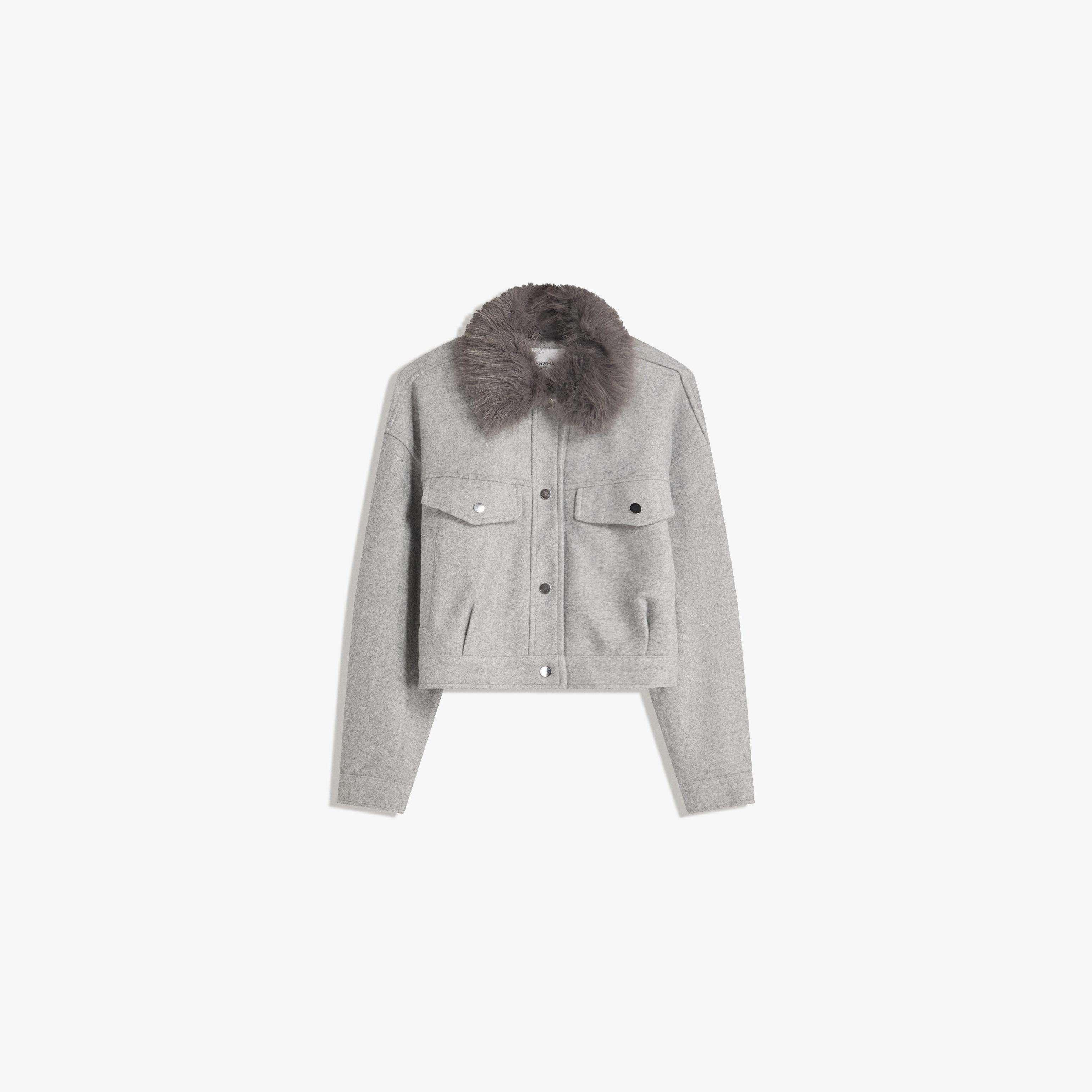 Bershka – جاكيت تروكر ناعم بياقة فرو صناعي بلون رمادي