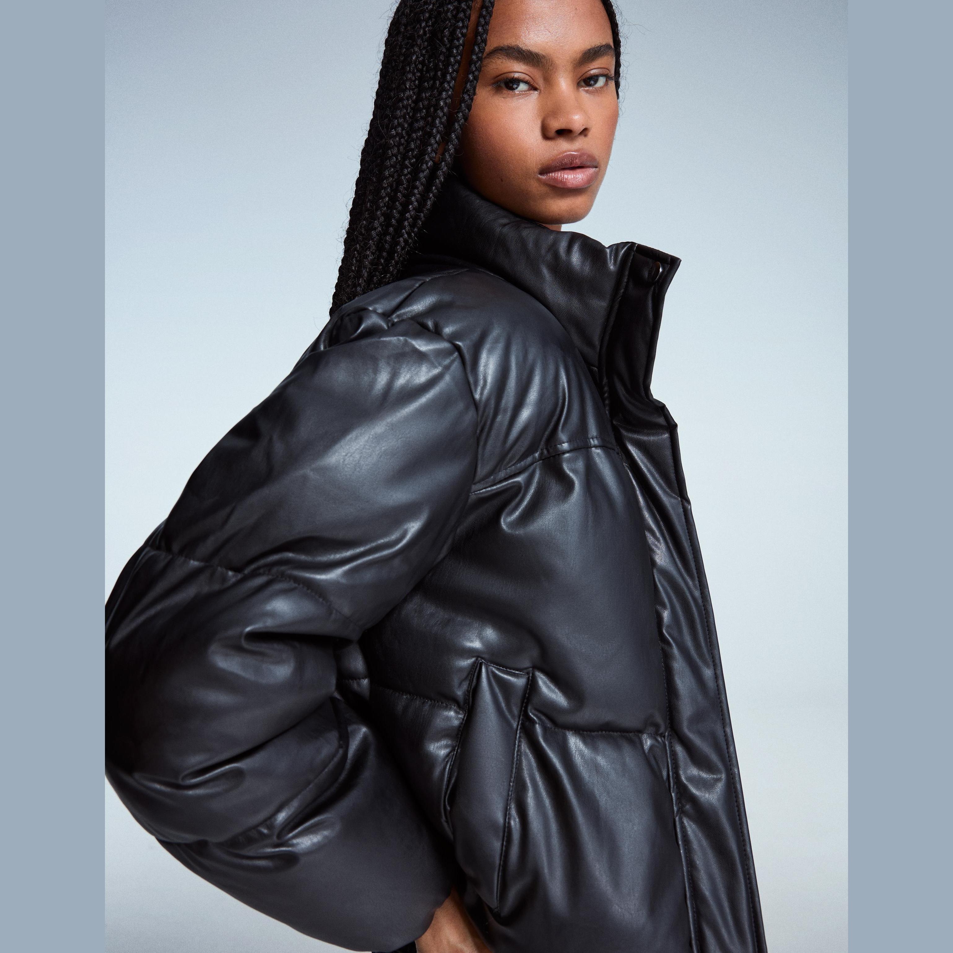 ارتقي بإطلالتك الشتوية مع هذا الجاكيت المنفوخ بتأثير الجلد من Bershka. تصميمه الجريء ولمسته اللامعة يمنحانك مظهرًا عصريًا دافئًا، مثالي للأيام الباردة والمناسبات الكاجوال ذات الطابع الحضري.