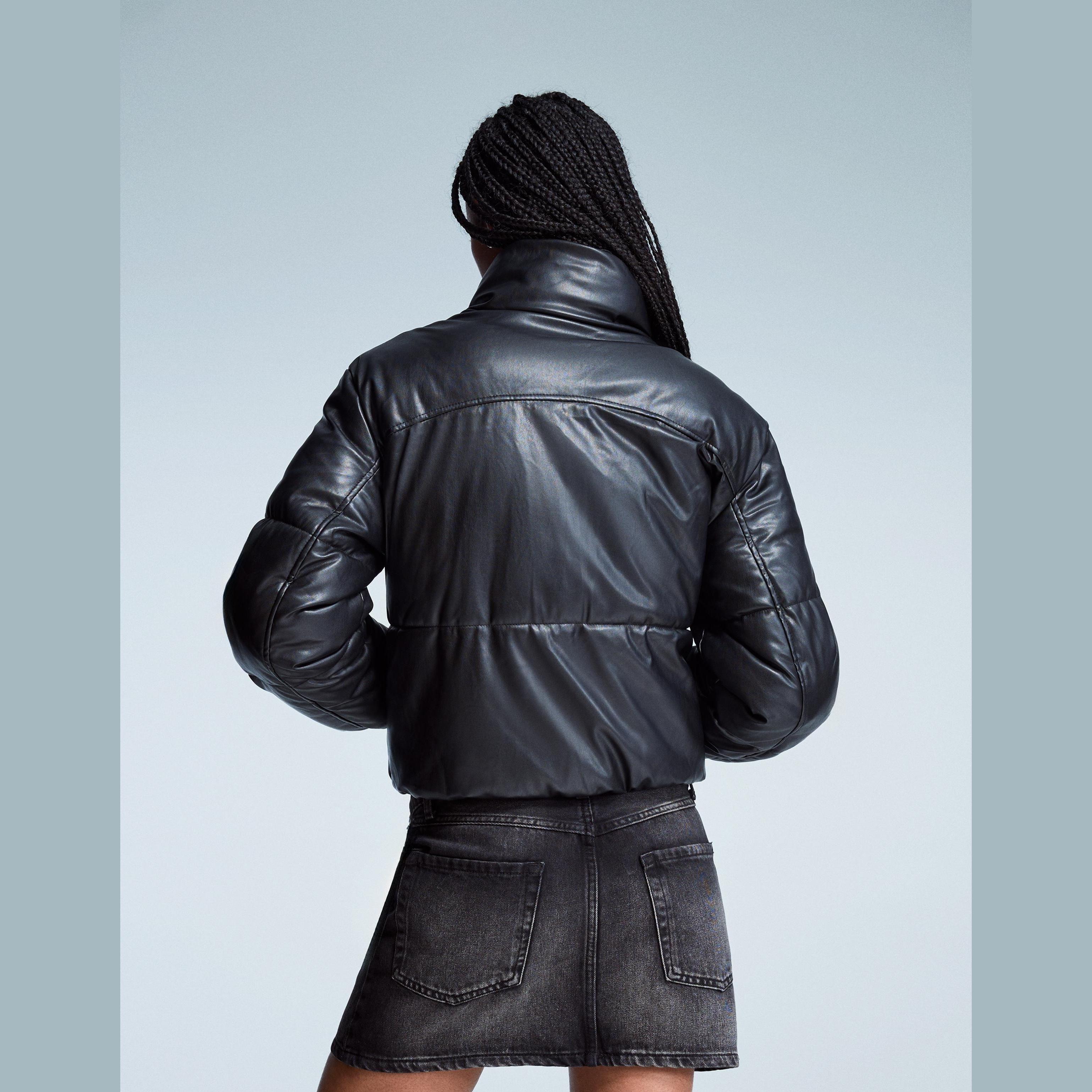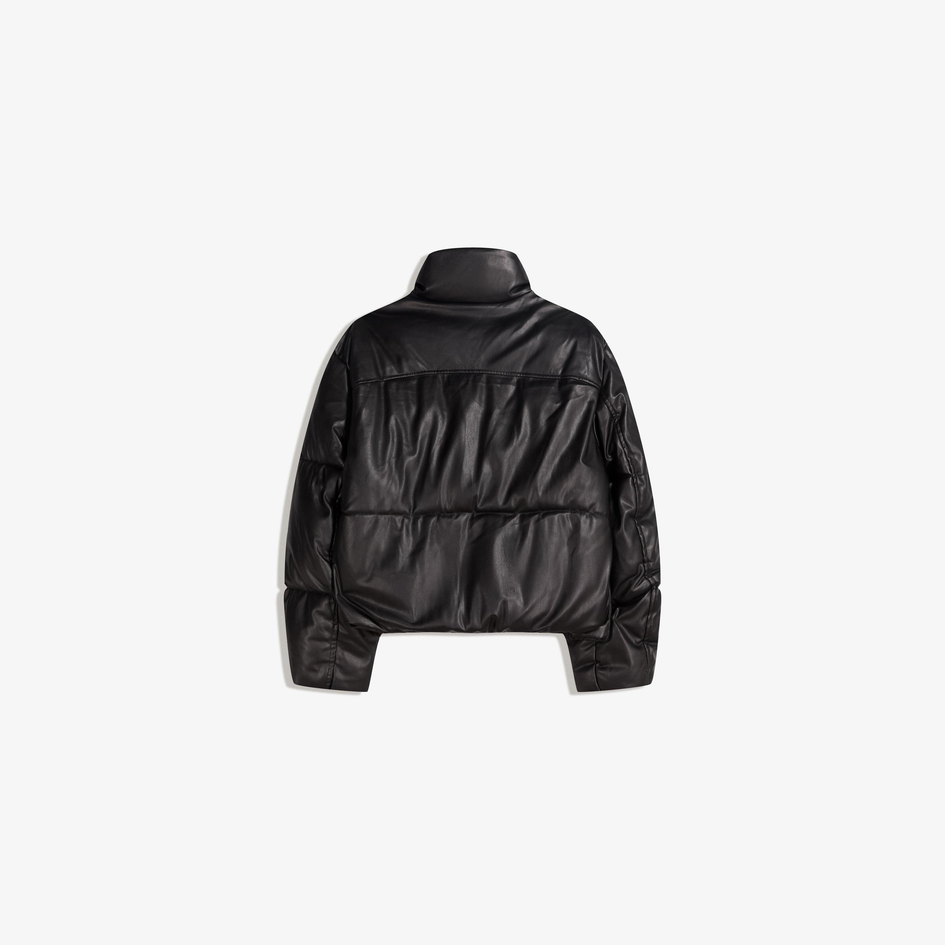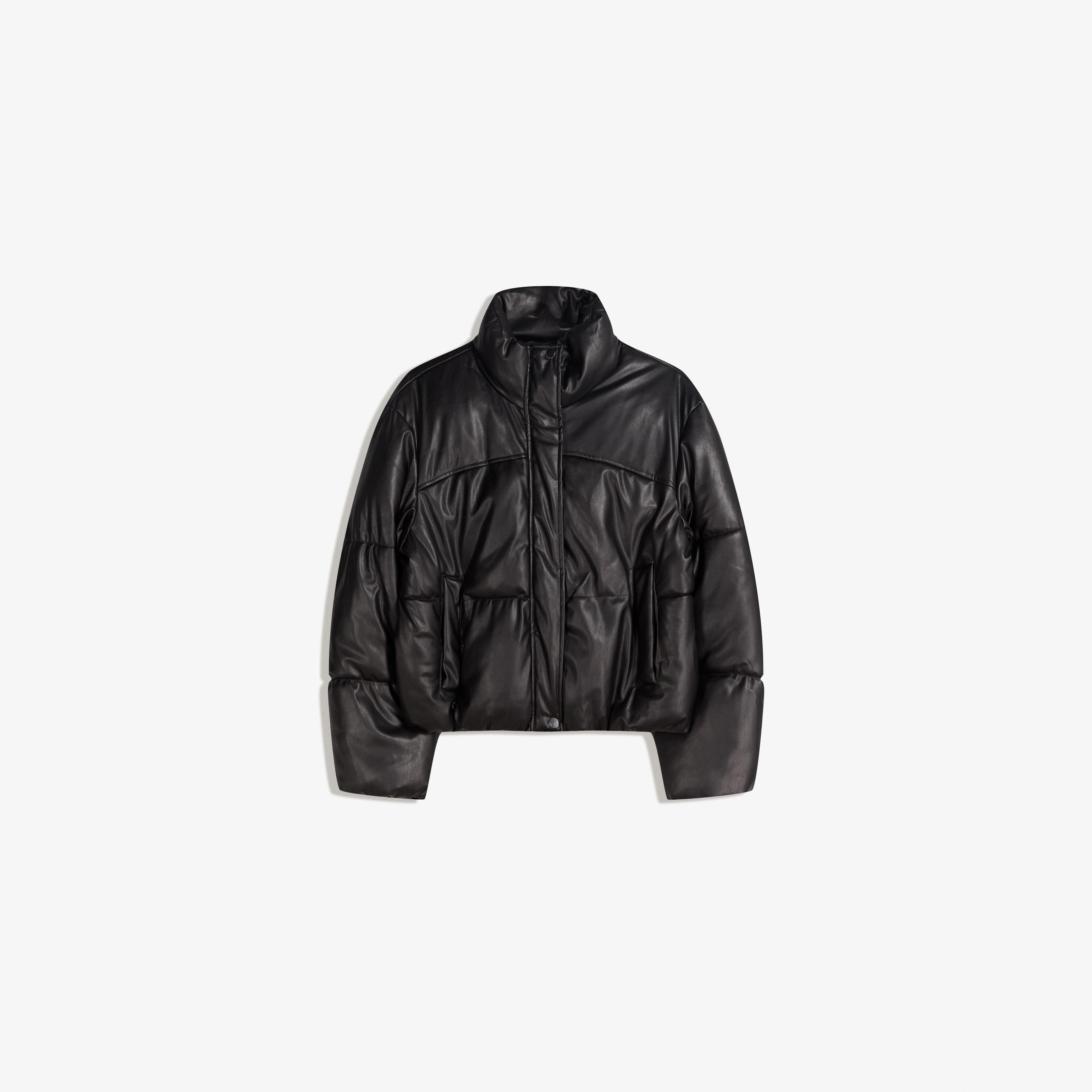 Bershka – جاكيت منفوخ بتأثير الجلد بلون أسود