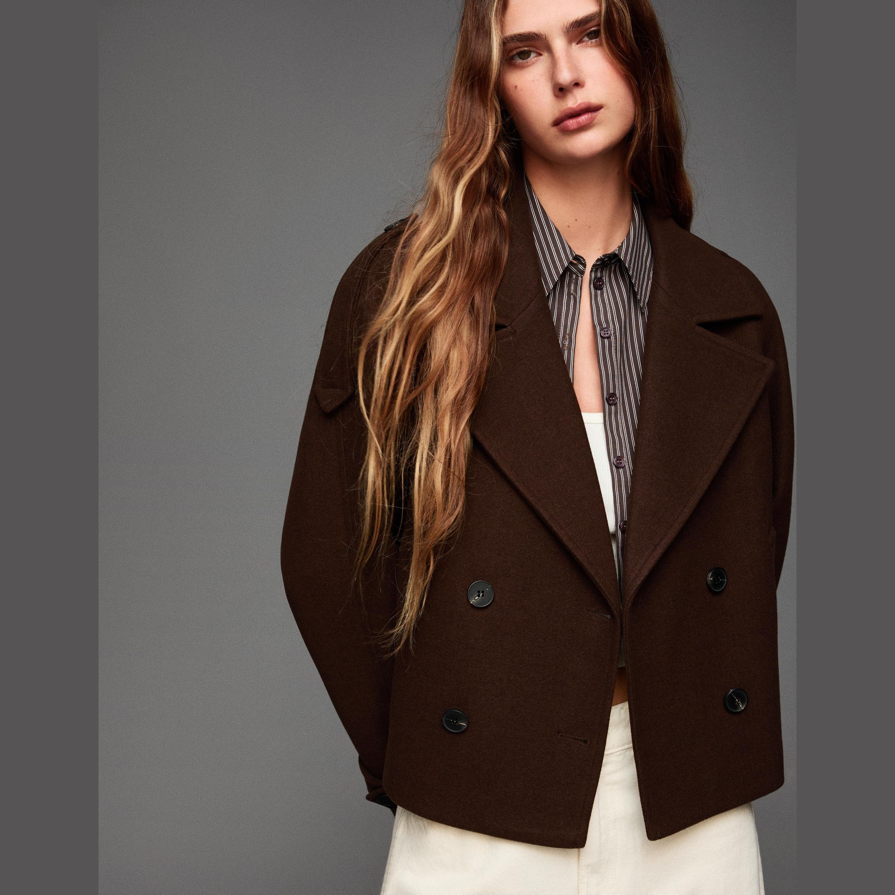 Bershka – ترنش كوت ناعم بلون بني