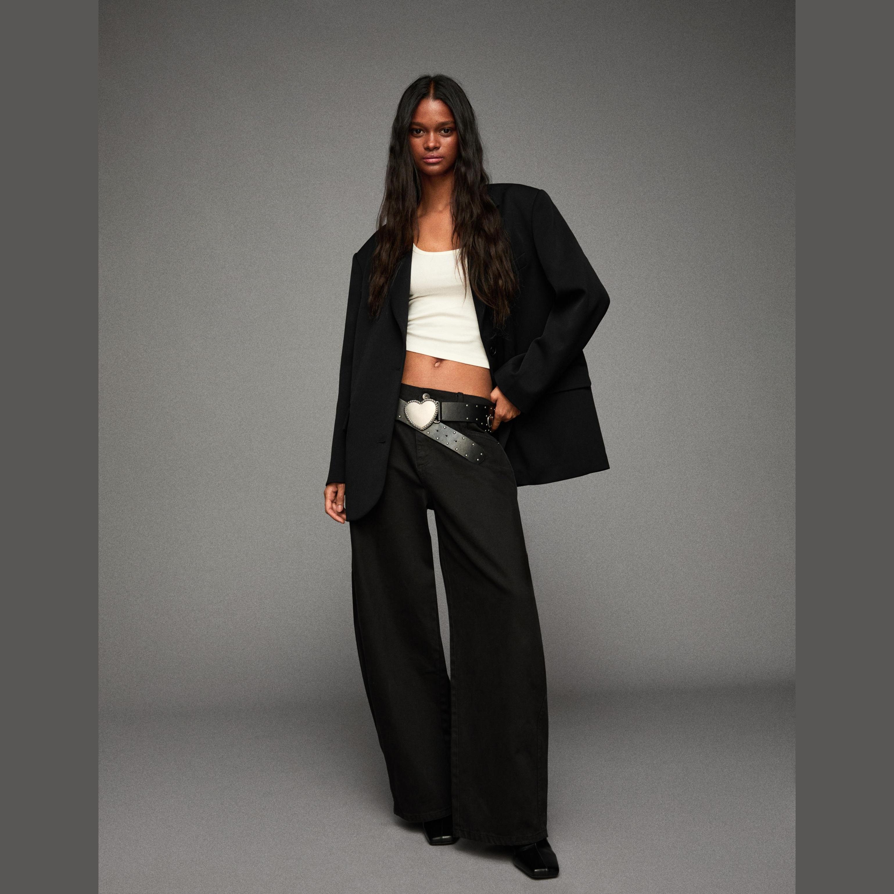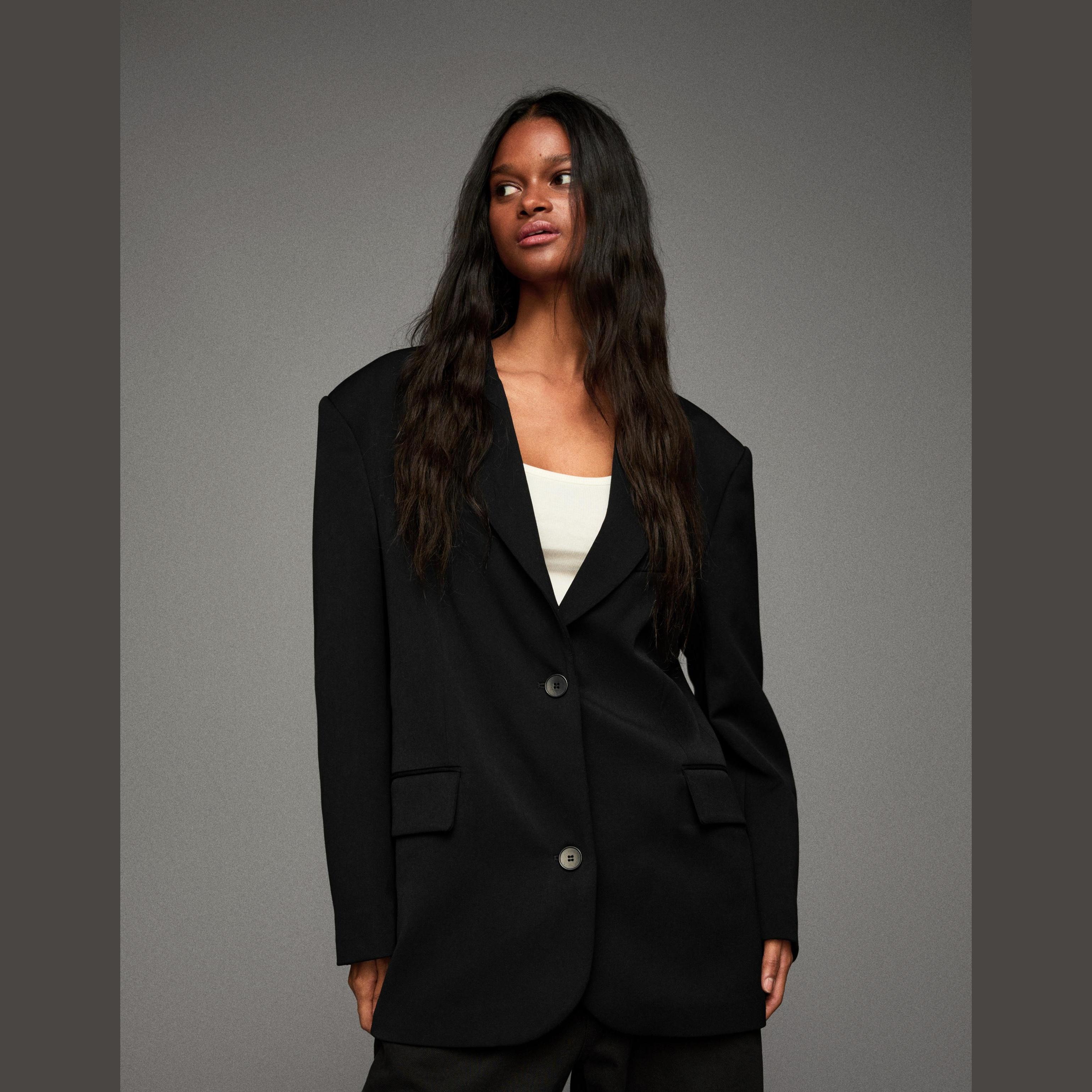 ارتقي بإطلالتك الرسمية أو الكاجوال مع هذا البليزر الواسع من Bershka. تصميمه الكلاسيكي بقصة عصرية واسعة يمنحك مظهرًا أنيقًا ومريحًا، مثاليًا للعمل، المناسبات، أو تنسيقات الشارع المتقدمة.