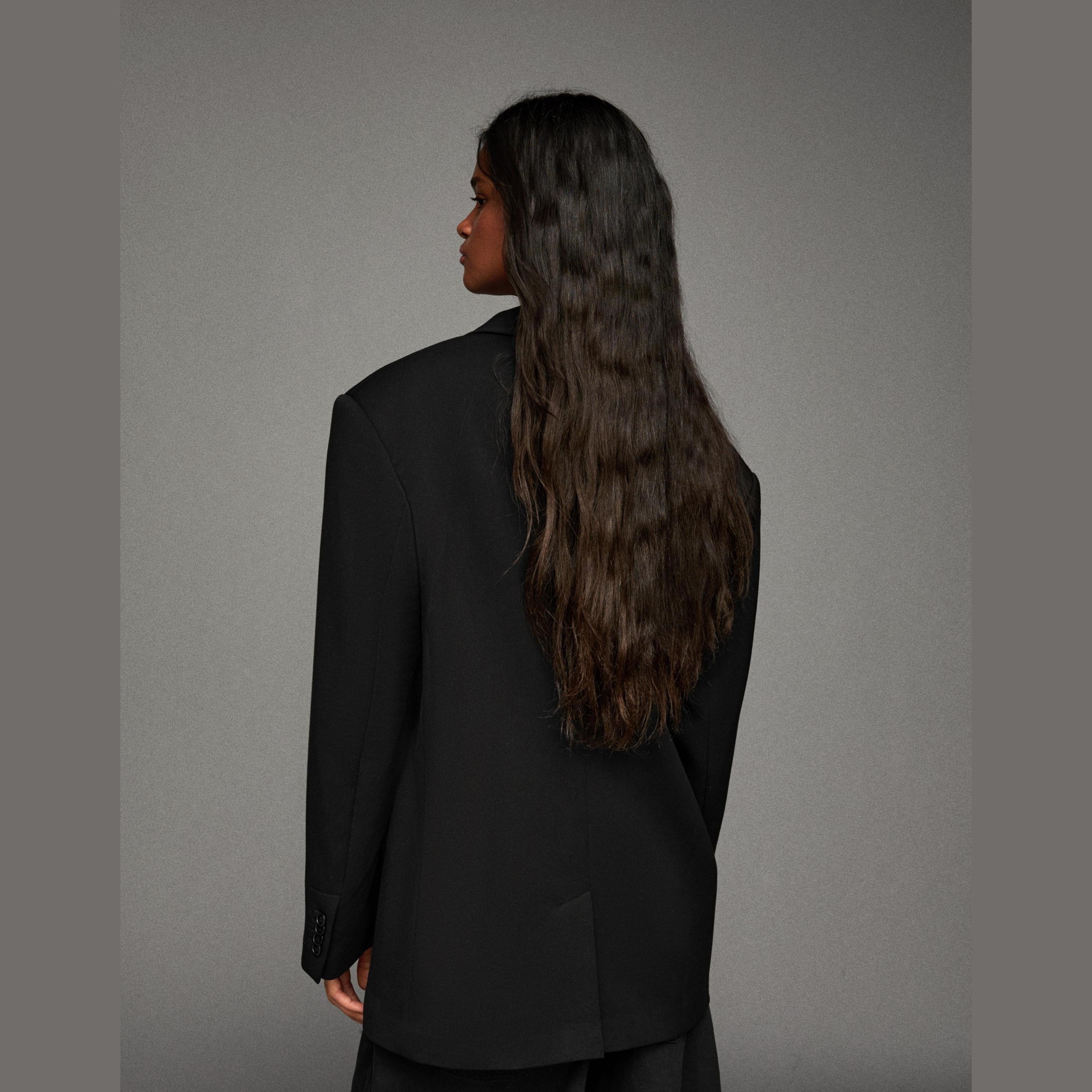 - التفاصيل: أكتاف مبطنة، جيوب جانبية، خياطة بارزة، تصميم مزدوج الصدر