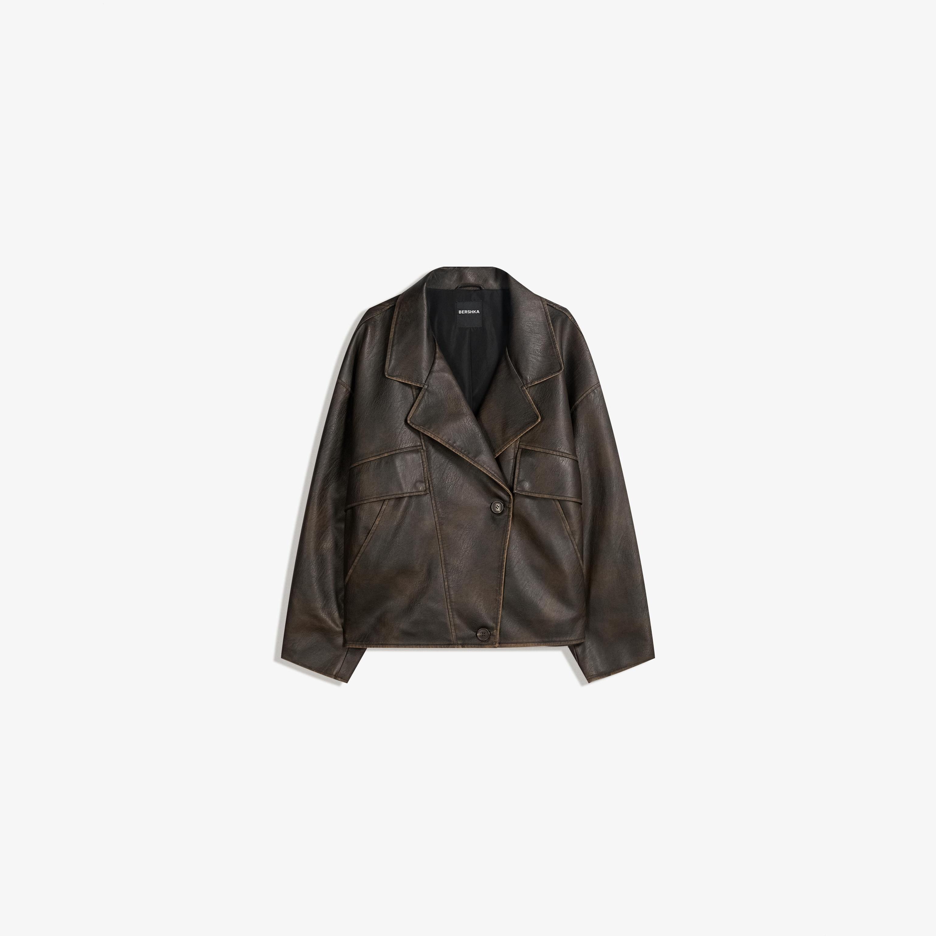 Bershka – جاكيت بتأثير الجلد بياقة كلاسيكية بلون بني