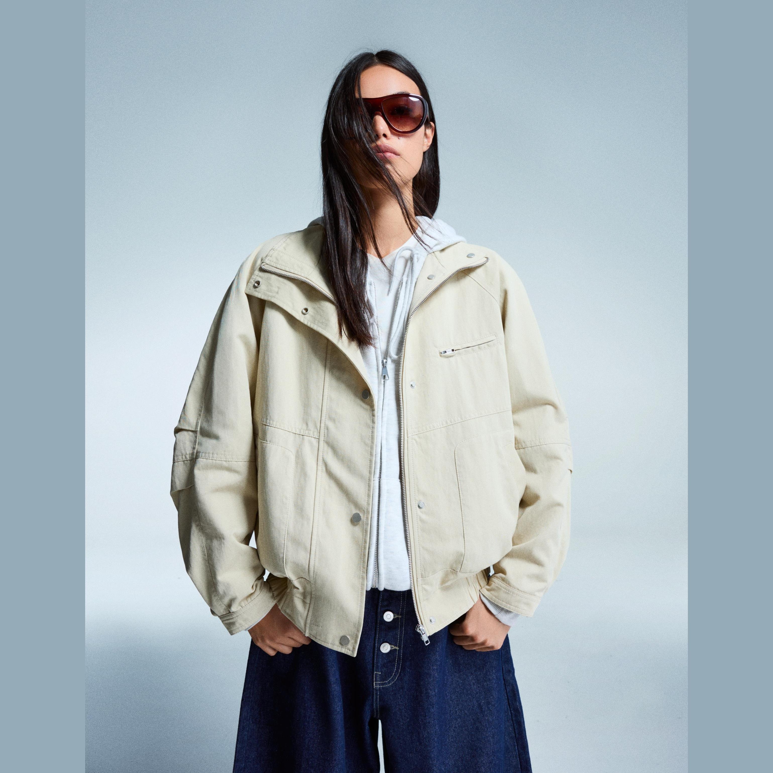 Bershka – جاكيت بسحاب أمامي بلون كريمي