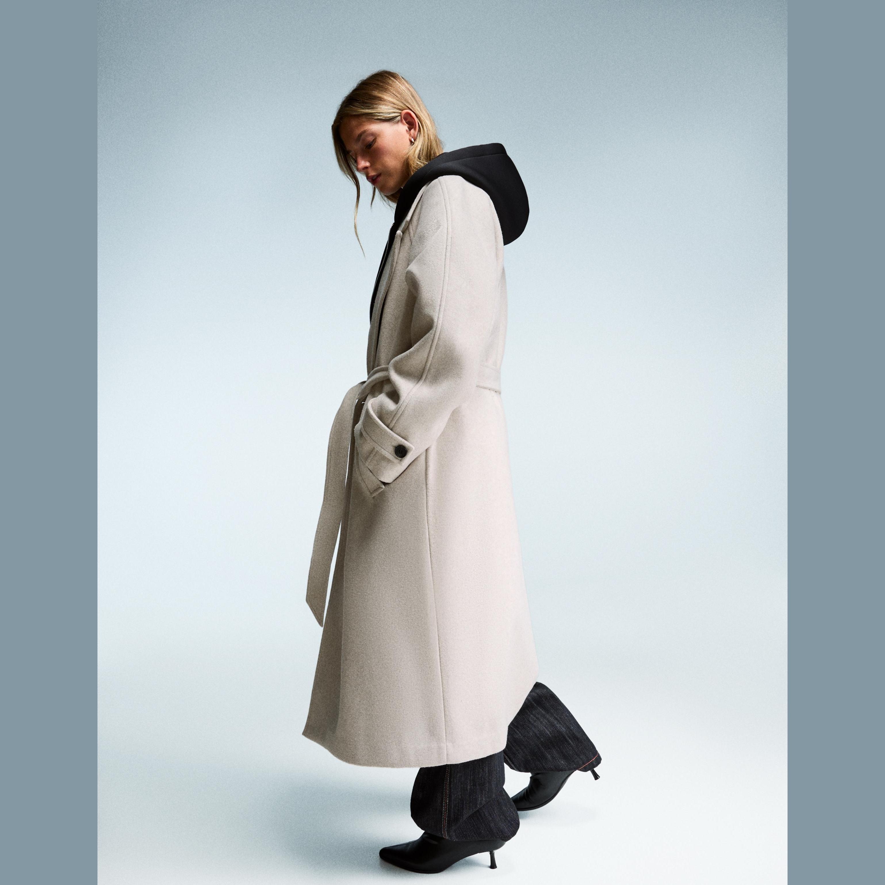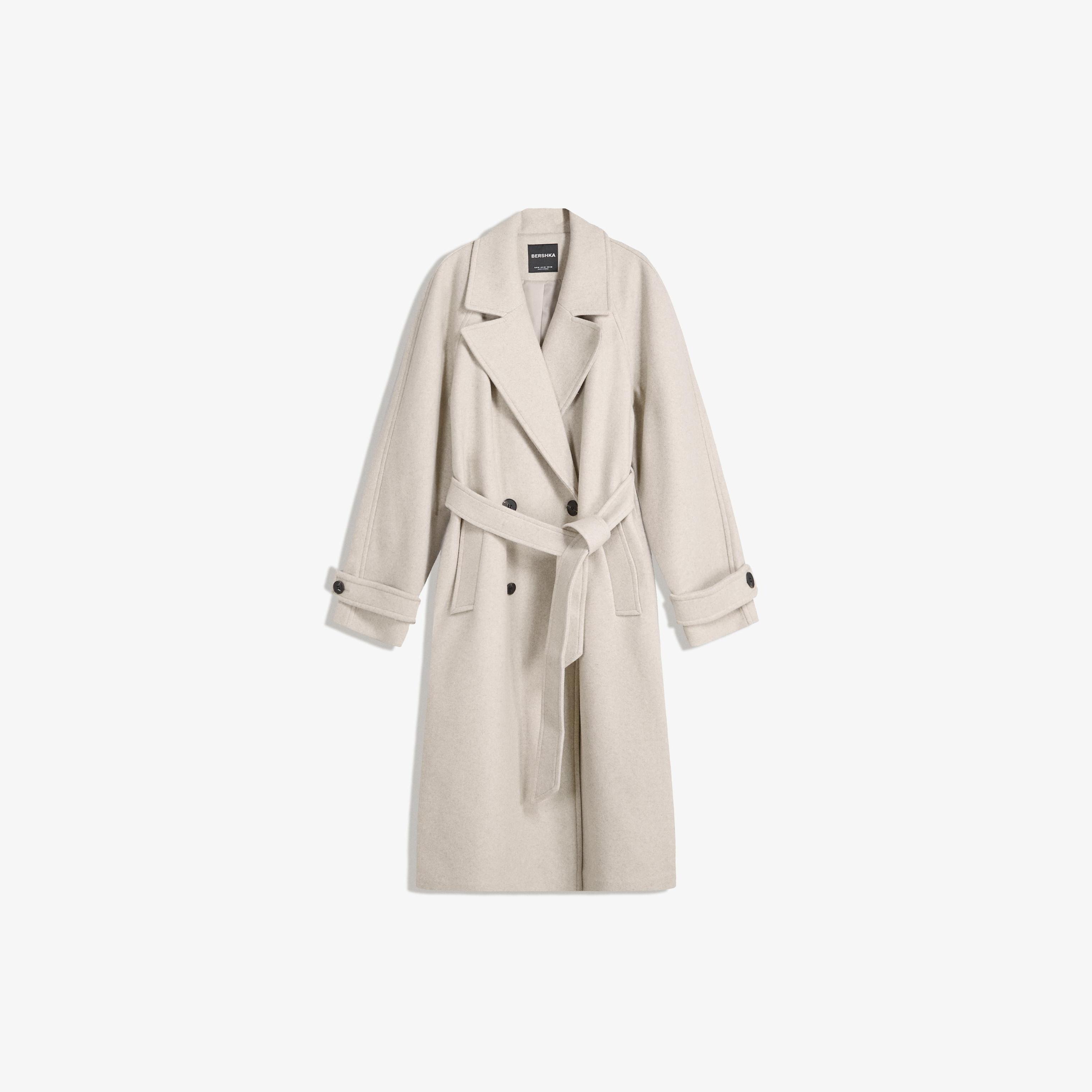 Bershka – ترنش كوت ناعم بحزام بلون رملي