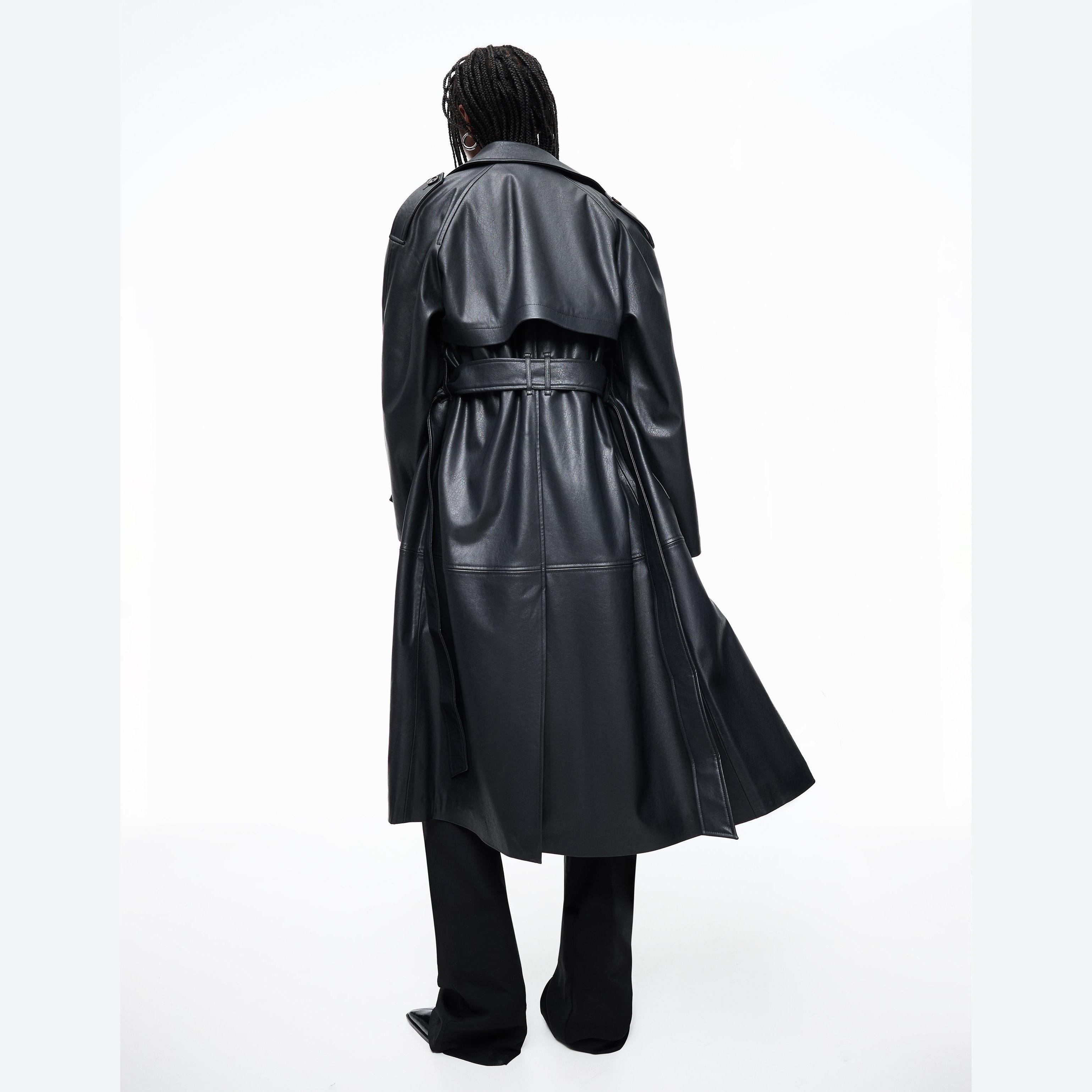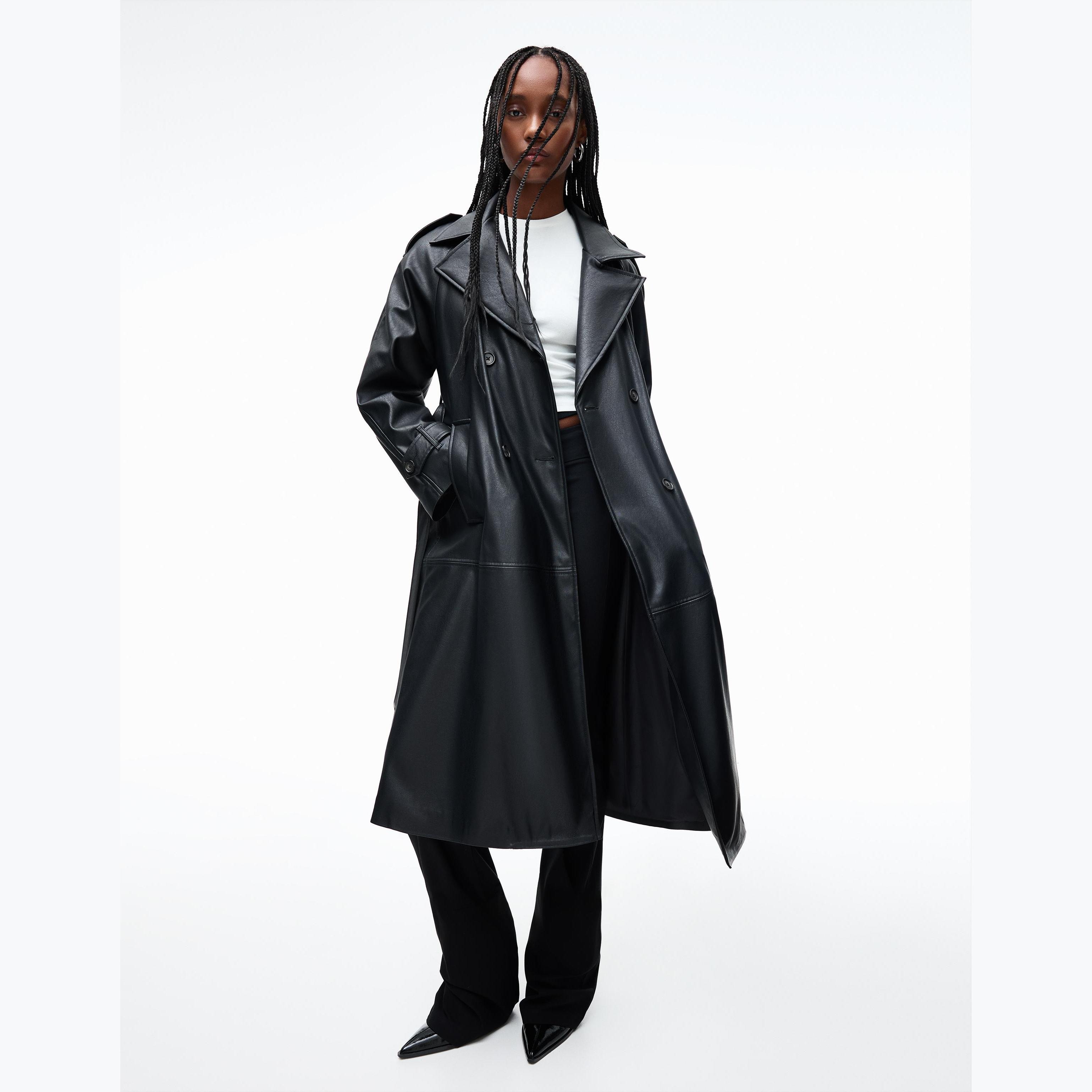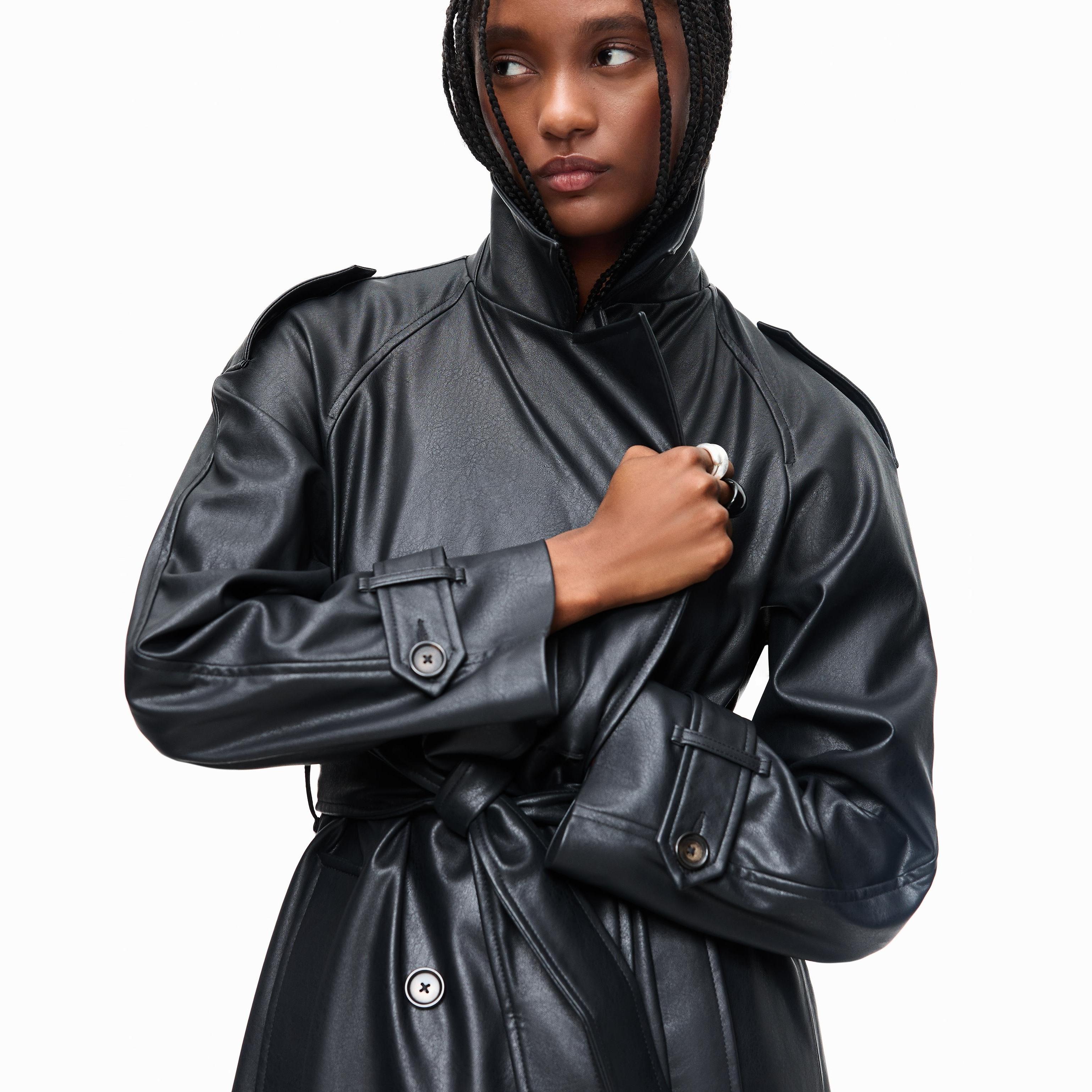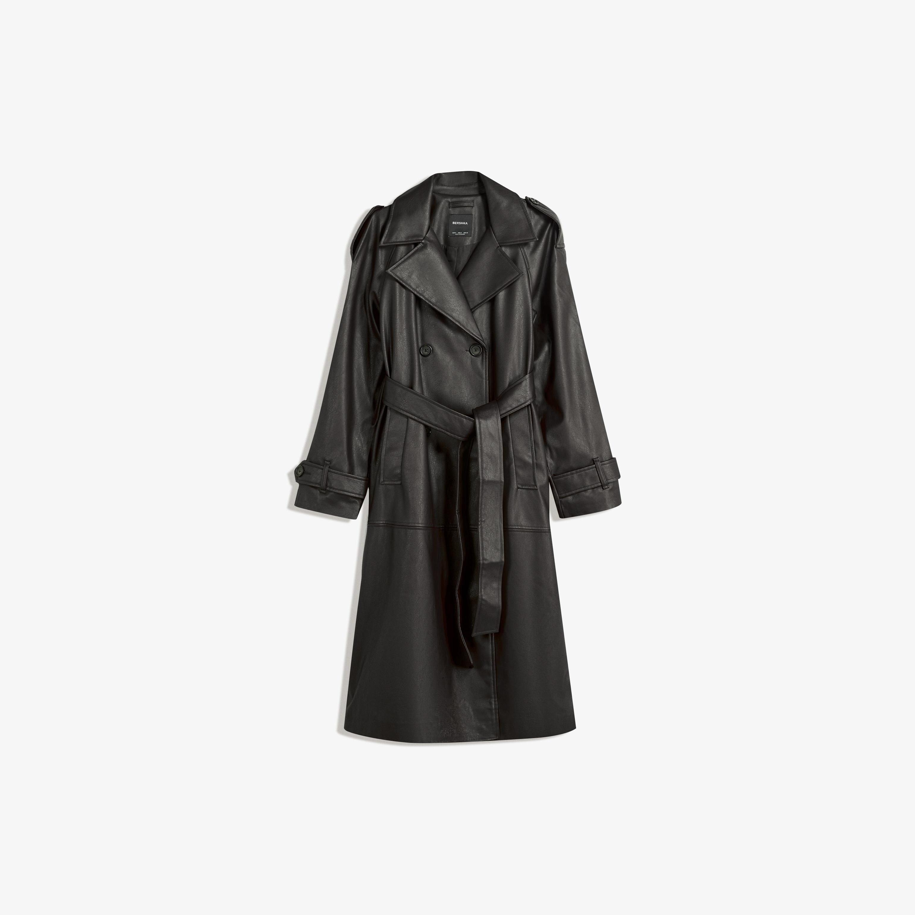 Bershka – ترنش كوت من الجلد الصناعي بلون أسود