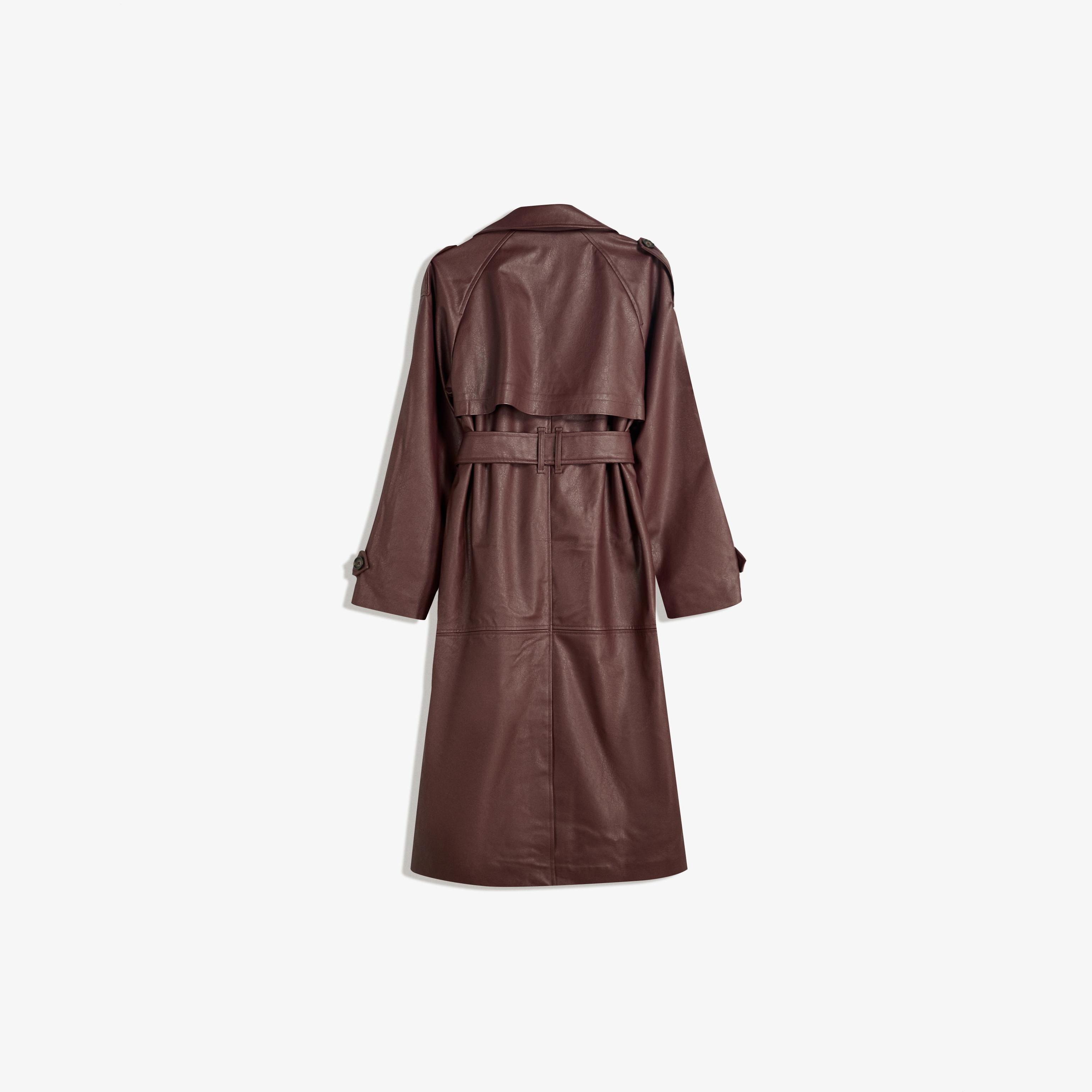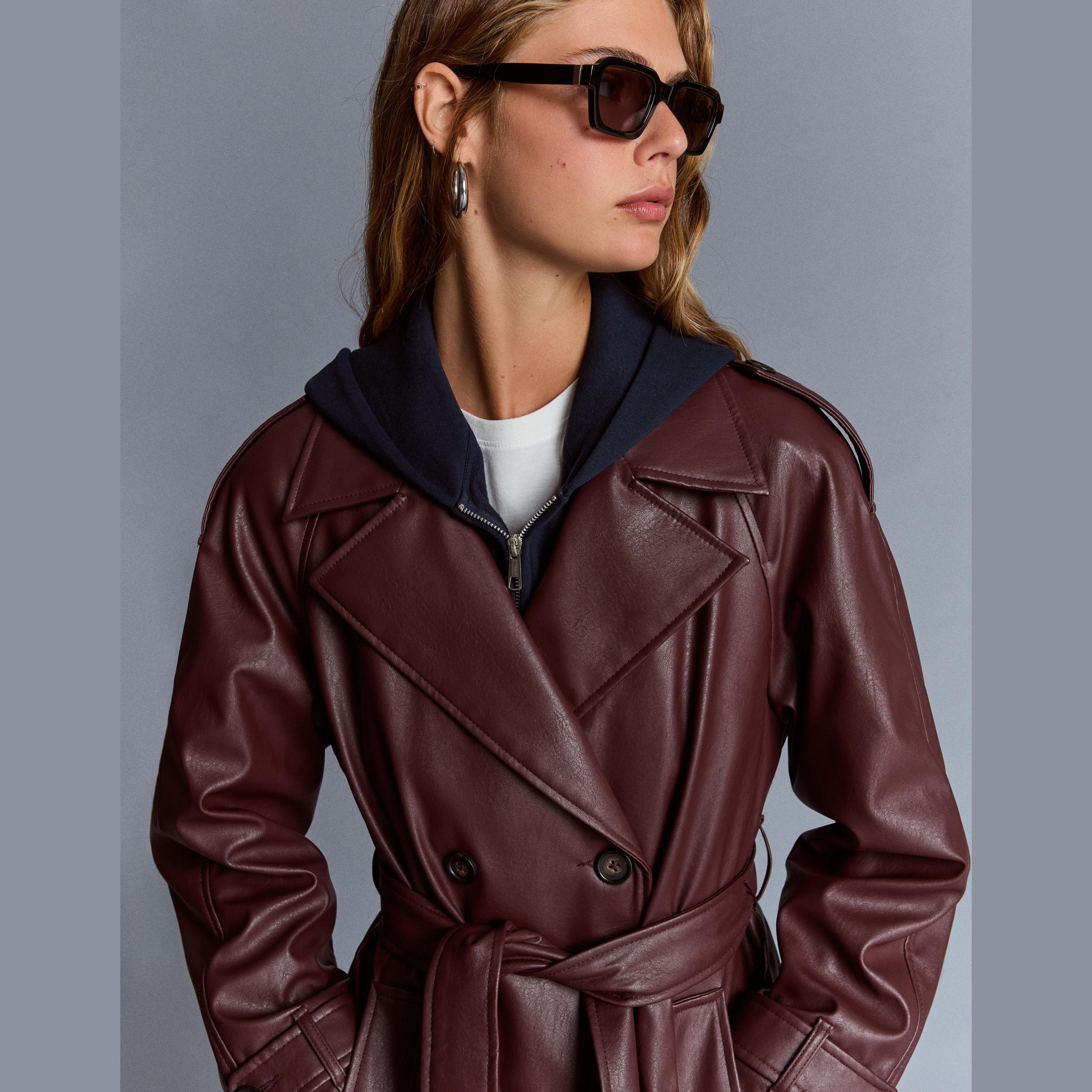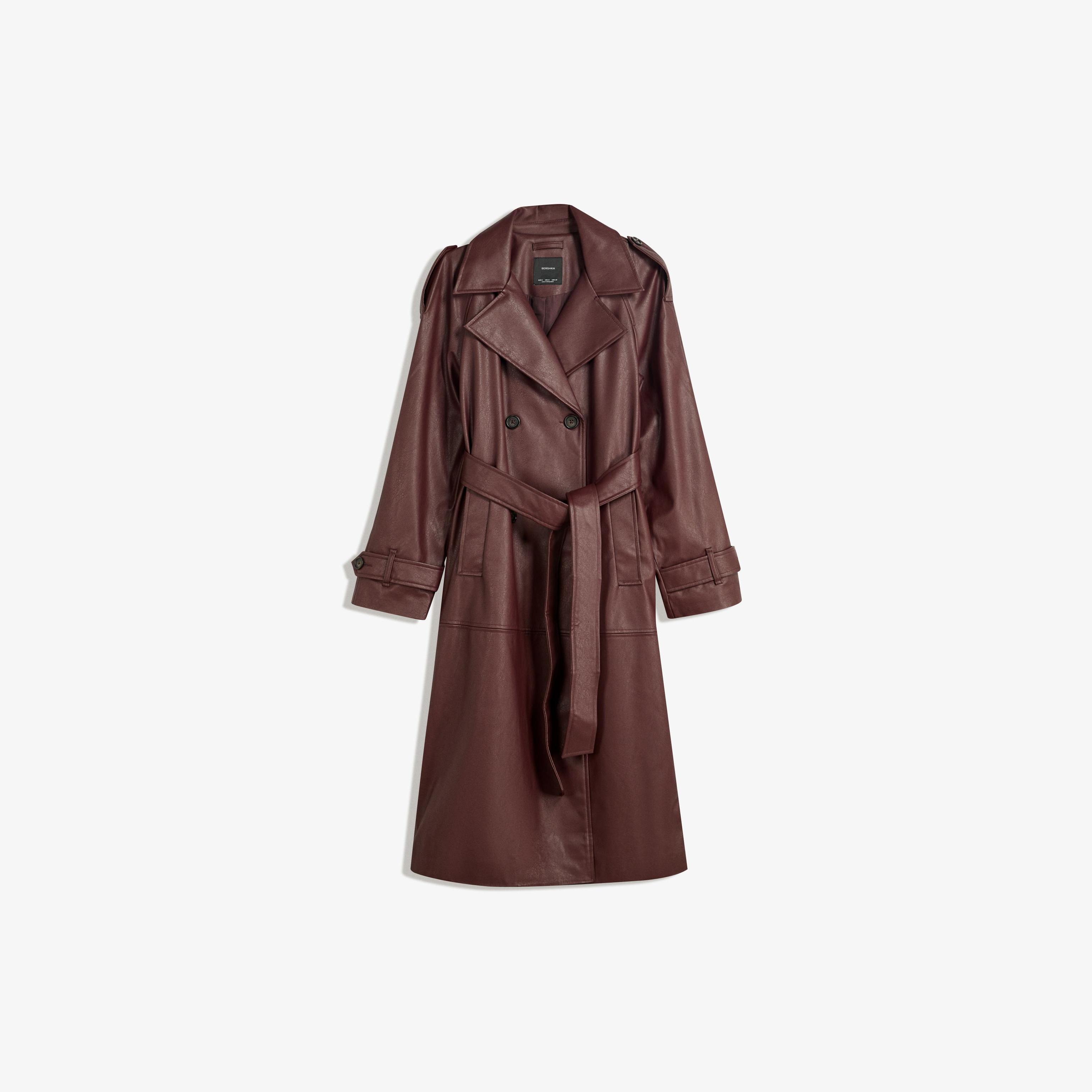 Bershka – ترنش كوت من الجلد الصناعي بلون نبيذي