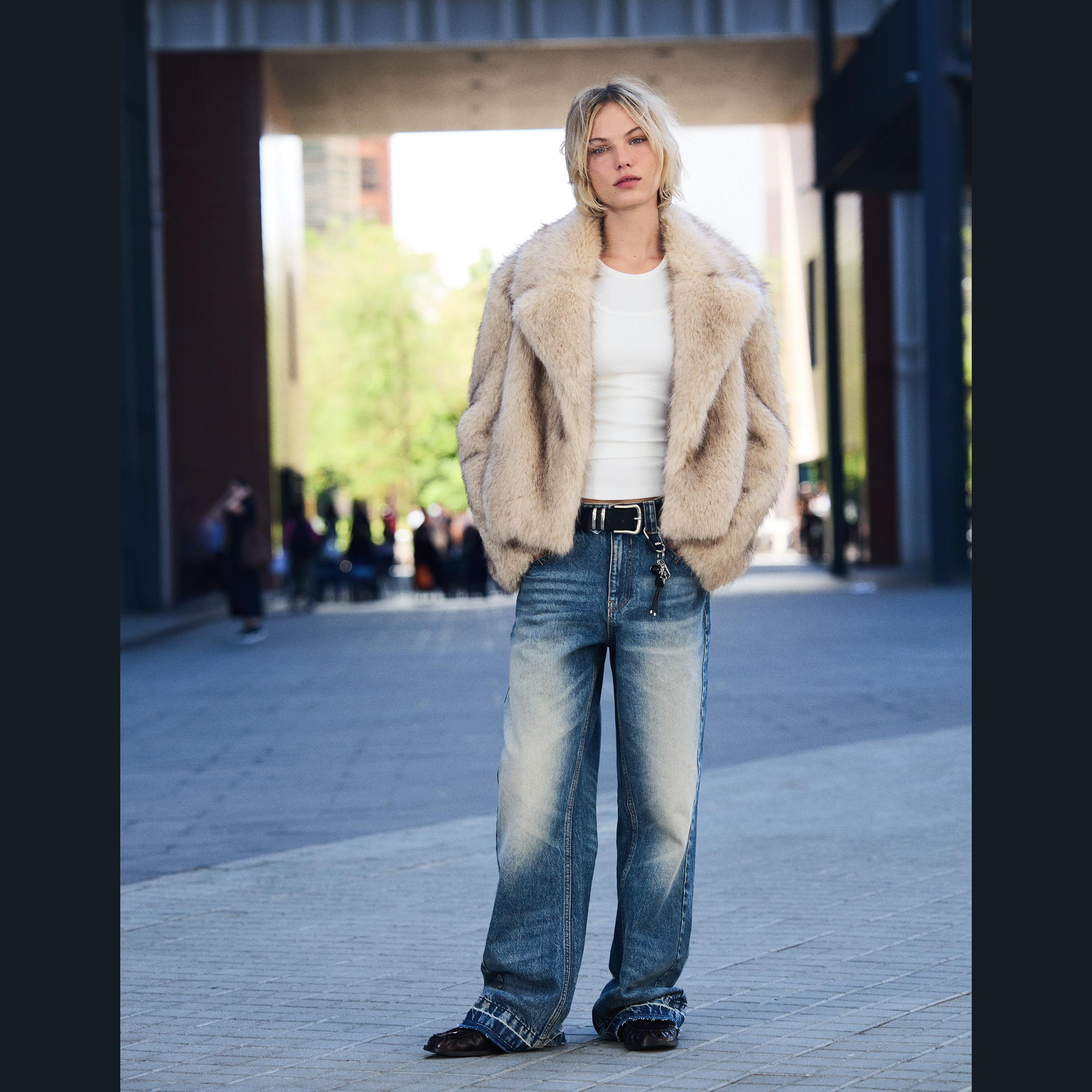 دلّلي نفسك بإطلالة ناعمة وفاخرة مع هذا الجاكيت المصنوع من الفرو الصناعي من Bershka. تصميمه القصير ولمسته المخملية يجمعان بين الدفء والأناقة، ليمنحك مظهرًا عصريًا مثاليًا لأيام الشتاء الباردة.