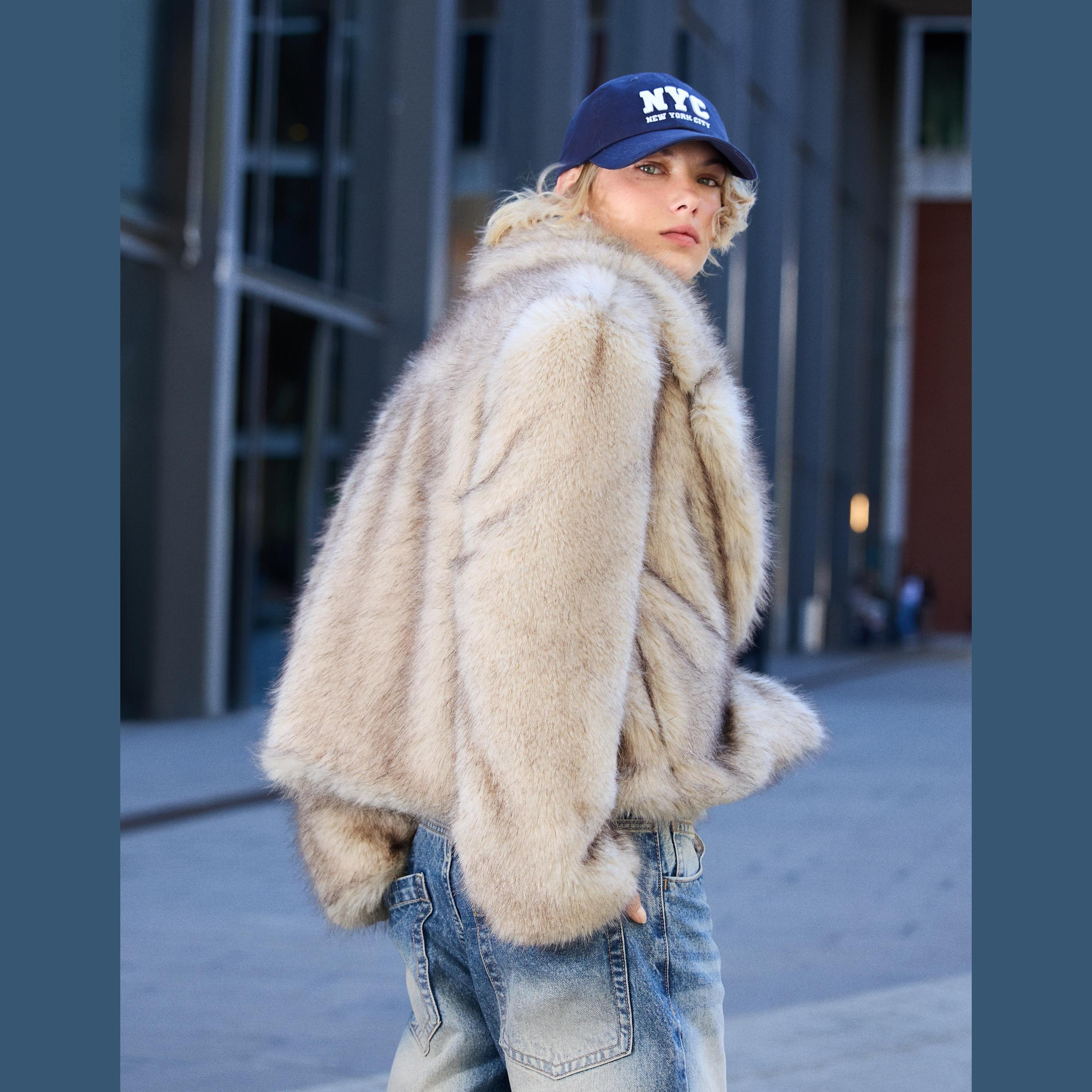 Bershka – جاكيت فرو صناعي بلون كريمي