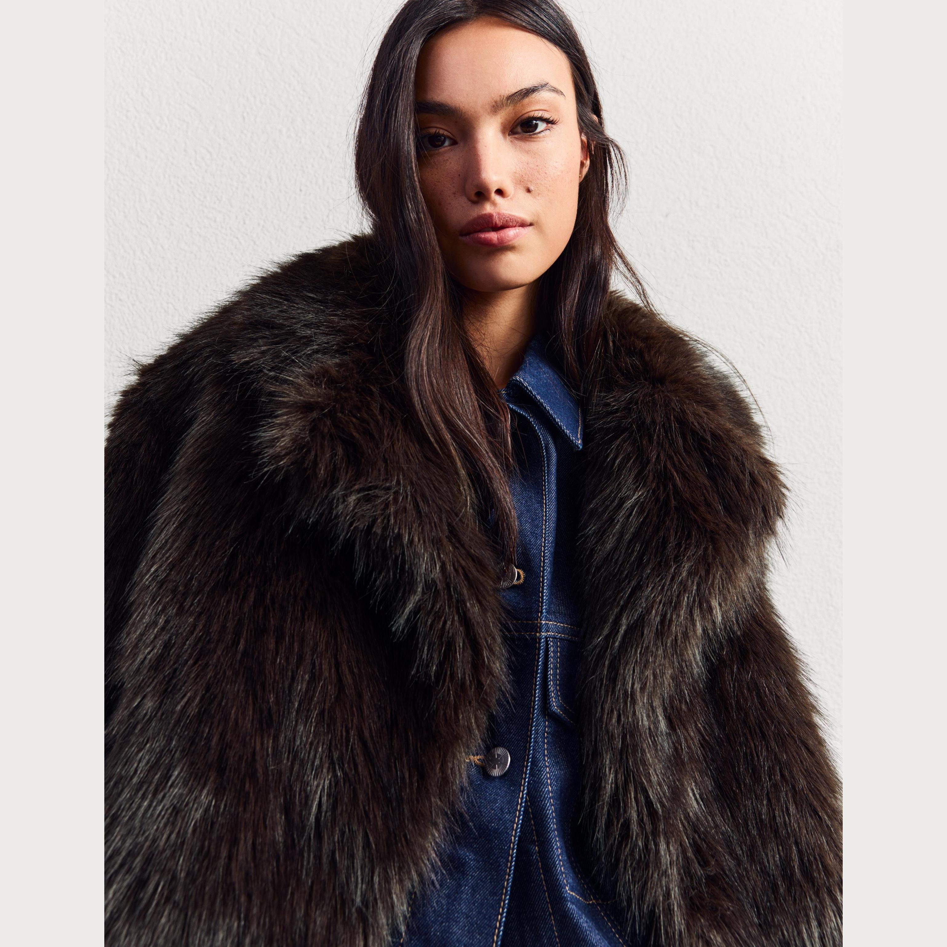 دلّلي إطلالتك الشتوية بلمسة دافئة وفاخرة مع هذا الجاكيت المصنوع من الفرو الصناعي من Bershka. تصميمه القصير ولمسته المخملية يجمعان بين الراحة والأناقة، ليمنحك مظهرًا عصريًا مثاليًا لأيام الشتاء الباردة.