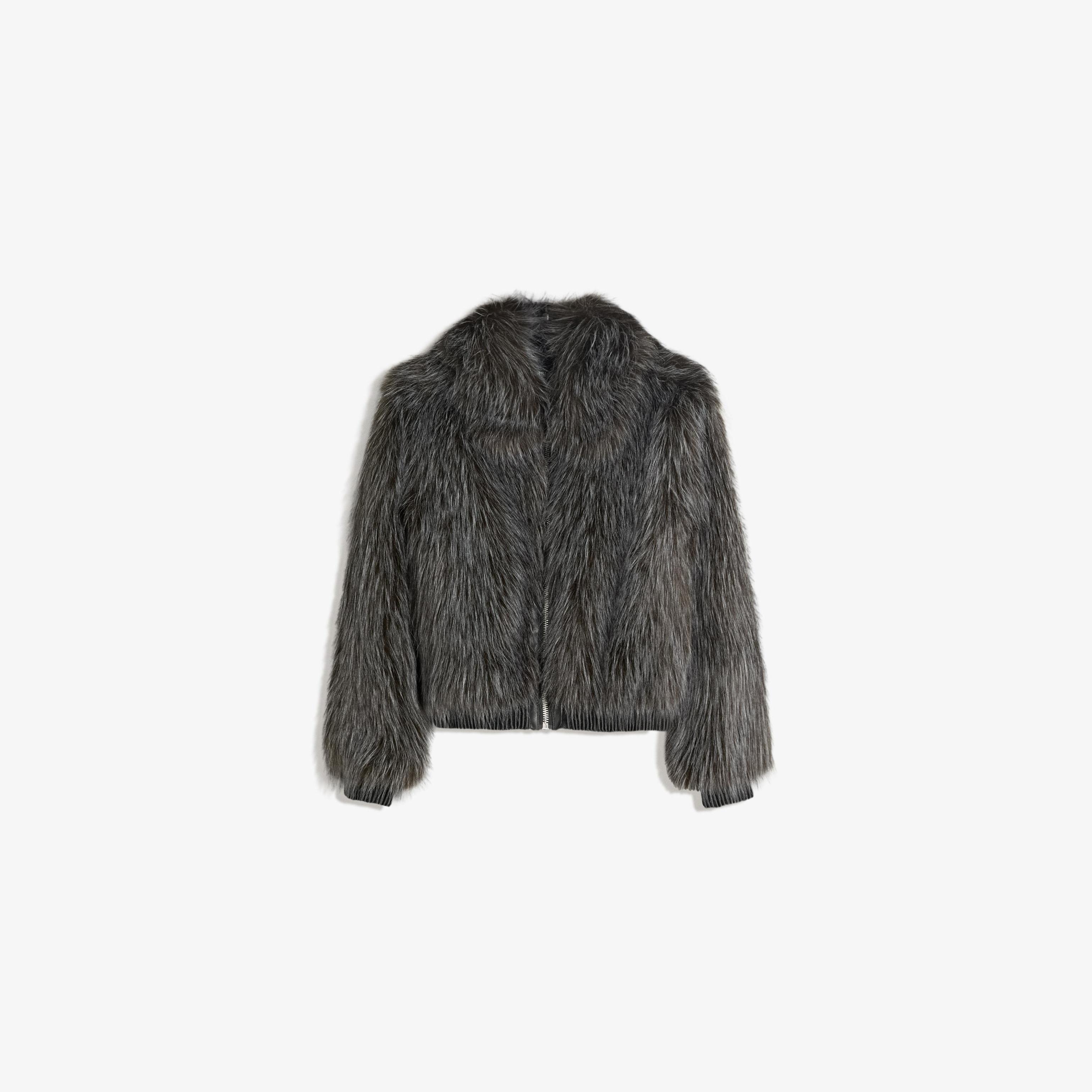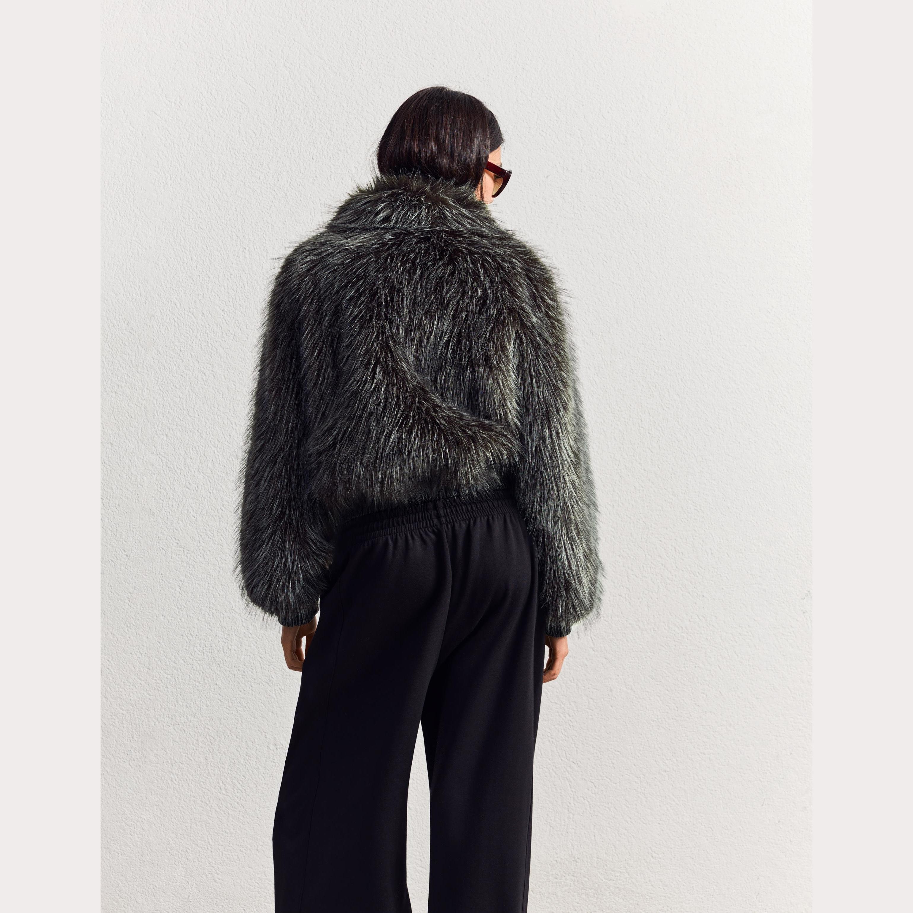 Bershka – جاكيت فرو صناعي بسحاب بلون أسود