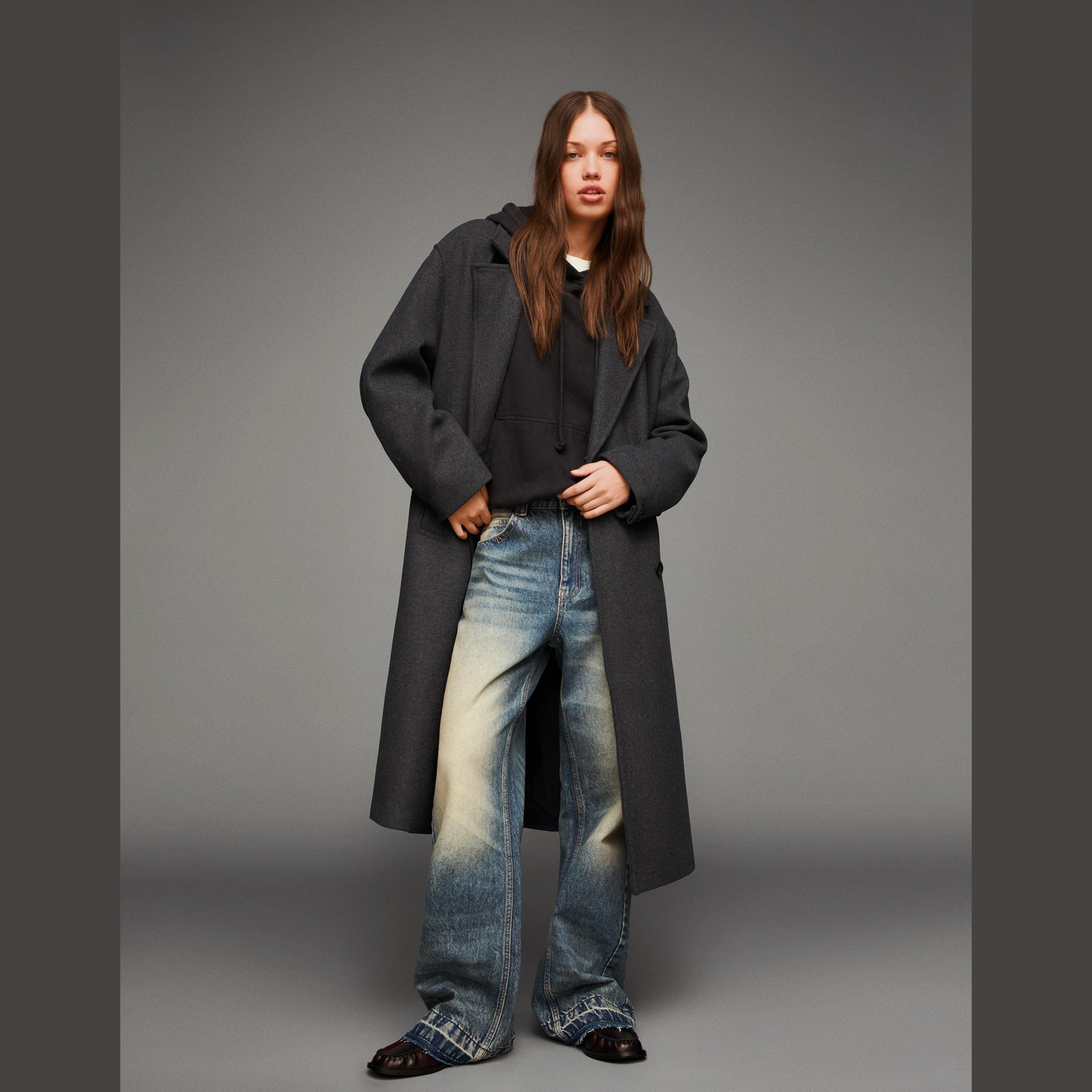 تميّزي بإطلالة راقية وعصرية مع هذا المعطف الطويل من Bershka. تصميمه الواسع والأكتاف المنخفضة يمنحانك مظهرًا مريحًا وانسيابيًا، مثاليًا لأيام الشتاء الباردة بأسلوب أنيق ومتوازن.