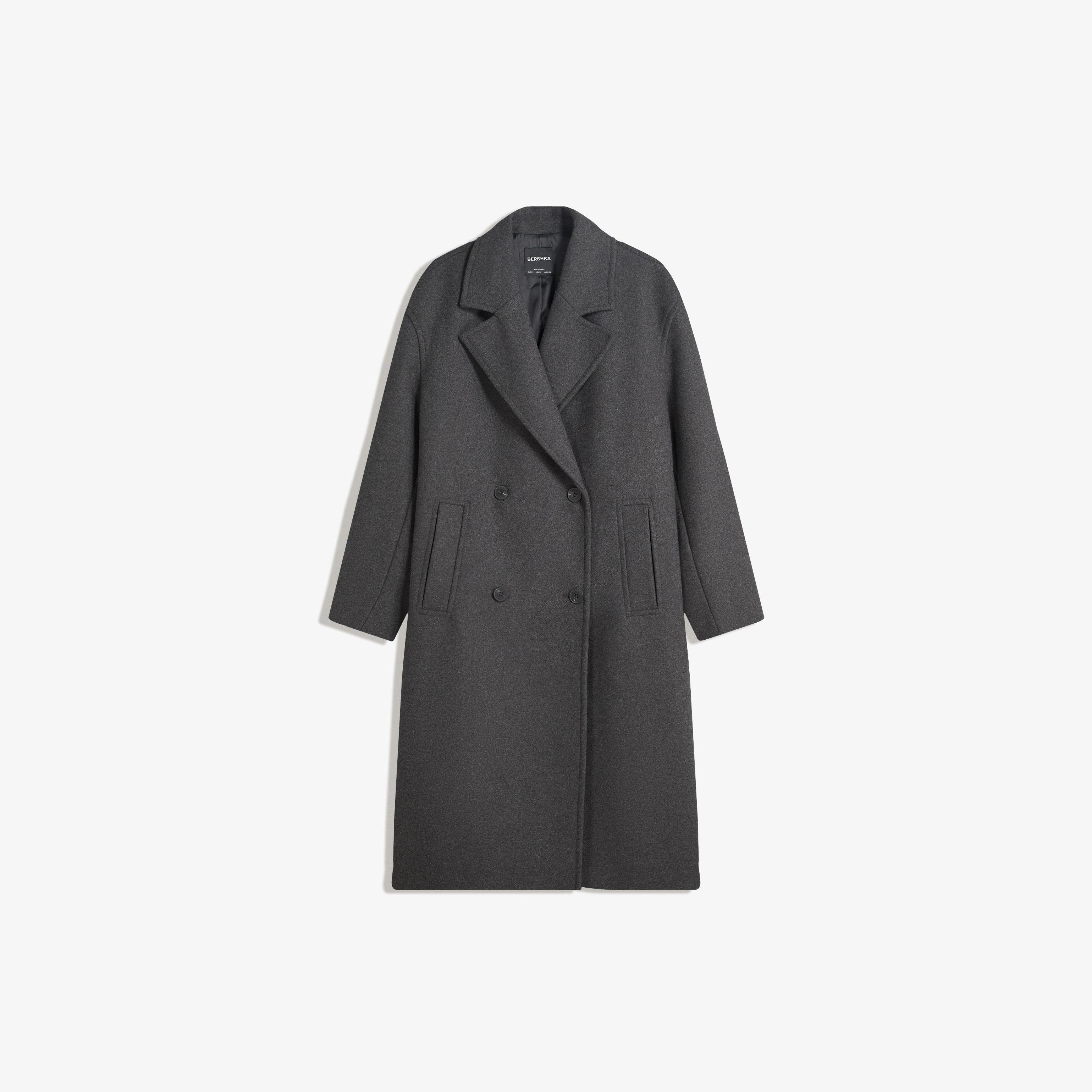 Bershka – معطف طويل بأكتاف منخفضة بلون رمادي داكن