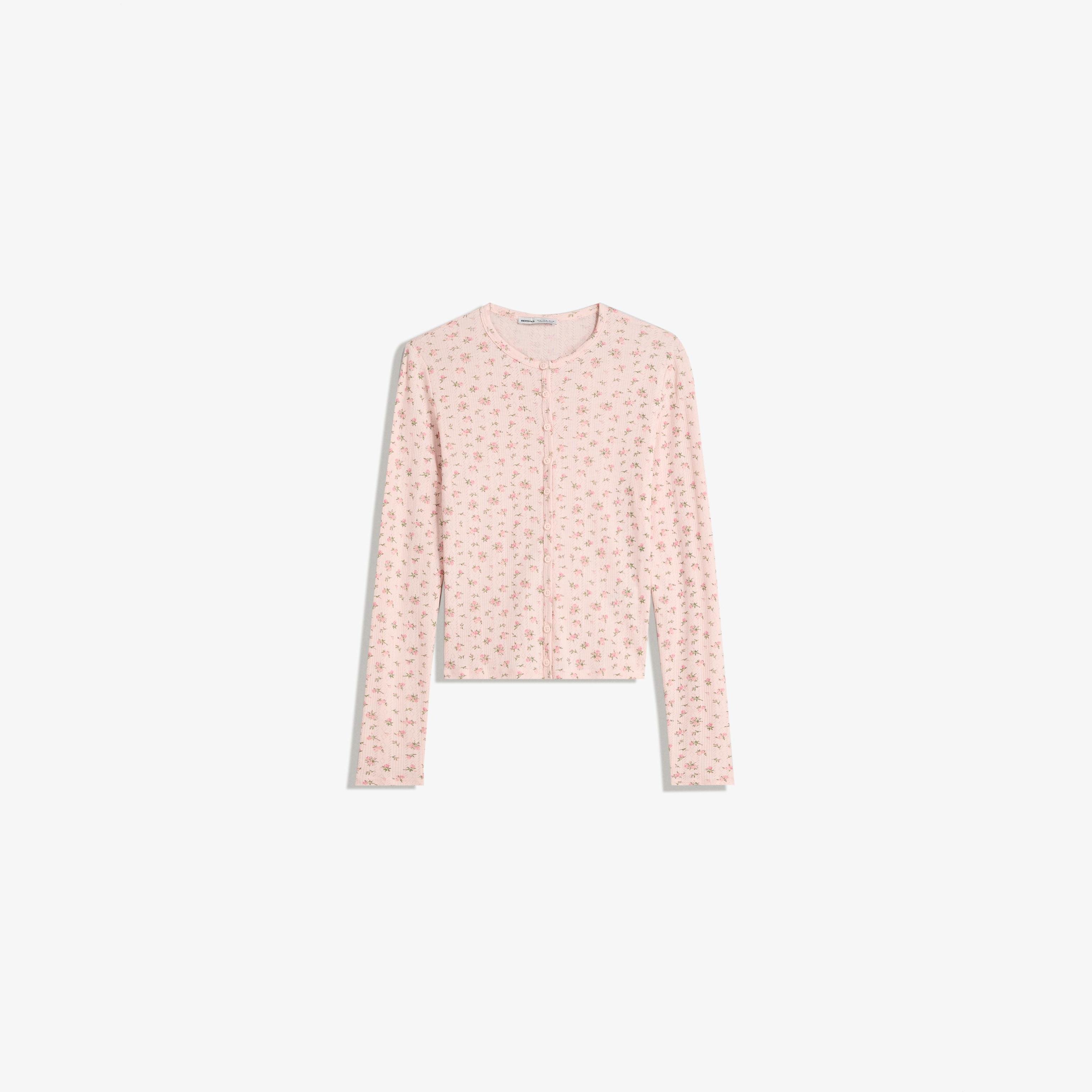 Bershka – كارديغان بنقشة Pointelle بلون وردي