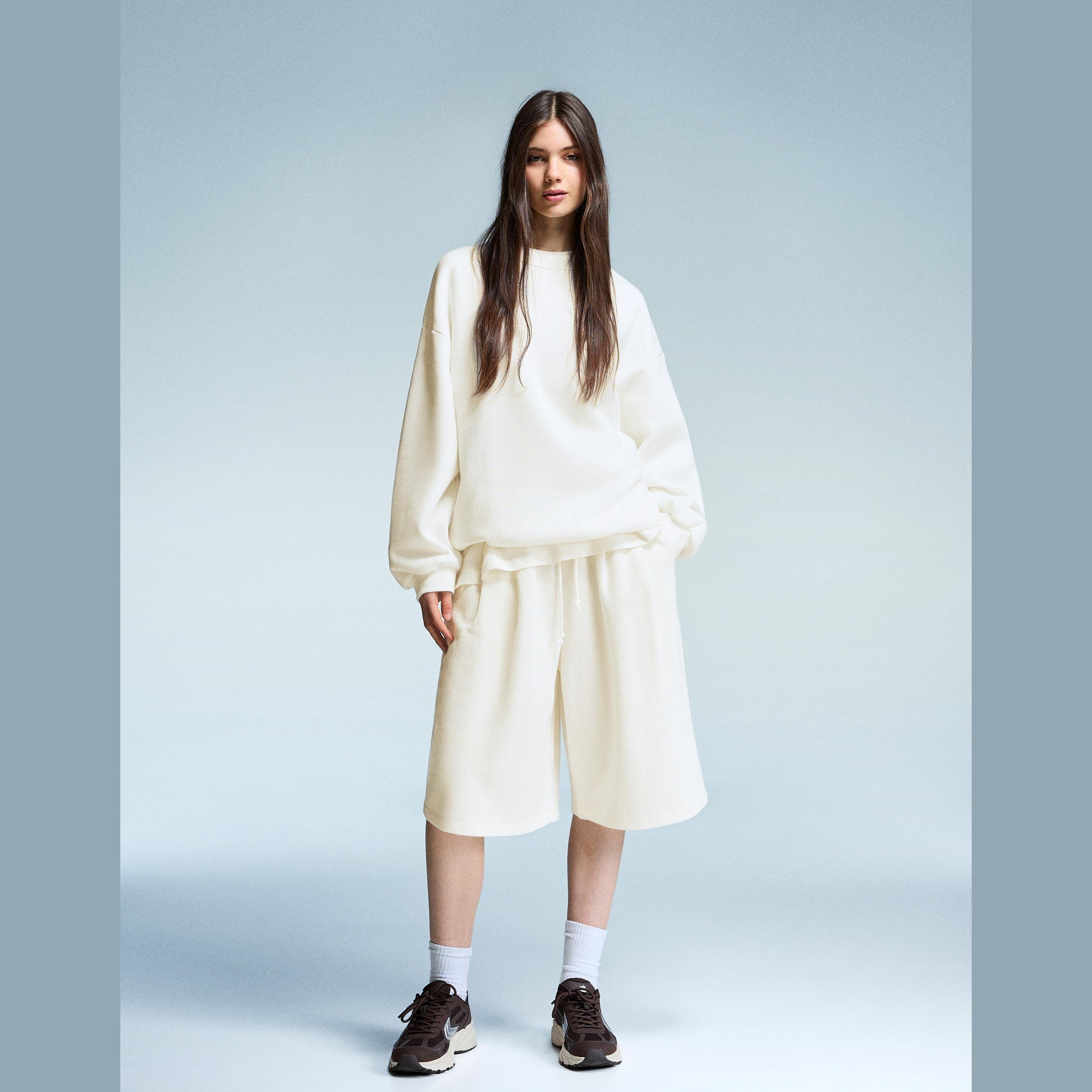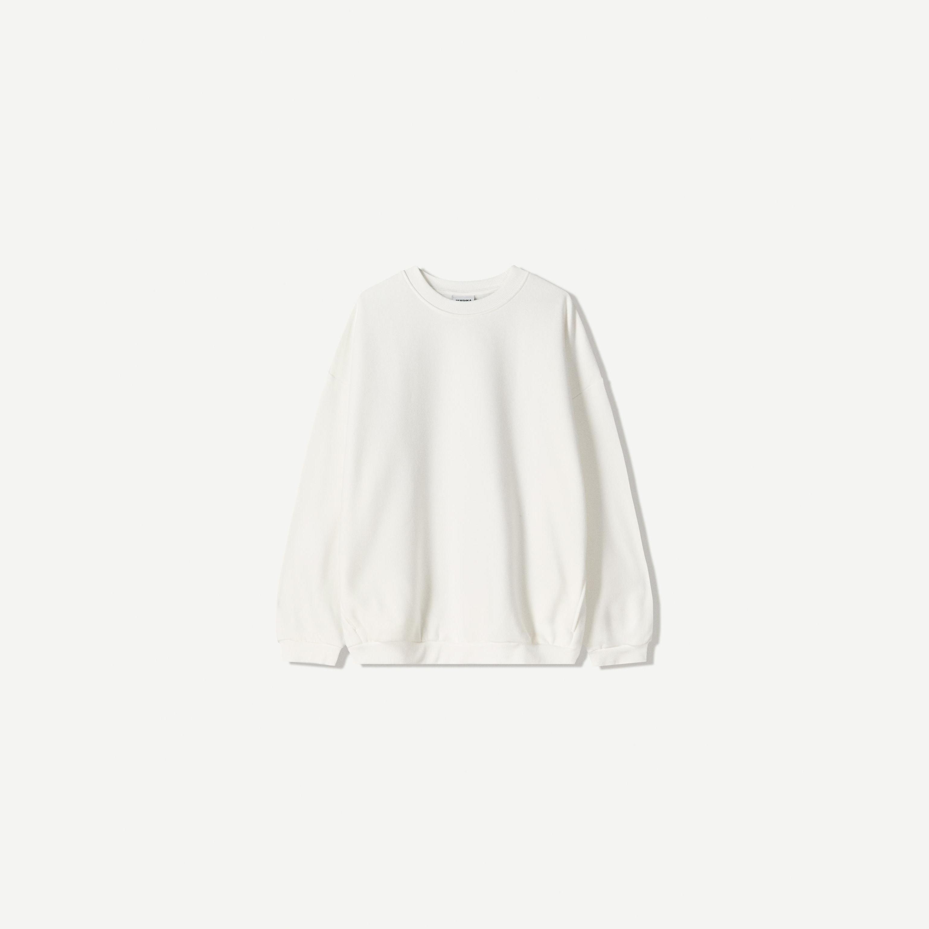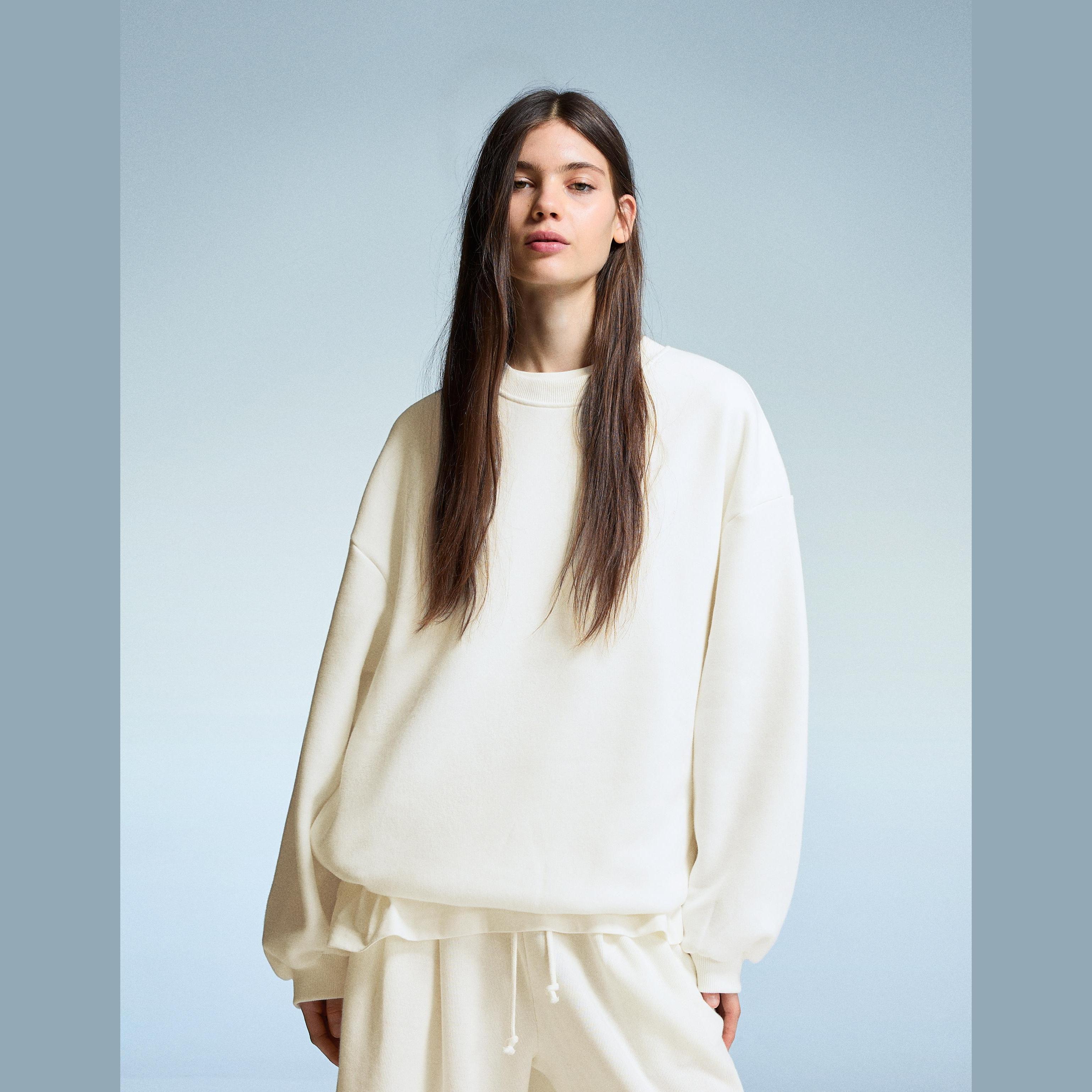 تميّز بإطلالة كاجوال مريحة وعصرية مع هذا السويتشيرت الأوفرسايز من Bershka. تصميمه العملي ولونه الأوف وايت الهادئ يجمع بين الراحة والستايل، مثالي لأيام الخريف والشتاء أو للارتداء اليومي بأسلوب بسيط ومتناسق.