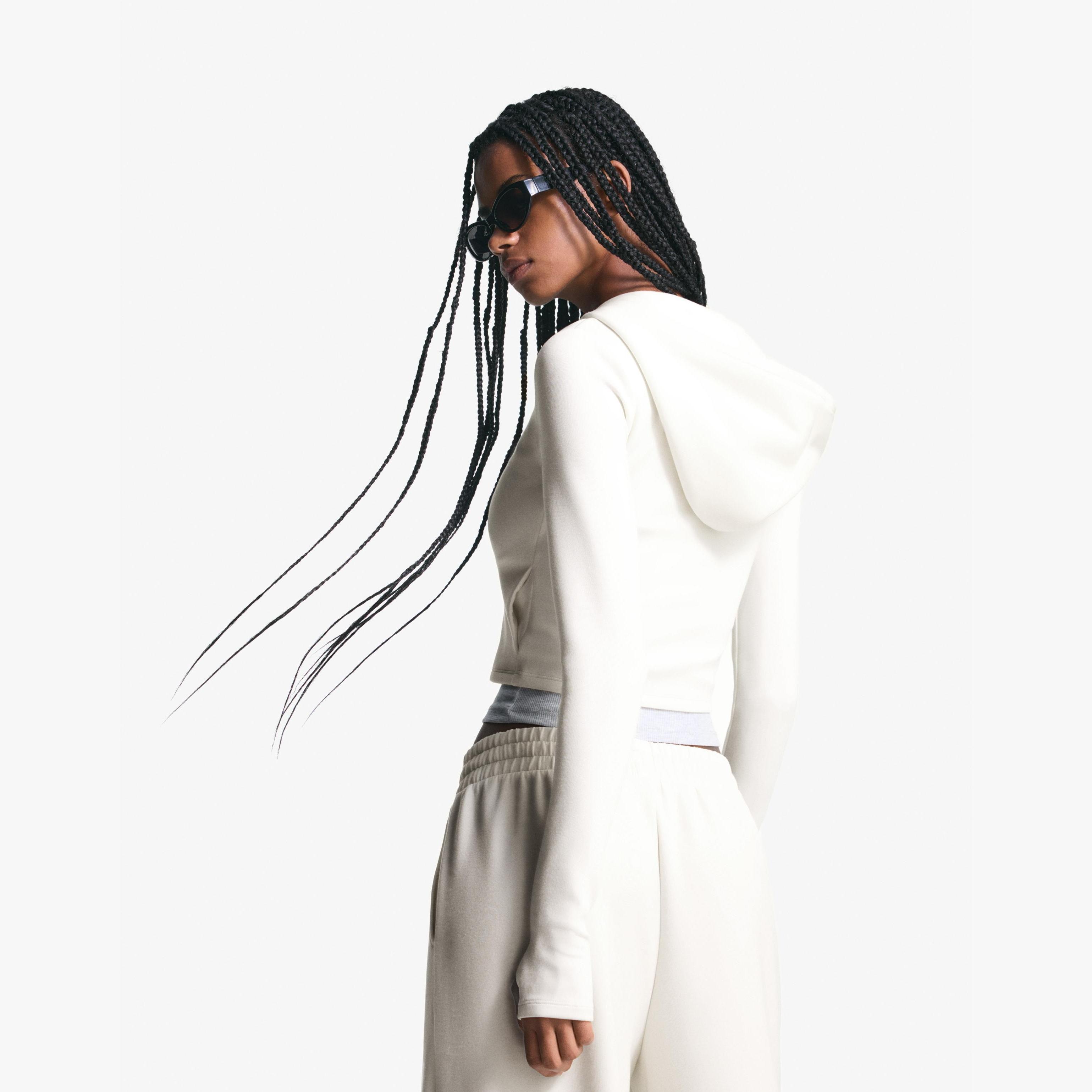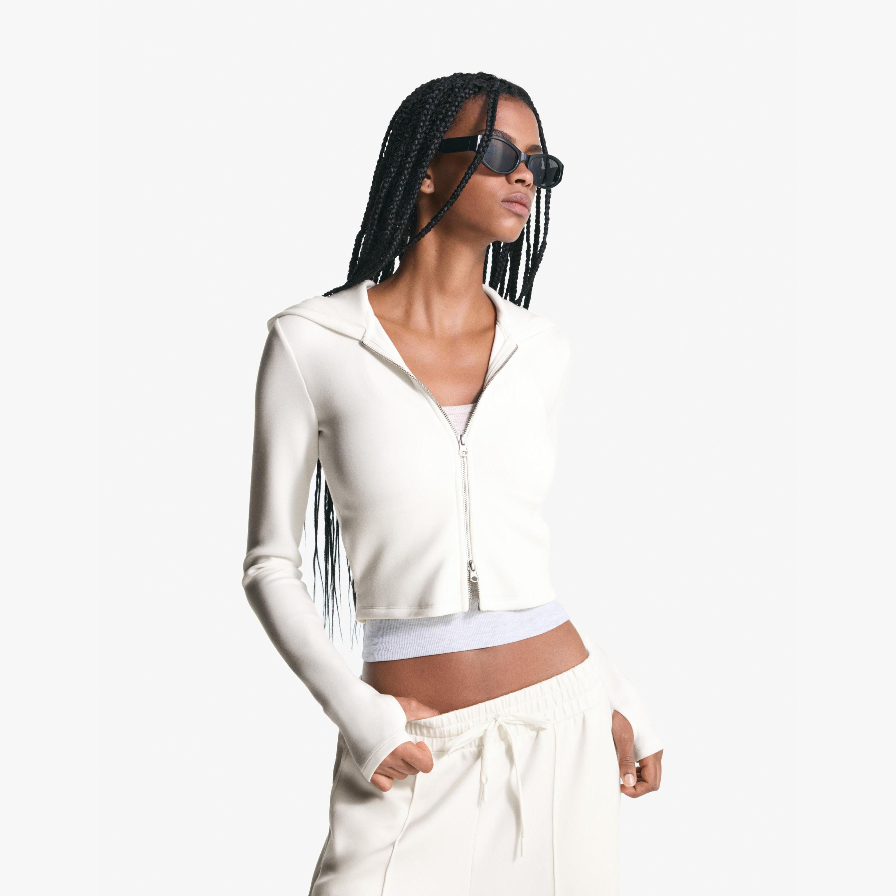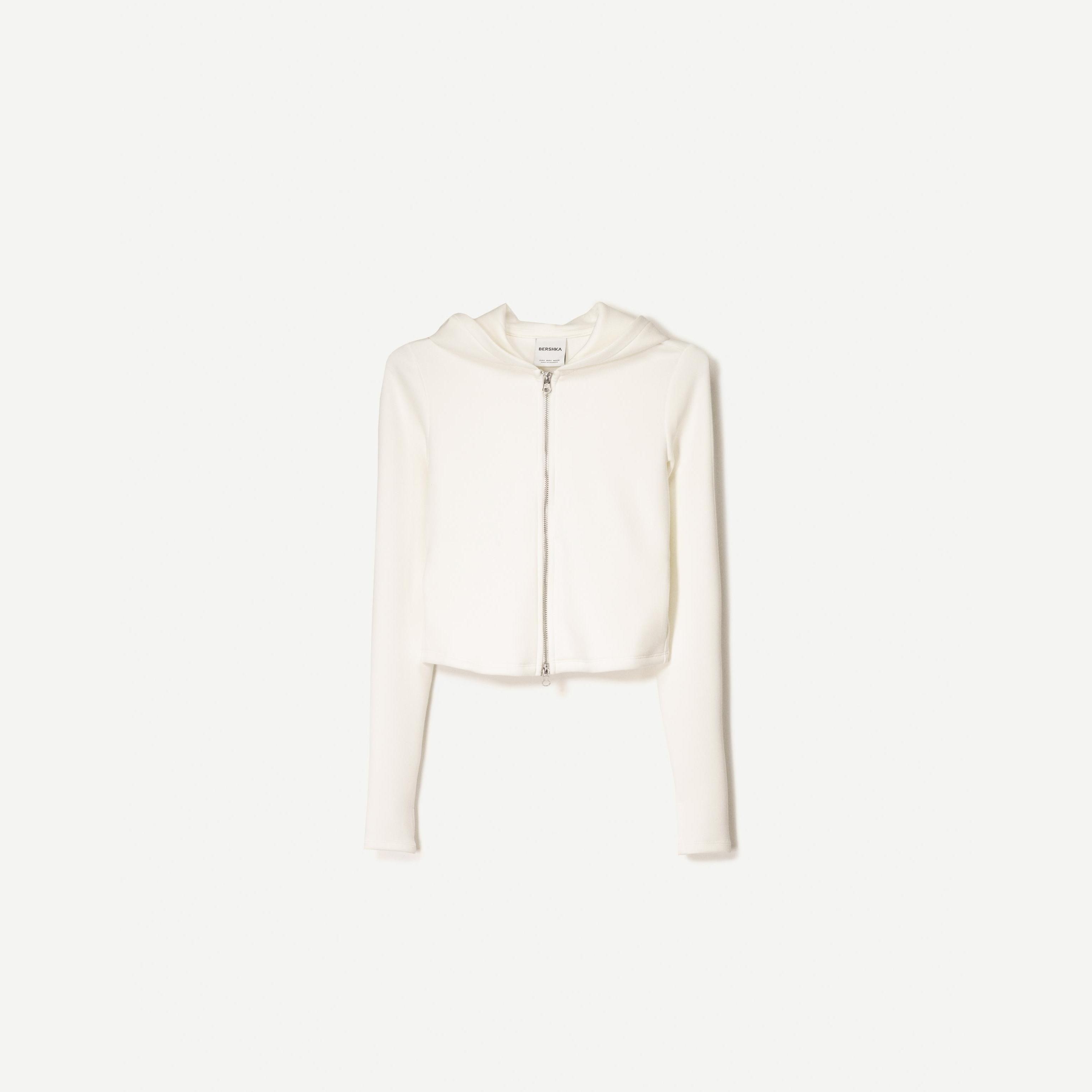 Bershka – هودي بسحاب بخليط Modal ناعم من BSK Teen بلون كريمي