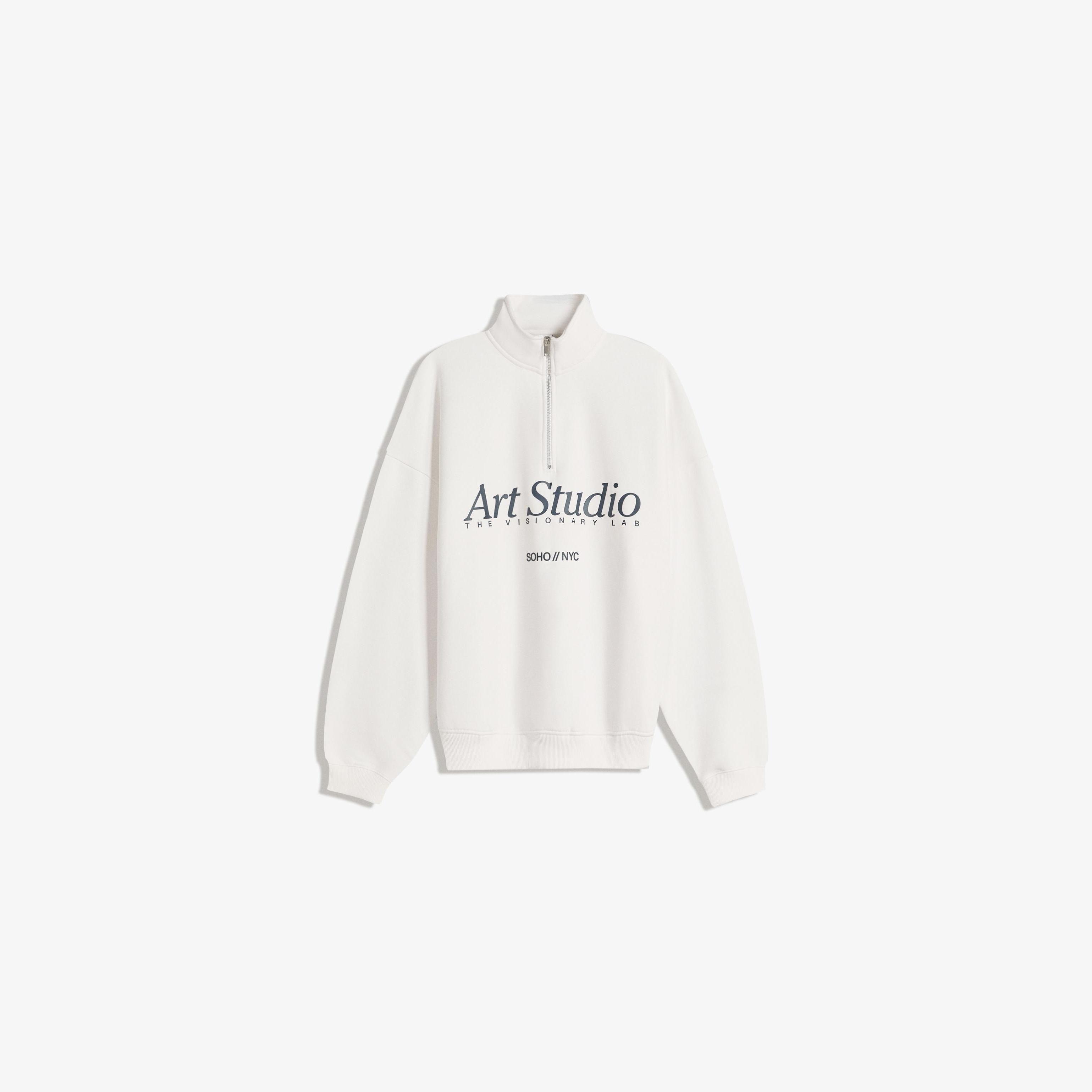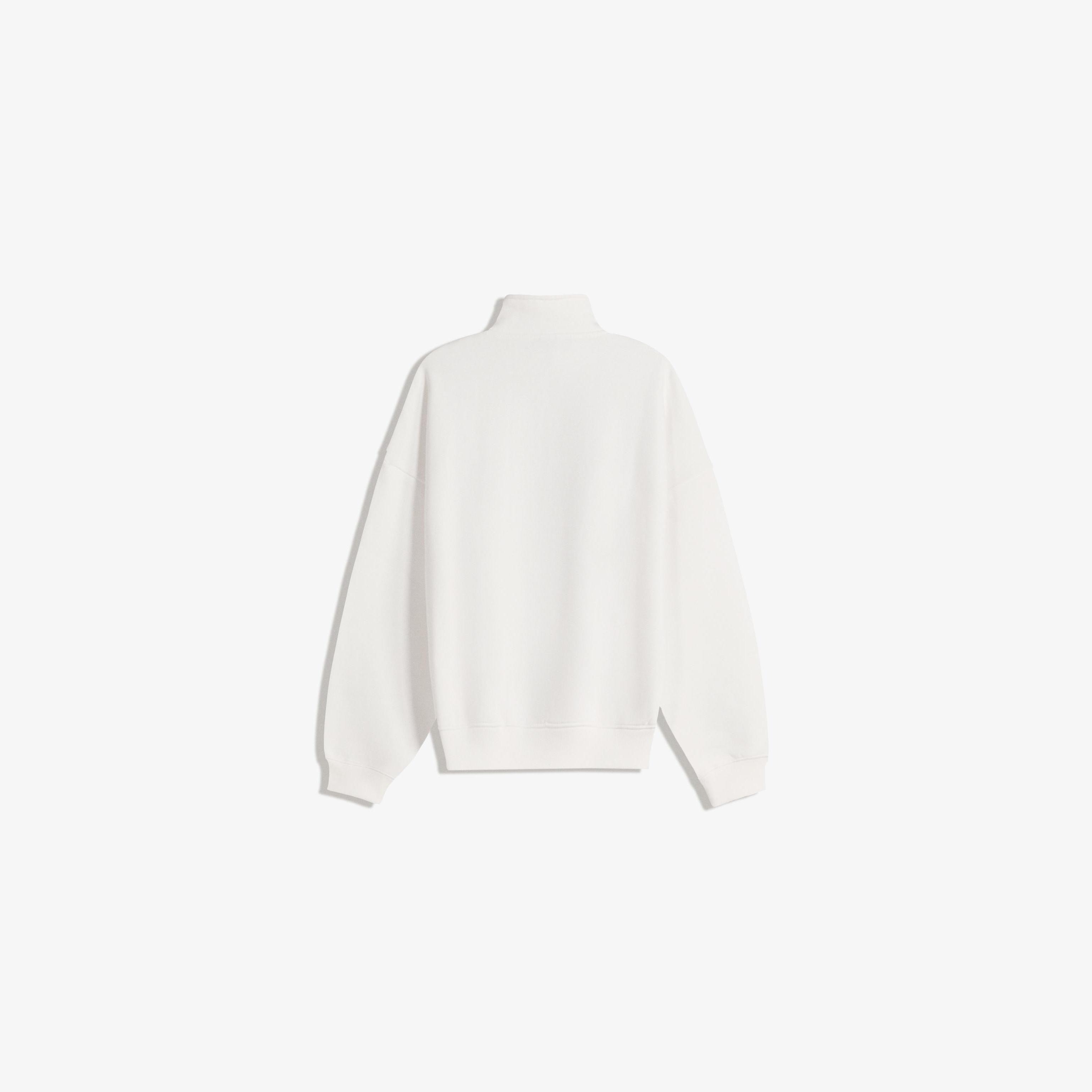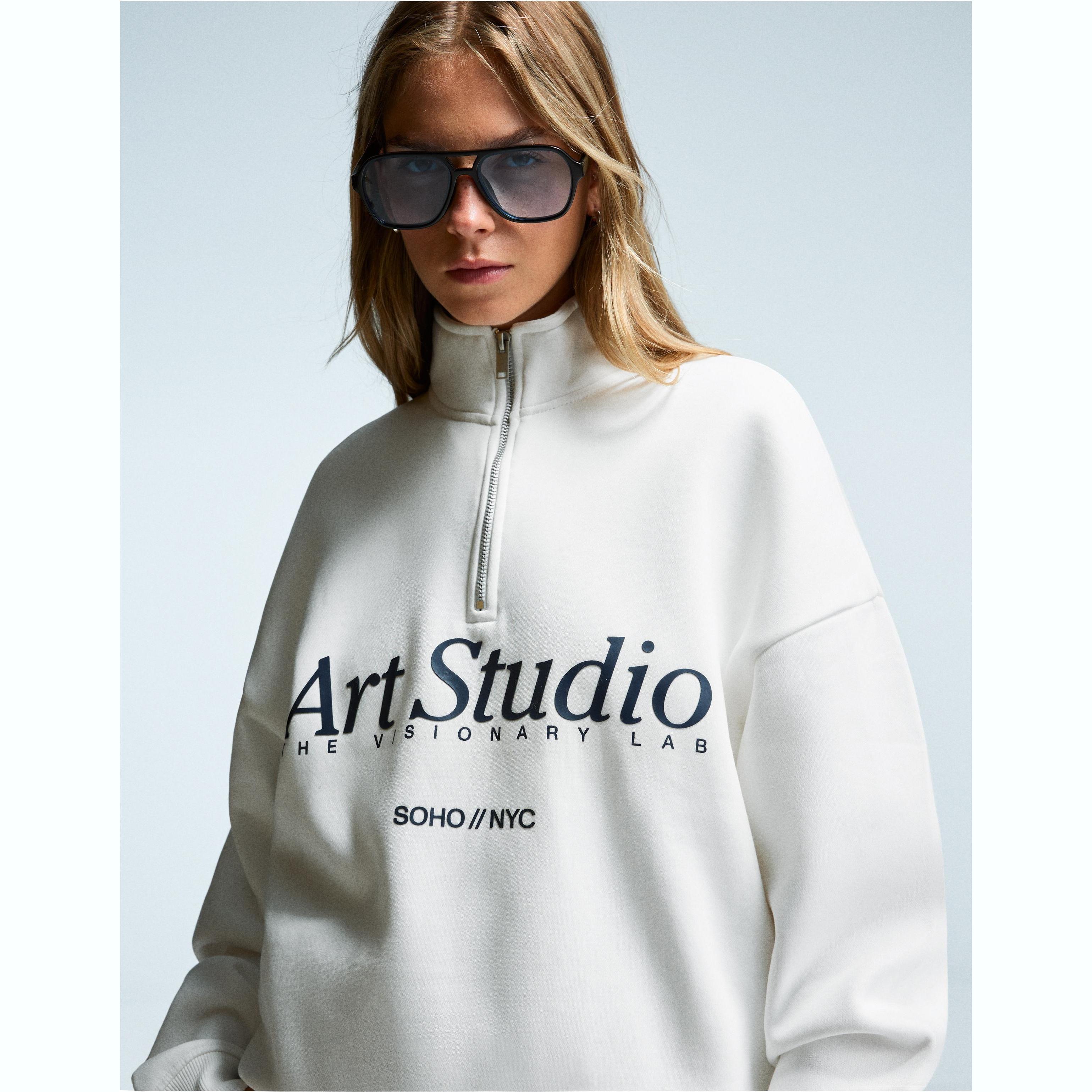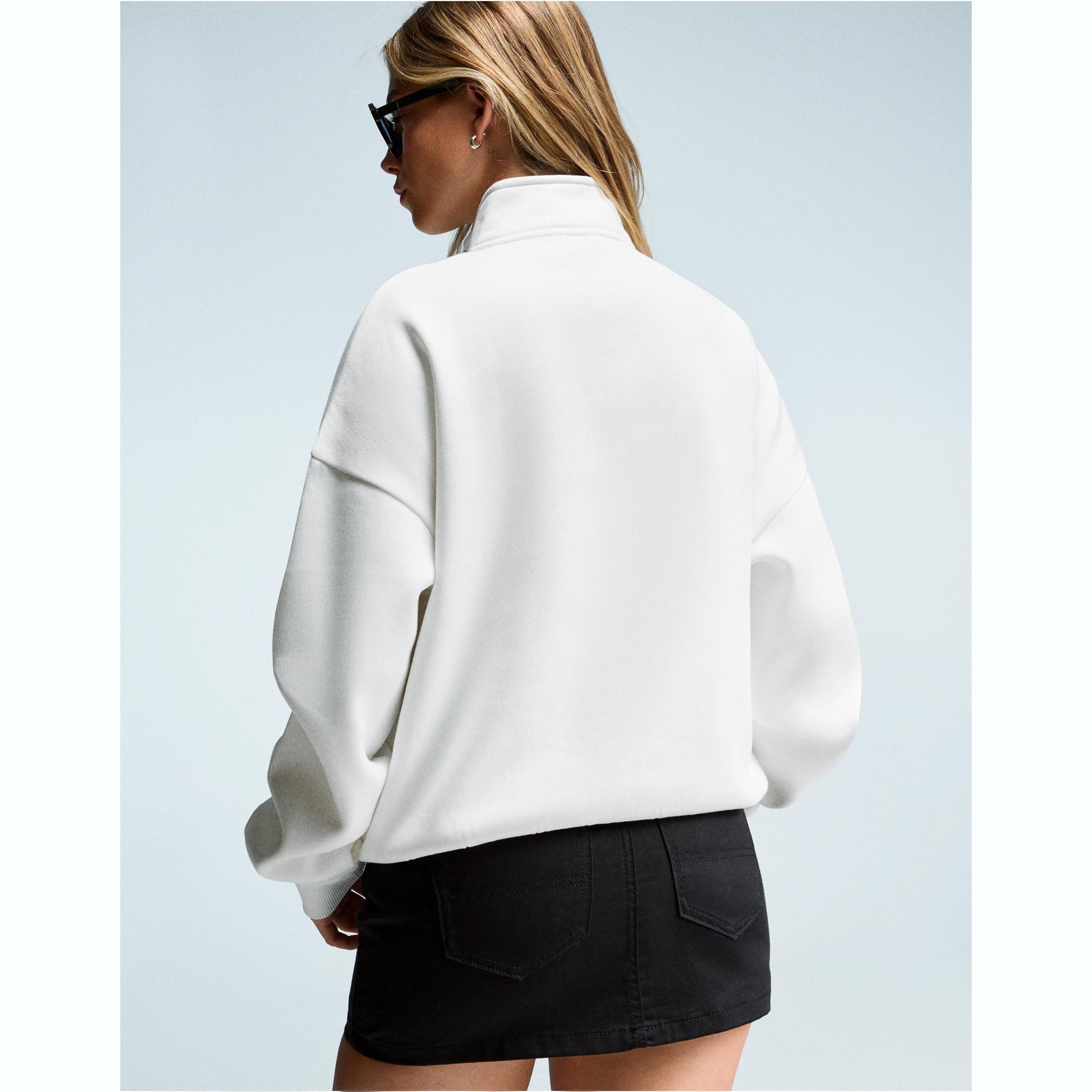 Bershka – سويتشيرت أوفرسايز مطبوع بسحاب ربع الطول من BSK Teen بلون أبيض