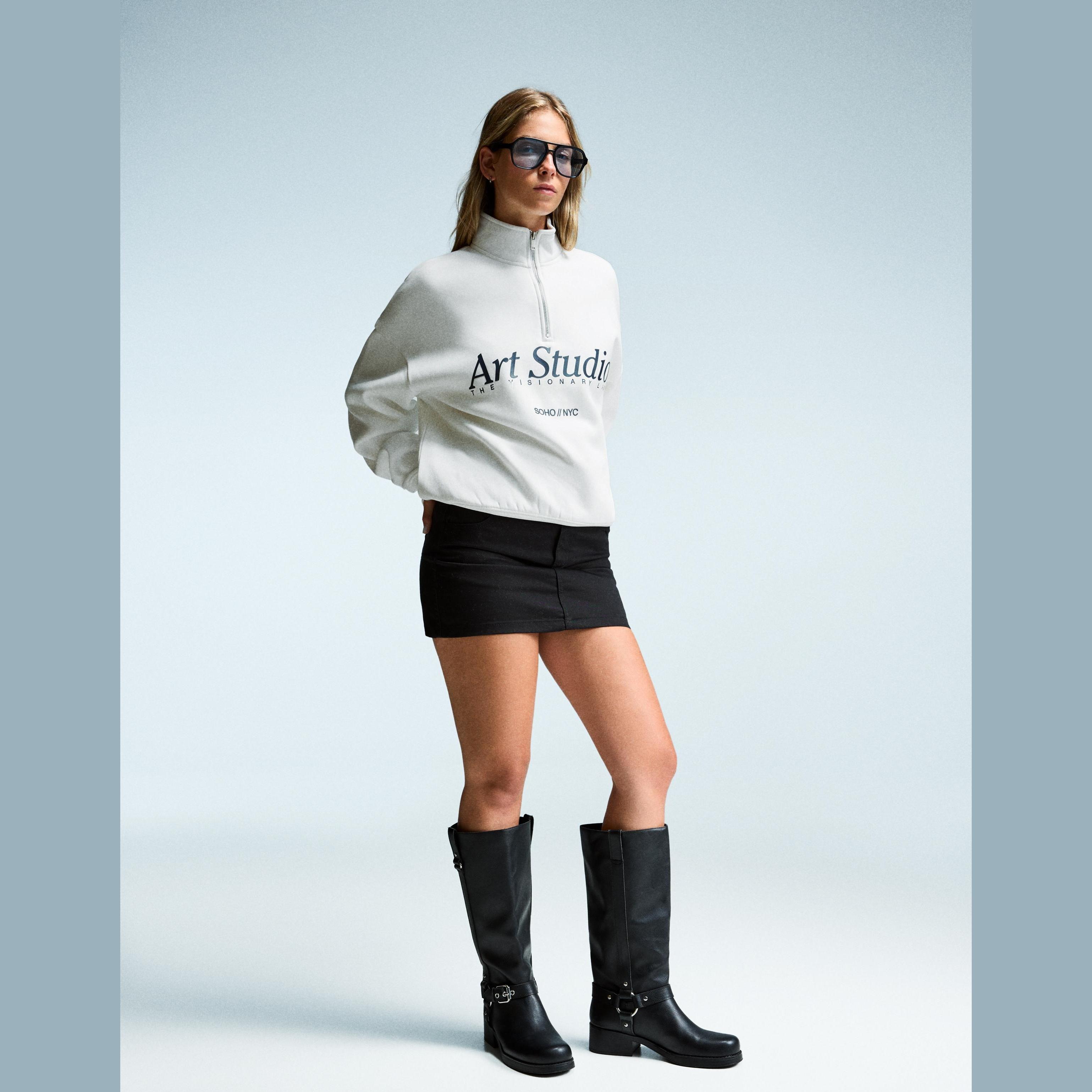 تميّز بإطلالة شبابية جريئة مع هذا السويتشيرت الأوفرسايز من مجموعة BSK Teen لدى Bershka. تصميمه الرياضي وسحابه القصير يمنحك مزيجًا مثاليًا من الراحة والستايل، بينما تضيف الطبعة الأمامية لمسة عصرية ملفتة.