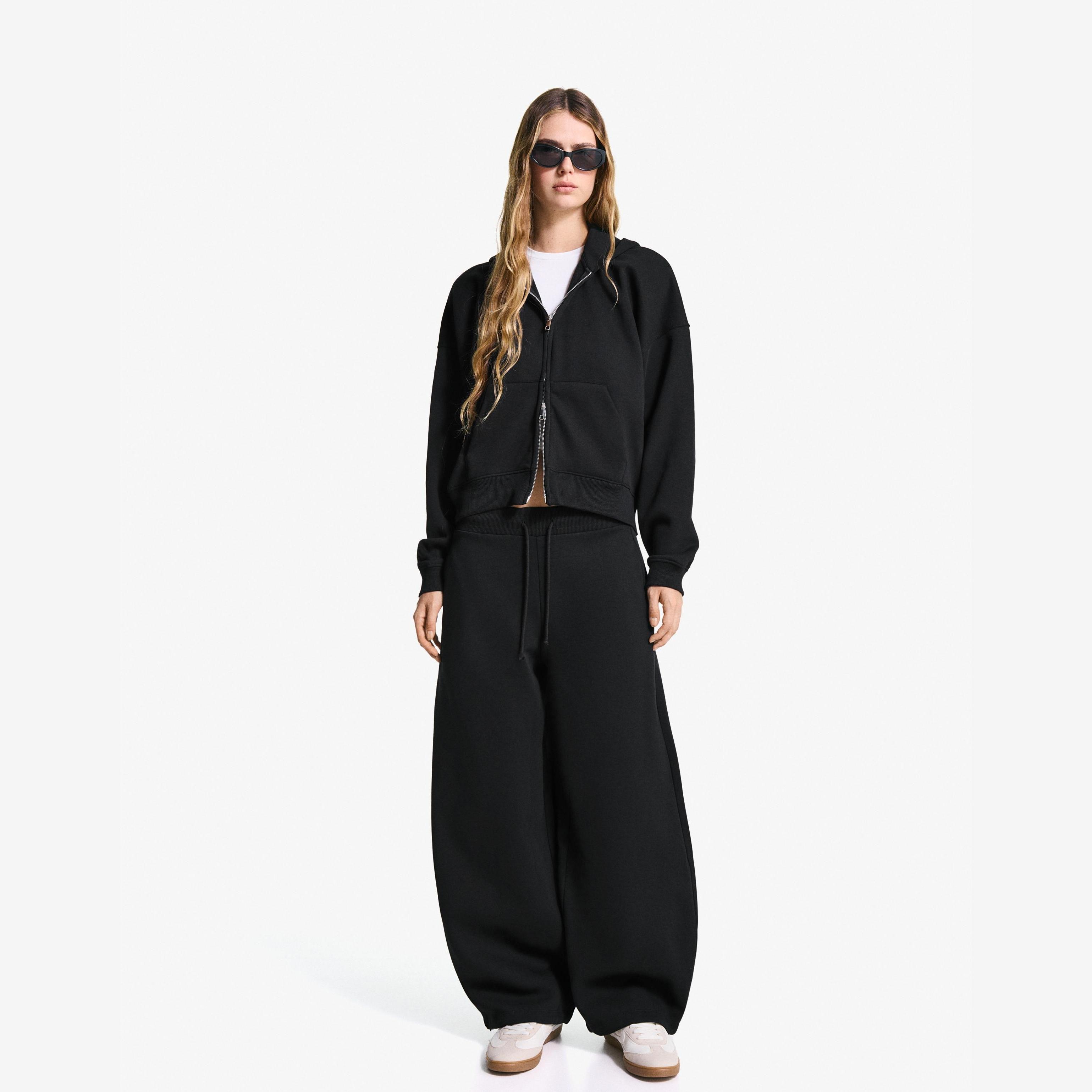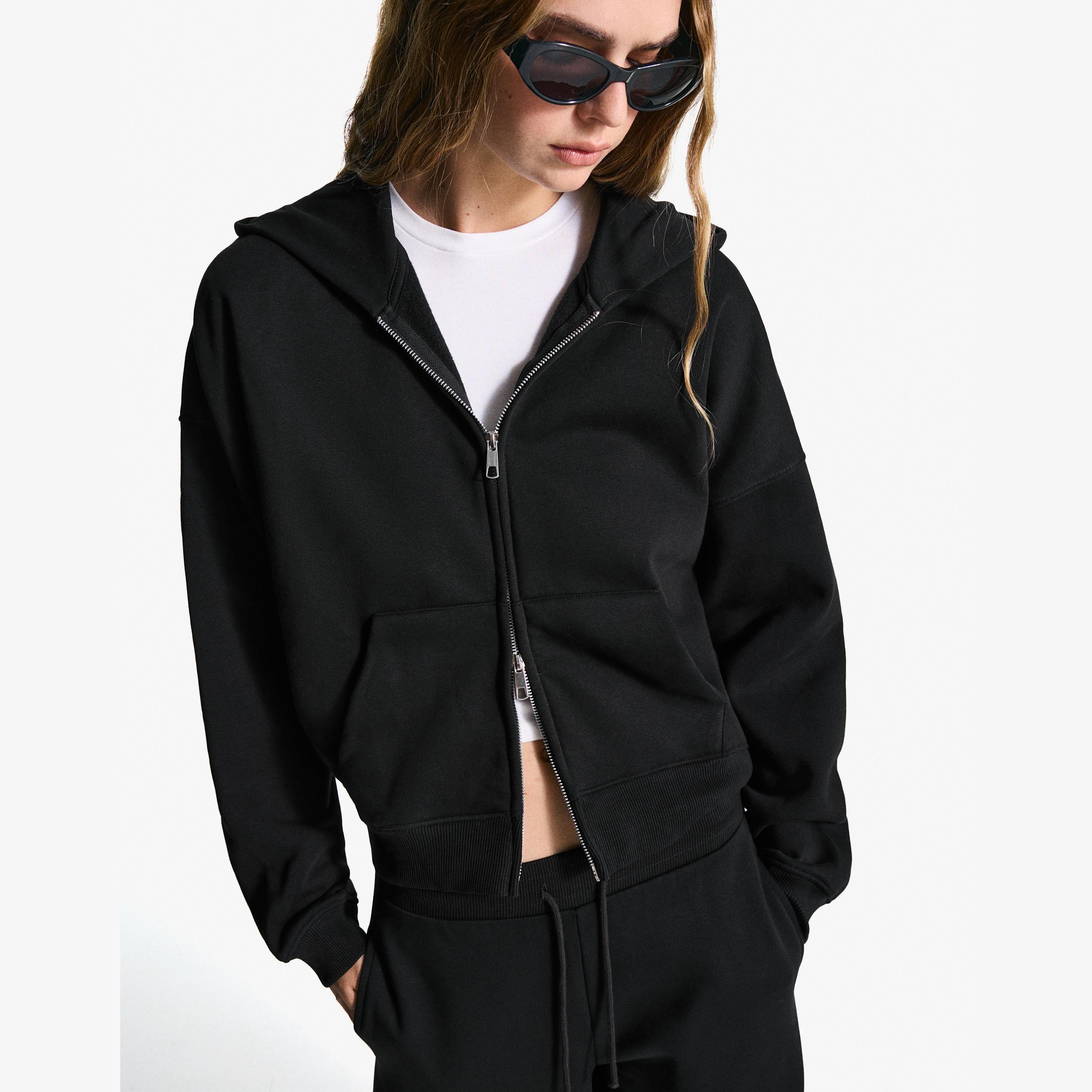 Bershka – هودي أوفرسايز بسحاب بلون أسود