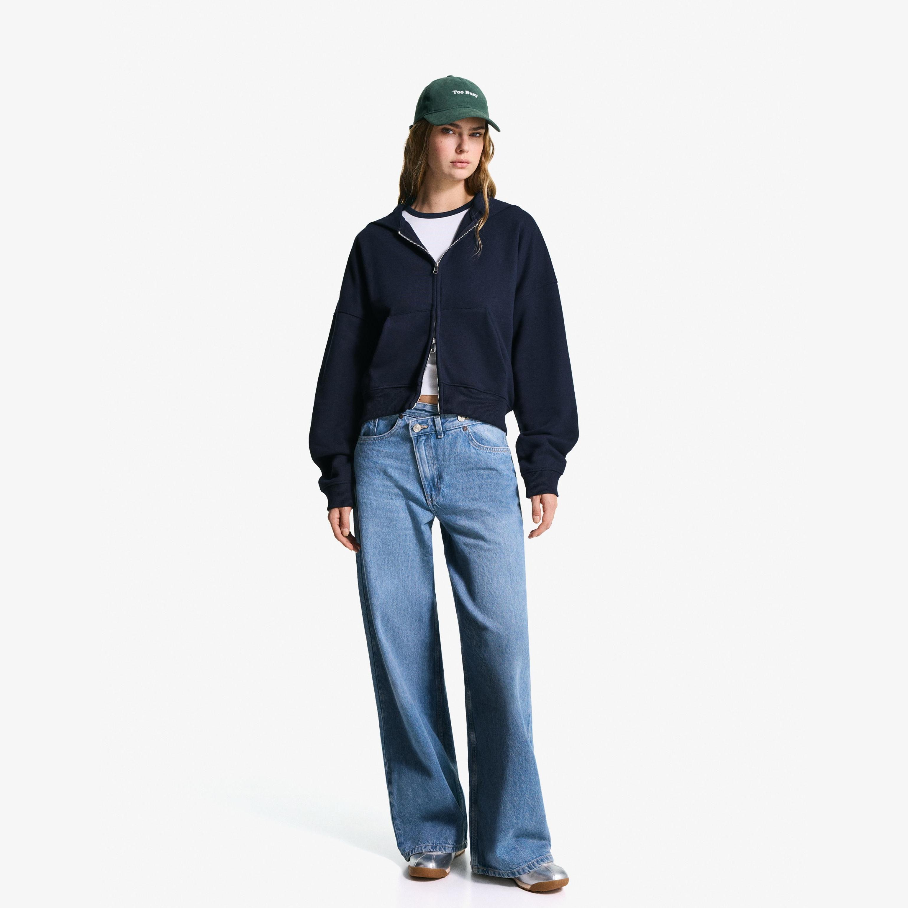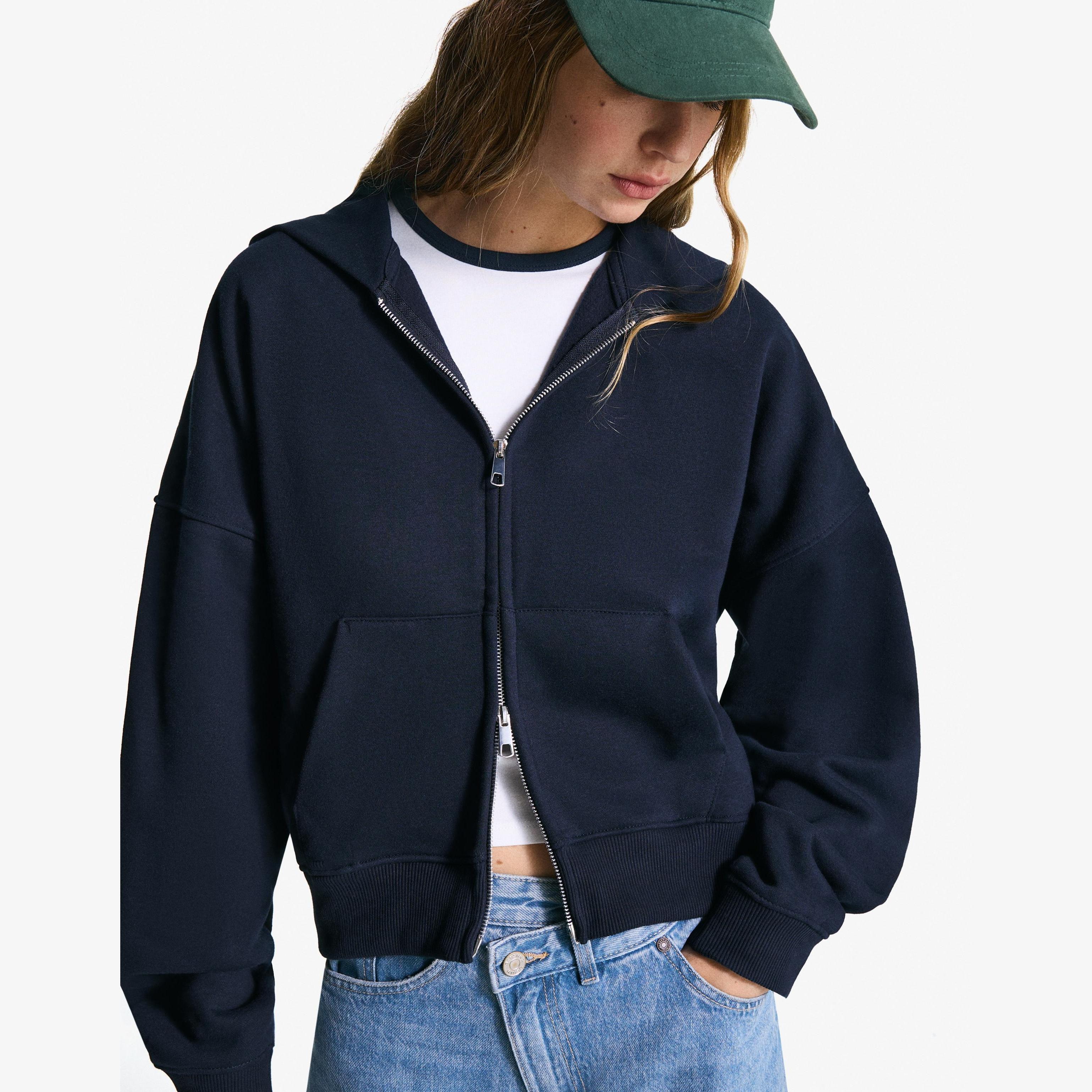 Bershka – هودي أوفرسايز بسحاب بلون كحلي