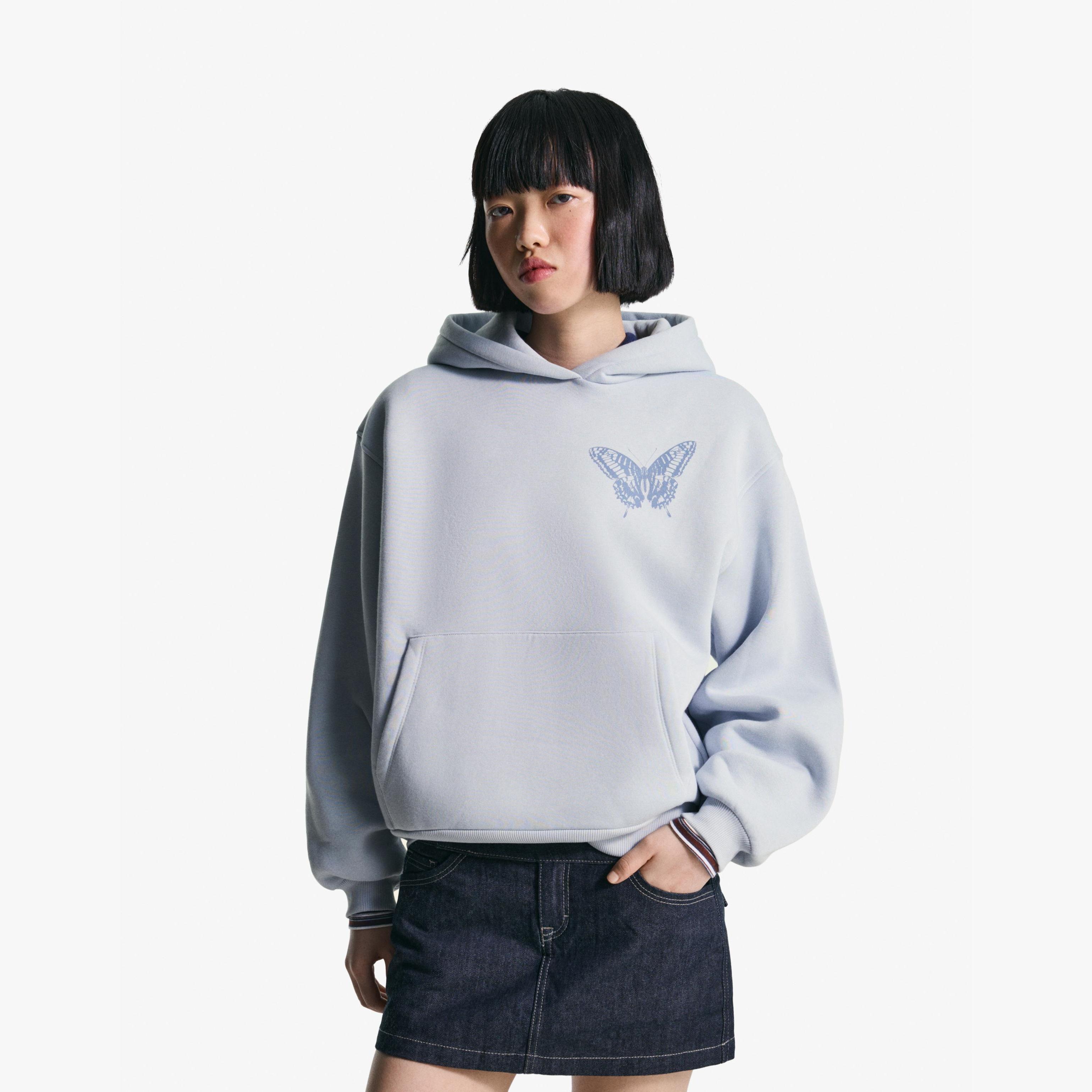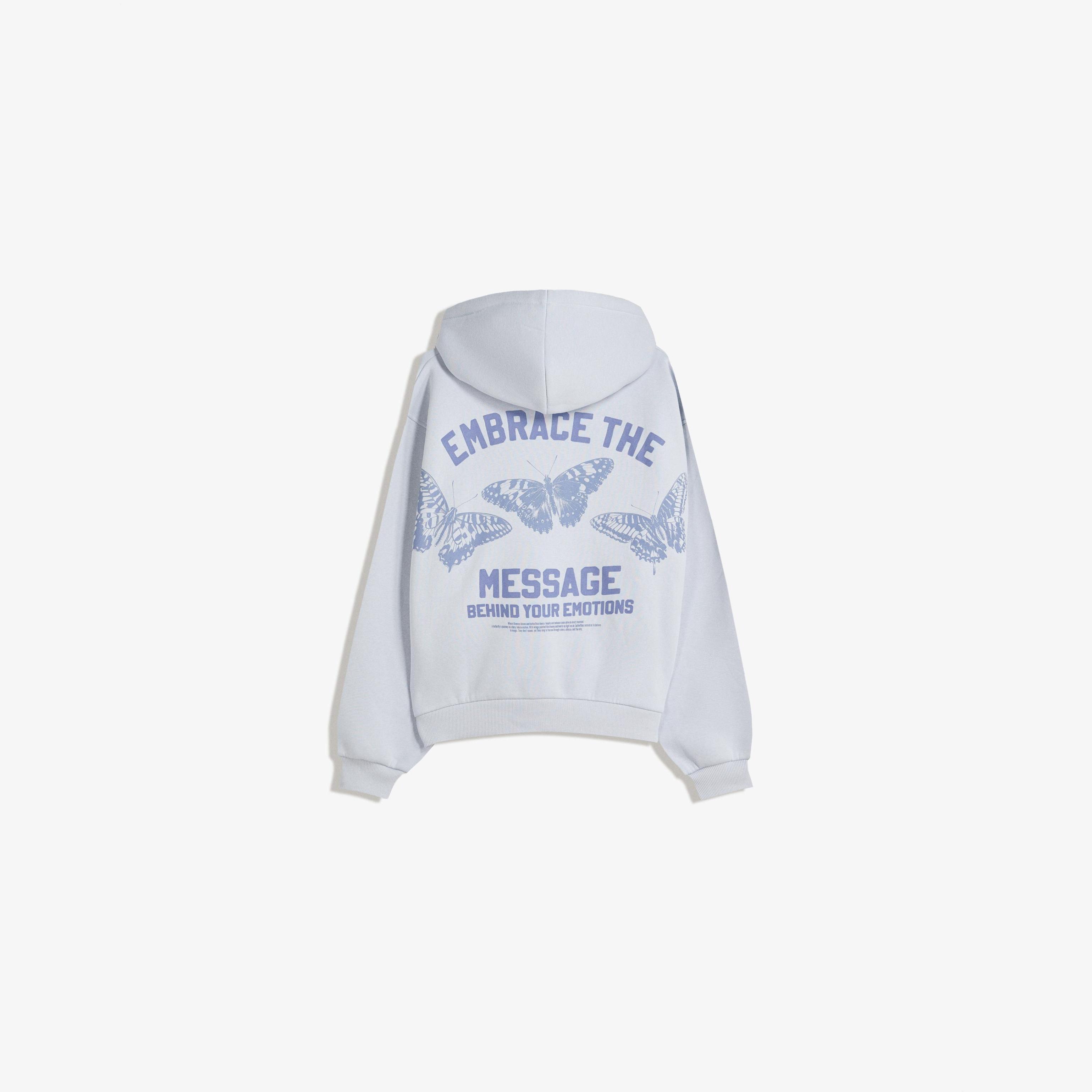 تميّزي بإطلالة شبابية واسعة وعصرية مع هذا الهودي الأوفرسايز من مجموعة BSK Teen لدى Bershka. تصميمه الفضفاض وطباعته الأمامية يمنحانك ستايل جريء ومريح، بينما يضفي اللون الأزرق الفاتح لمسة منعشة تناسب كل المواسم.