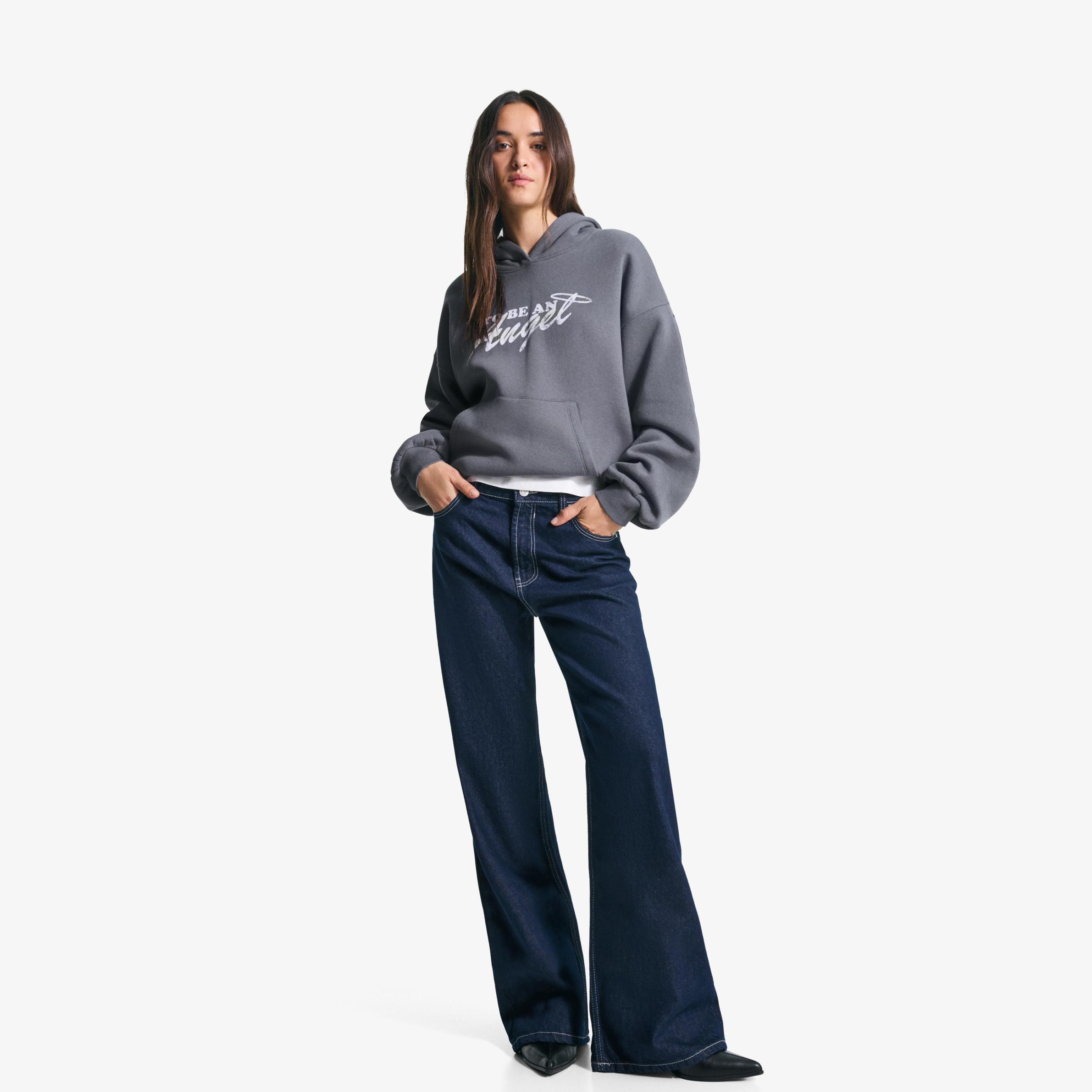 تميّزي بإطلالة شبابية واسعة وعصرية مع هذا الهودي الأوفرسايز من مجموعة BSK Teen لدى Bershka. تصميمه الفضفاض وطباعته الأمامية يمنحانك ستايل جريء ومريح، بينما يضفي اللون الرمادي الغامق لمسة حيادية أنيقة تناسب كل المواسم.