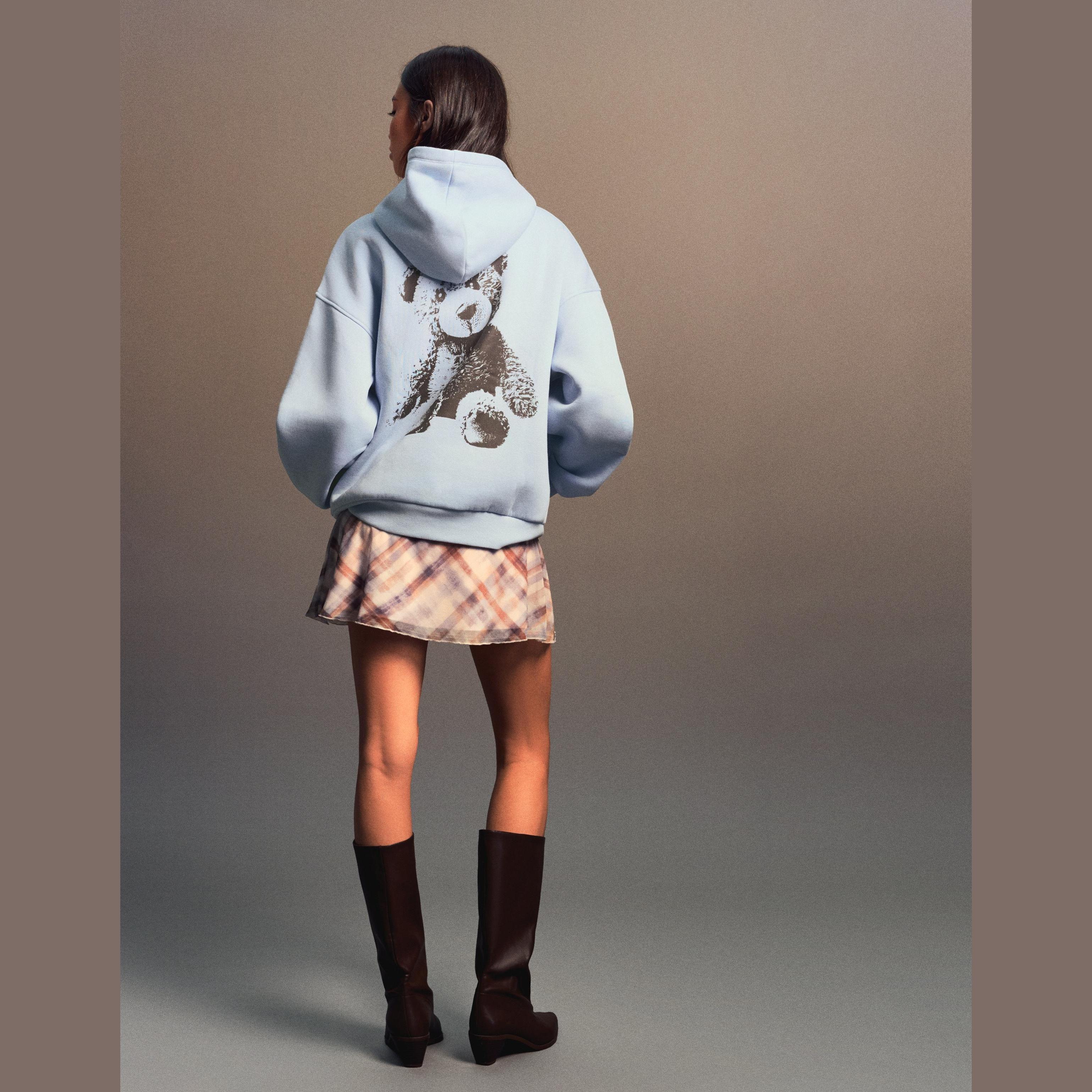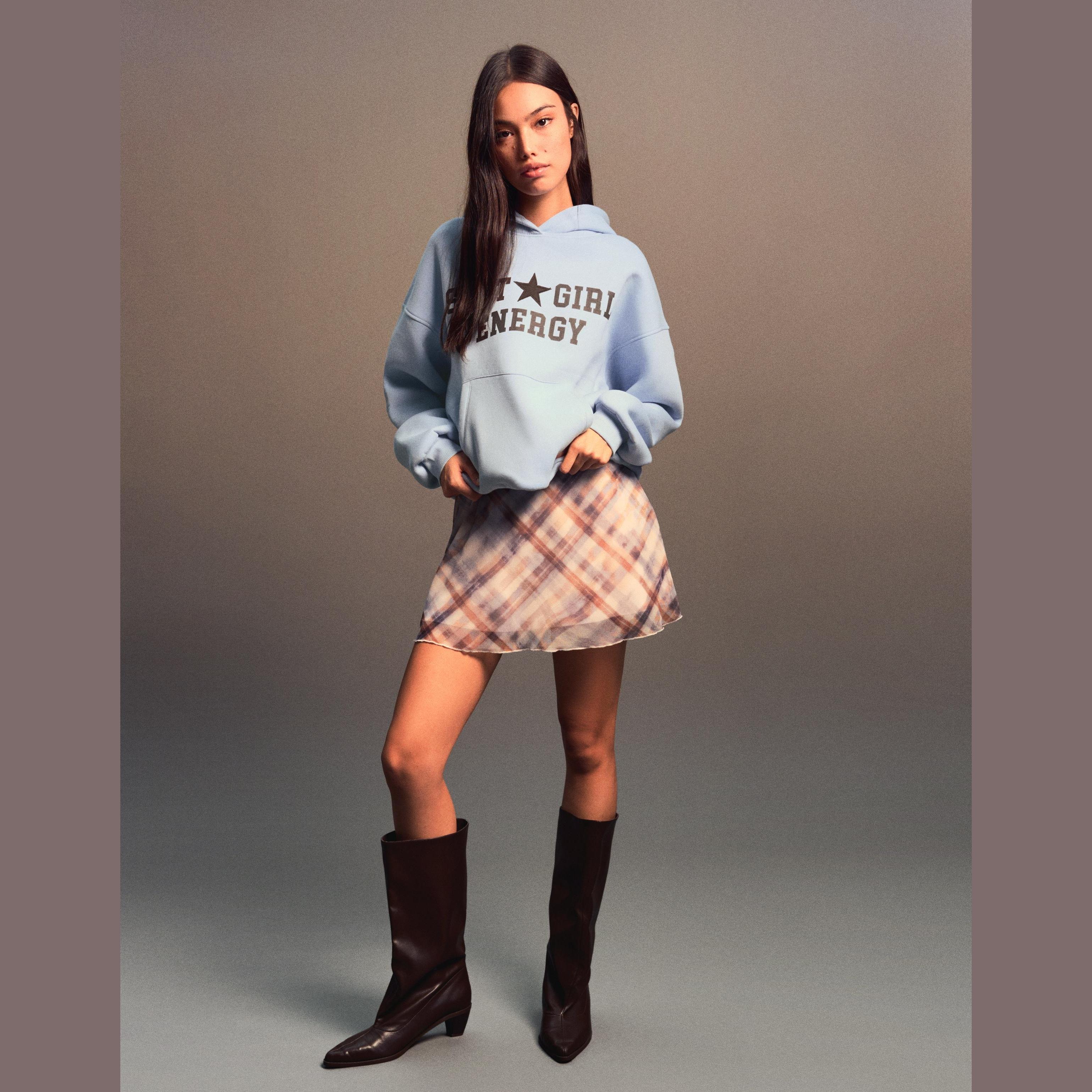 تميّزي بإطلالة شبابية واسعة وعصرية مع هذا الهودي الأوفرسايز من مجموعة BSK Teen لدى Bershka. تصميمه الفضفاض وطباعته الأمامية يمنحانك ستايل جريء ومريح، بينما يضفي اللون الأزرق الفاتح لمسة منعشة تناسب كل المواسم.