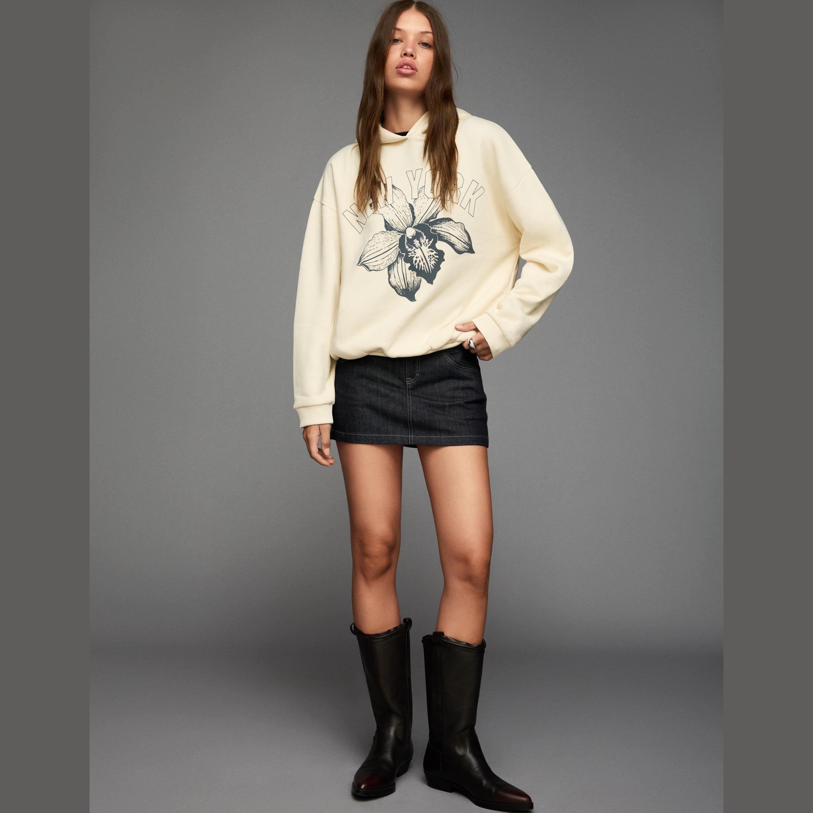 تميّزي بإطلالة كاجوال واسعة وعصرية مع هذا السويتشيرت الأوفرسايز من مجموعة Bershka النسائية. تصميمه الفضفاض وطباعته الأمامية يمنحانك ستايل شبابي مريح، بينما يضفي اللون الكريمي لمسة حيادية ناعمة تناسب كل المواسم.