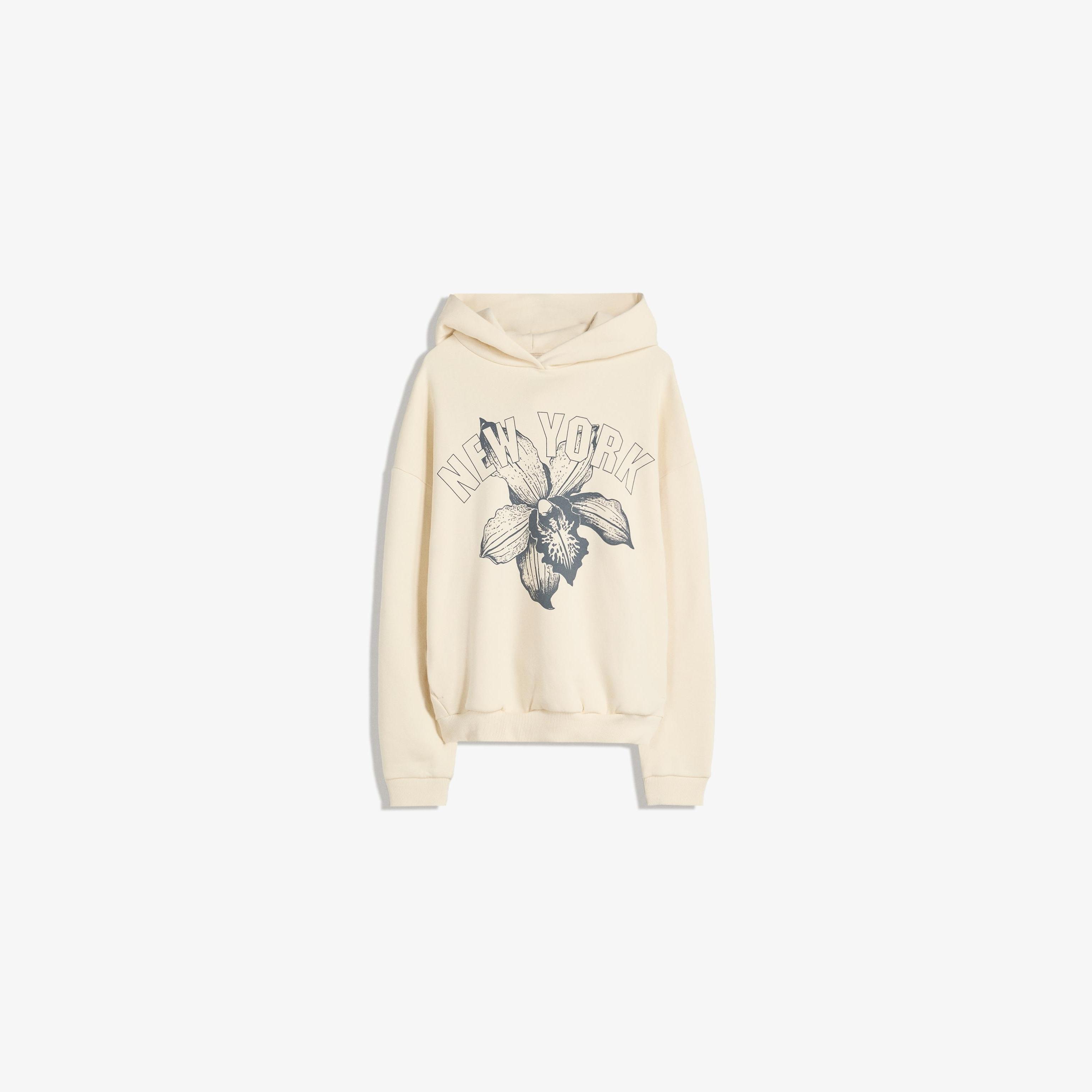 Bershka – سويتشيرت أوفرسايز مطبوع بأكمام طويلة بلون كريمي