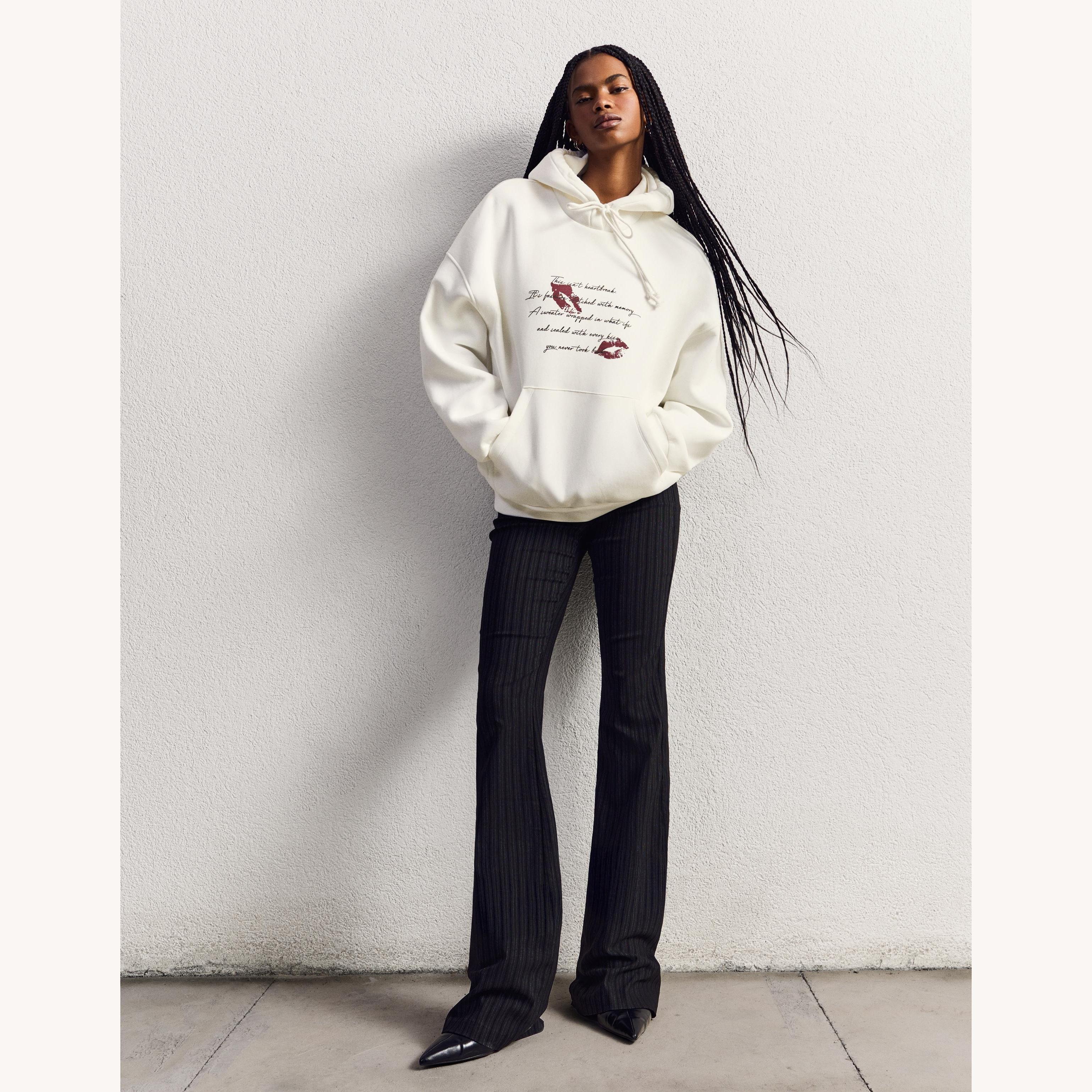Bershka – هودي أوفرسايز مطبوع بلون كريمي