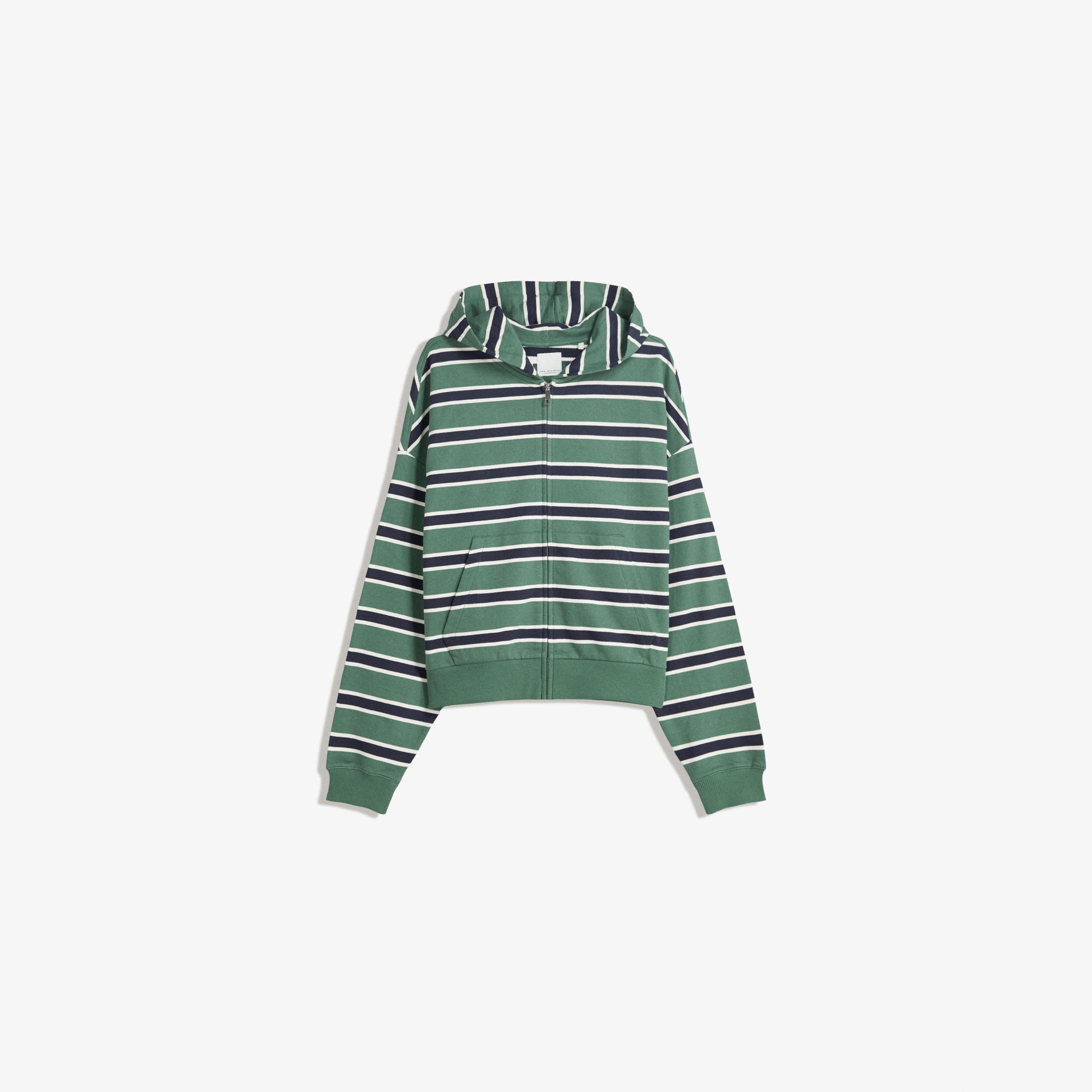 Bershka – هودي أوفرسايز مخطط بسحاب من BSK Teen بلون أخضر