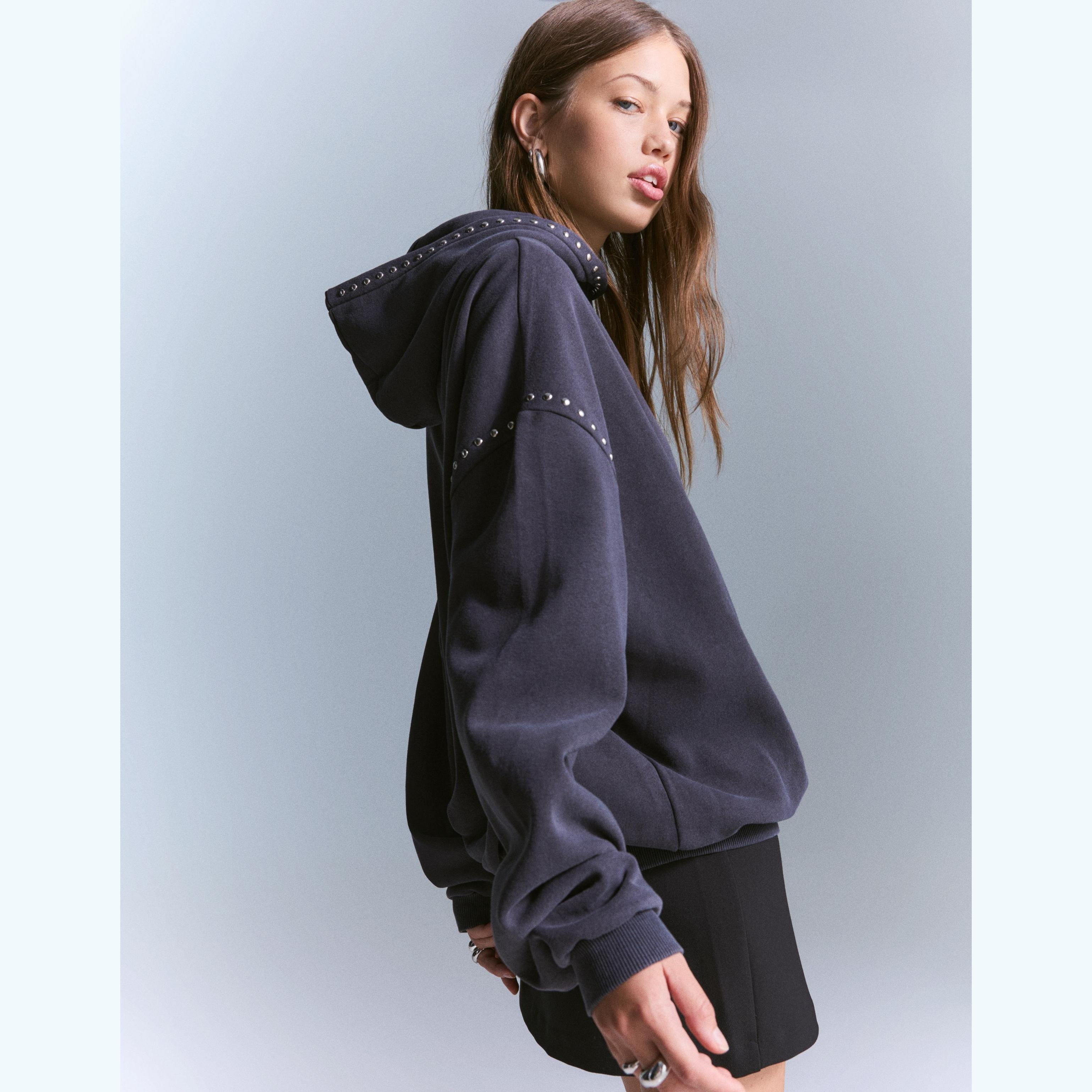Bershka – هودي أوفرسايز مزين بالمسامير من BSK Teen بلون رمادي غامق