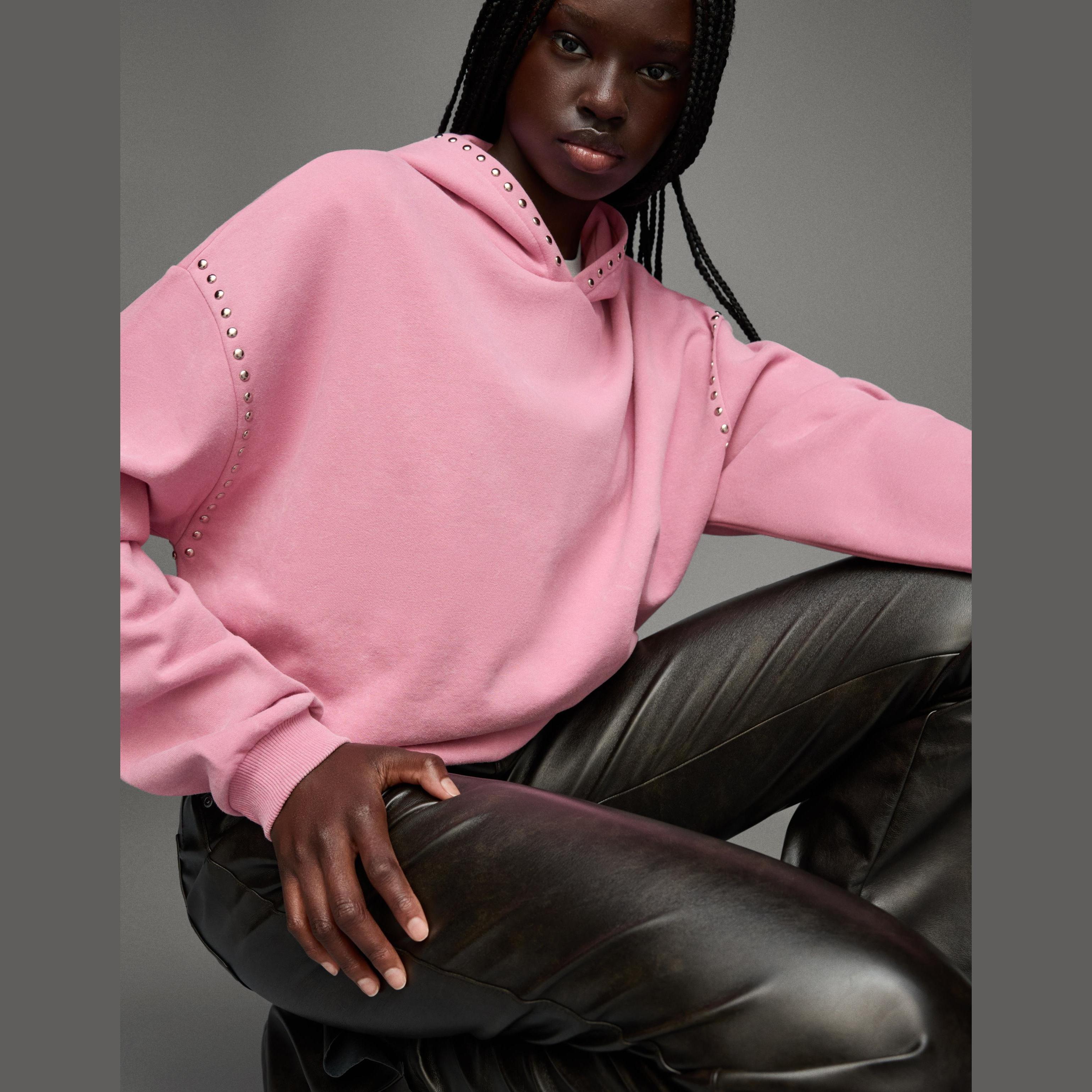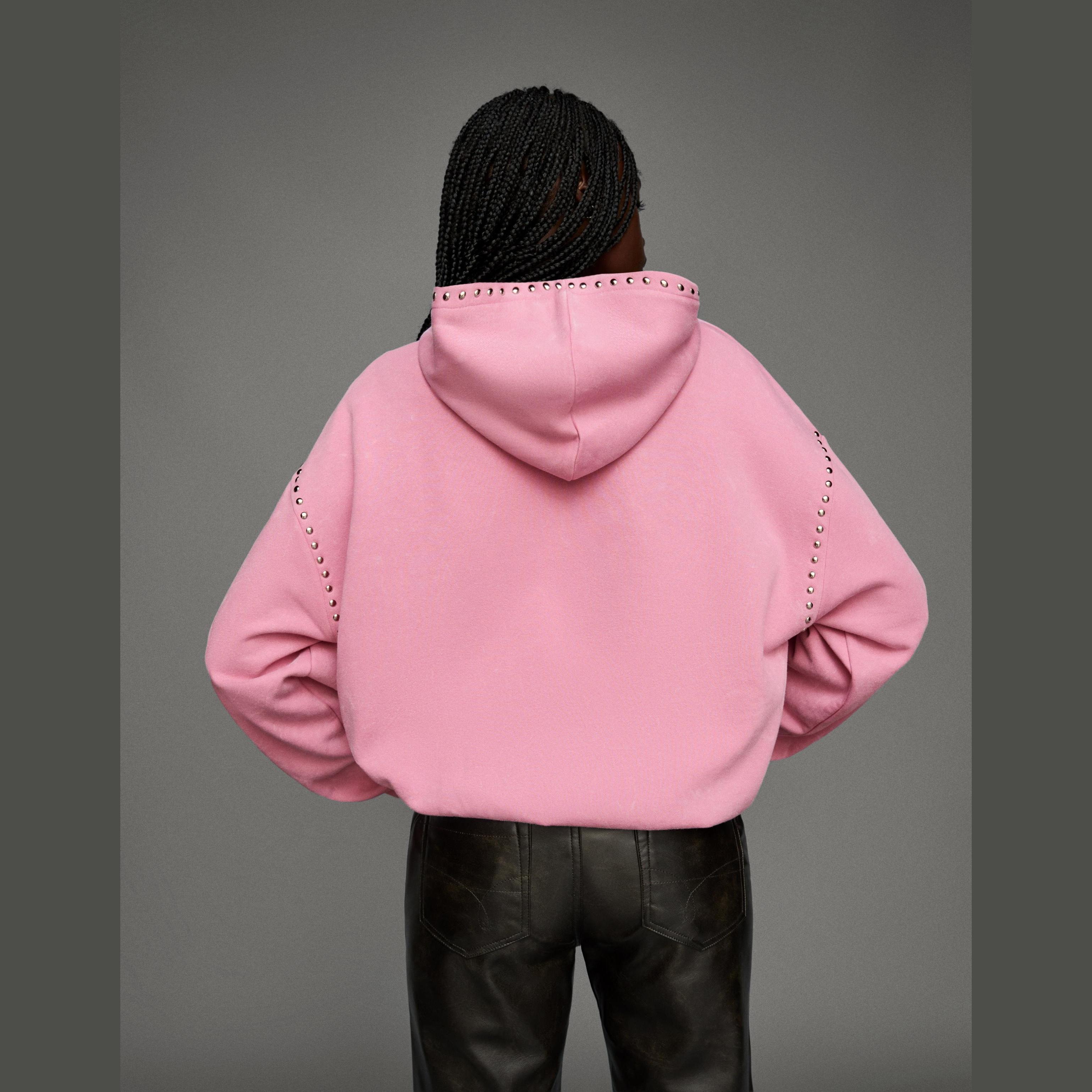 Bershka – هودي أوفرسايز مزين بالمسامير من BSK Teen بلون وردي
