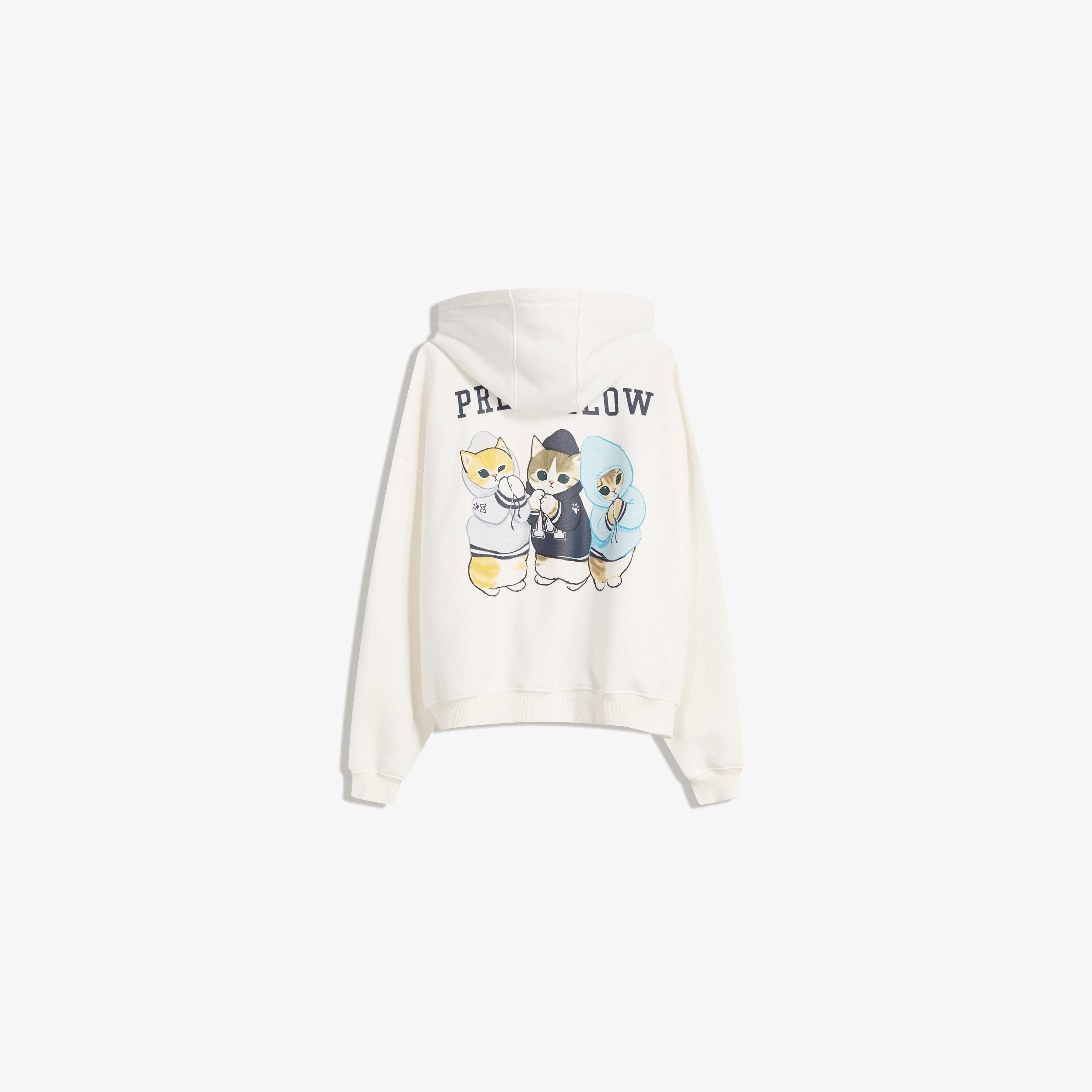 Bershka – هودي أوفرسايز مطبوع بشخصيات Mofusand بلون أبيض مائل للرمادي