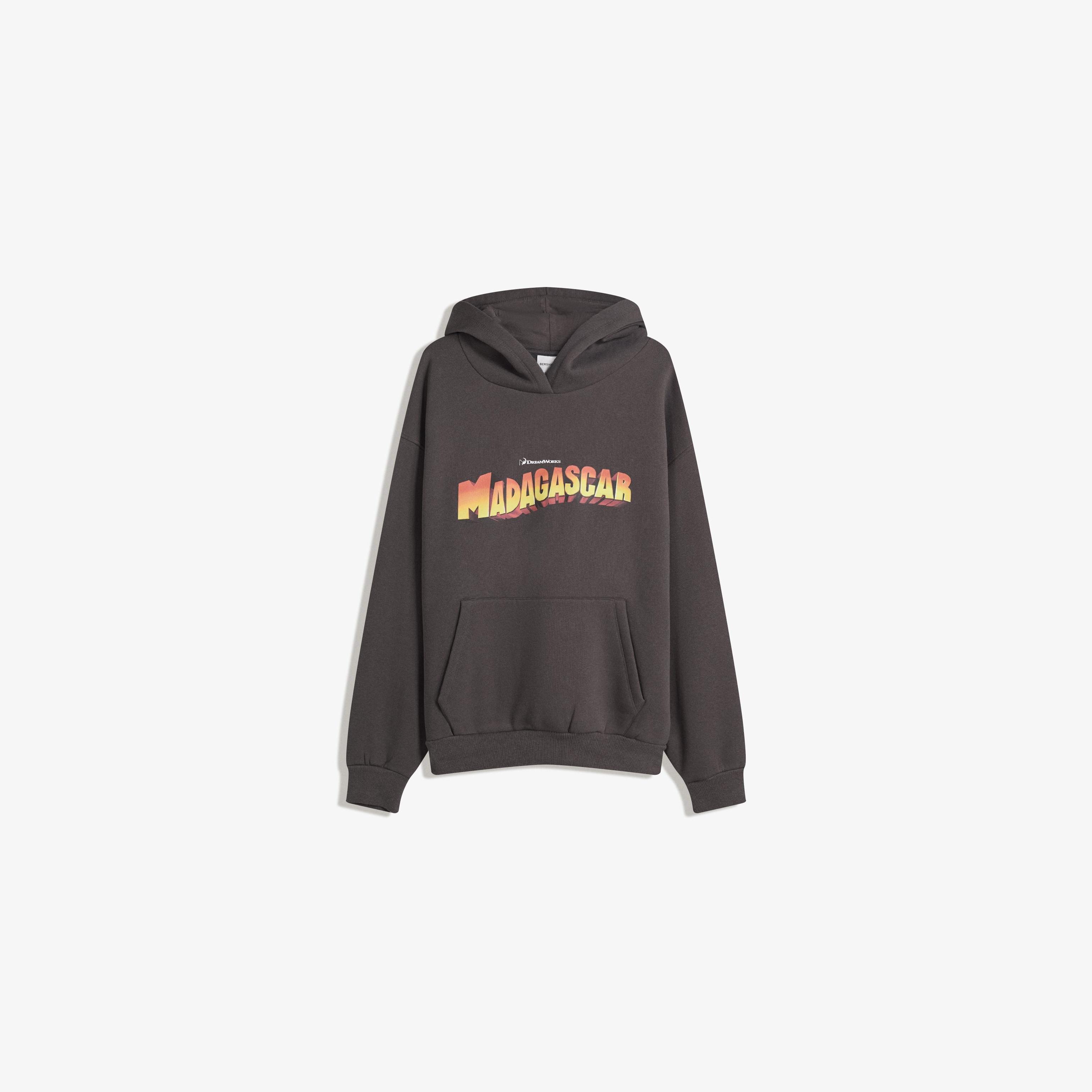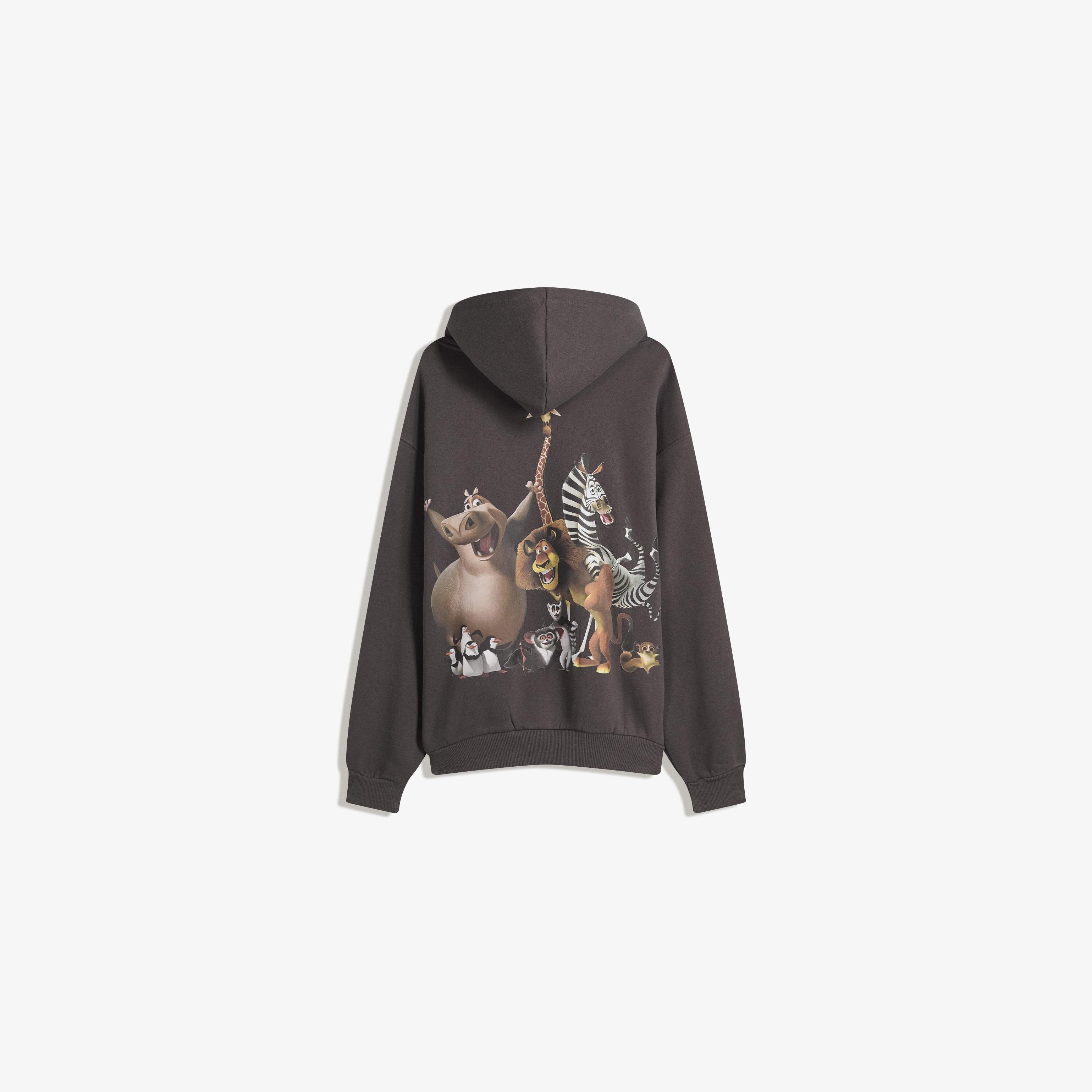 Bershka – سويتشيرت أوفرسايز مطبوع Madagascar بقبعة بلون رمادي غامق